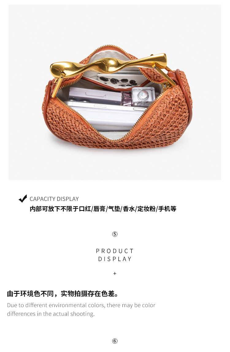 Z가족 크로스보더 밀짚가방 2025 신상 메탈 핸드백 미니백 크로스백 지퍼 캐주얼 패션 위빙백스토어 가기