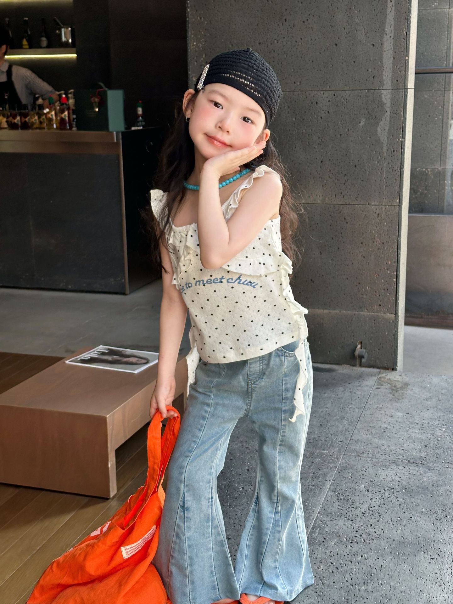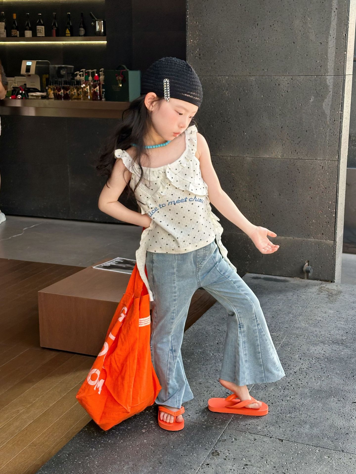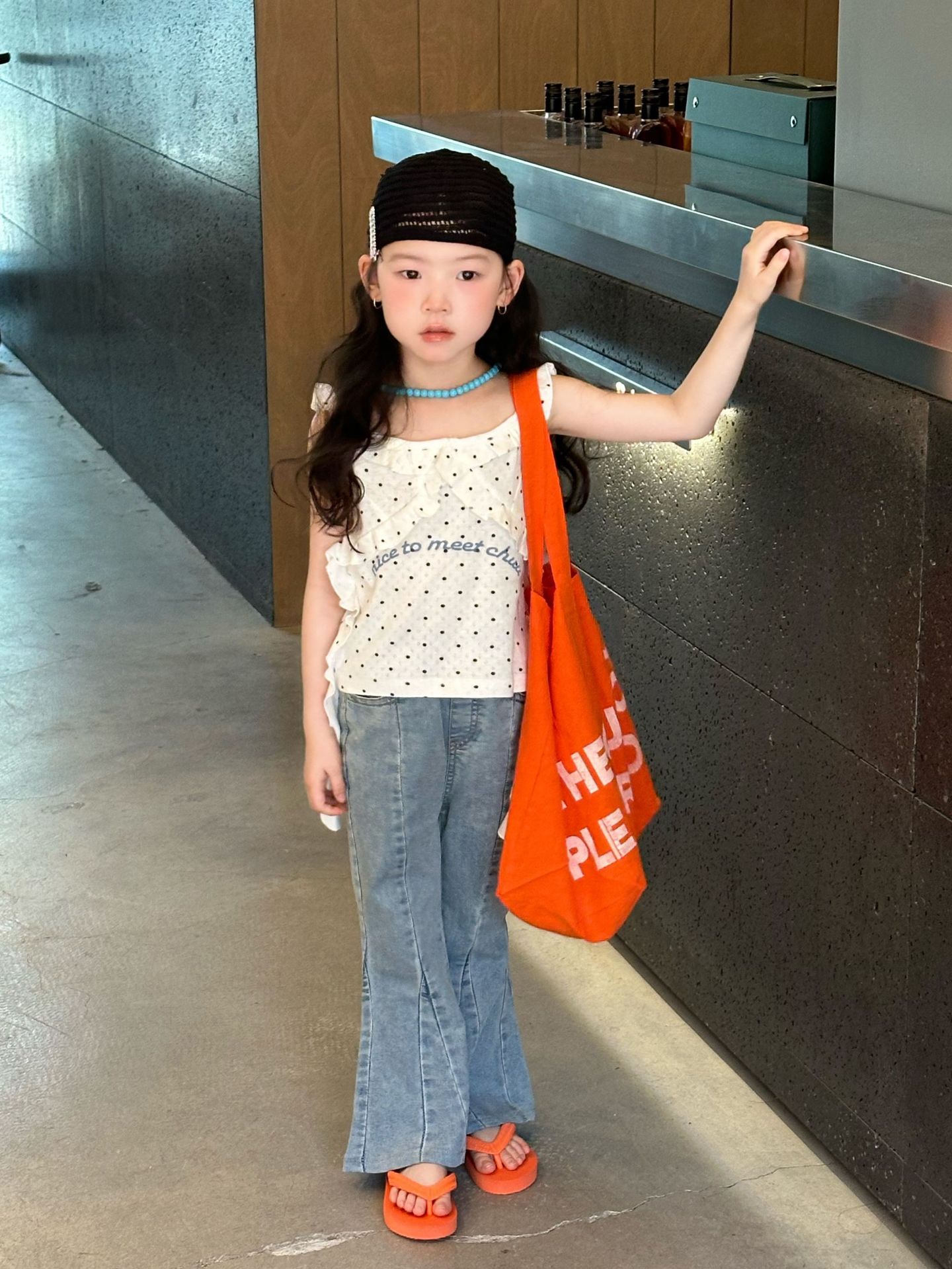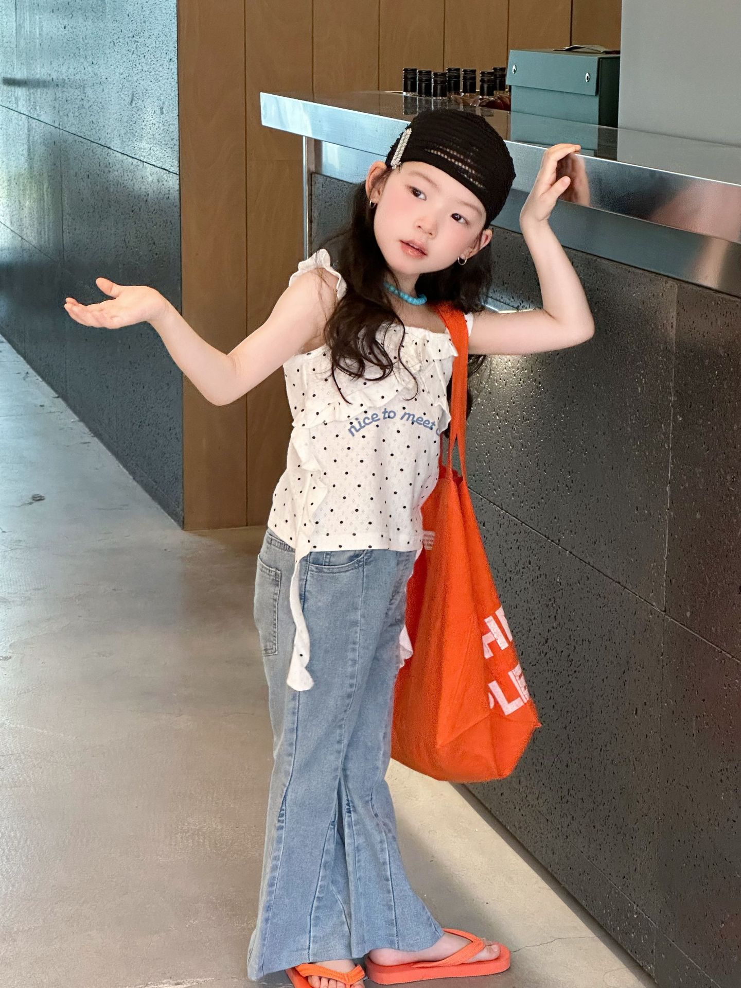 2025 년 여름 새 아동복 한국식 아동복 소녀 웨이브도트 카미솔 불규칙한 디자인 조끼스토어 가기