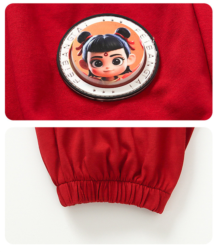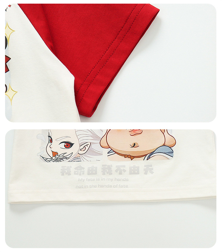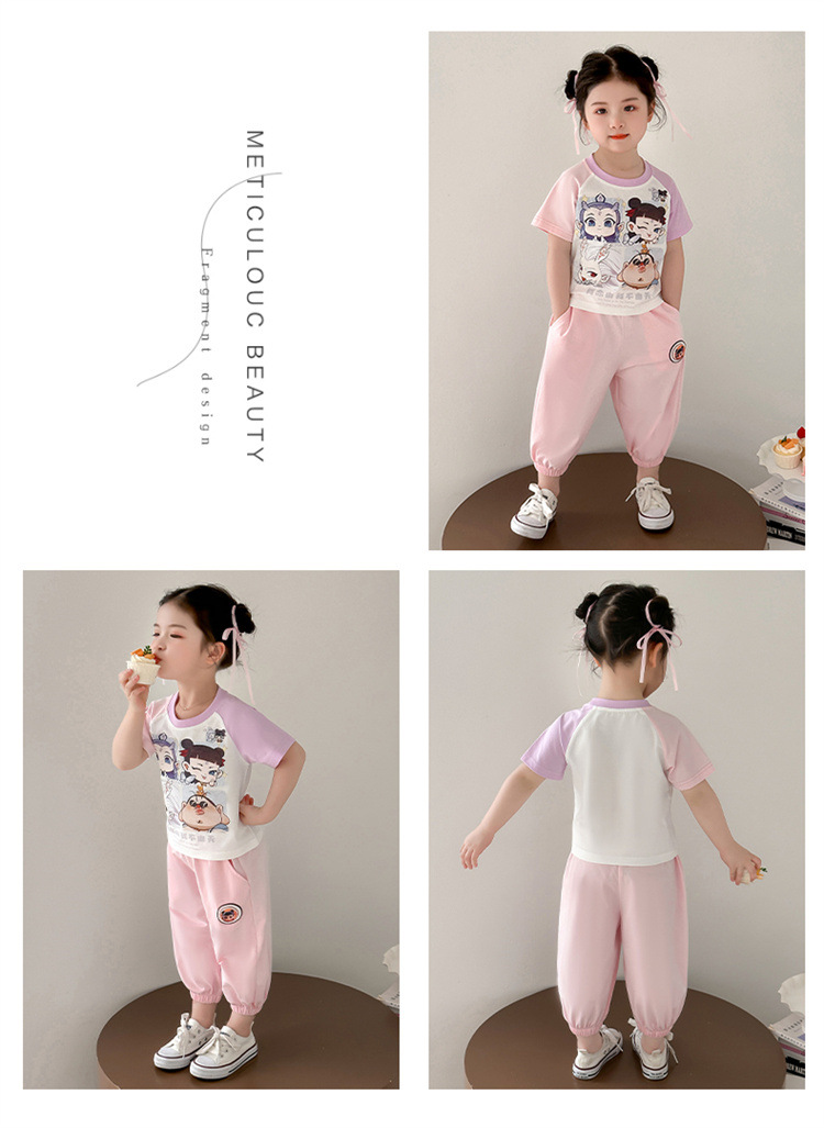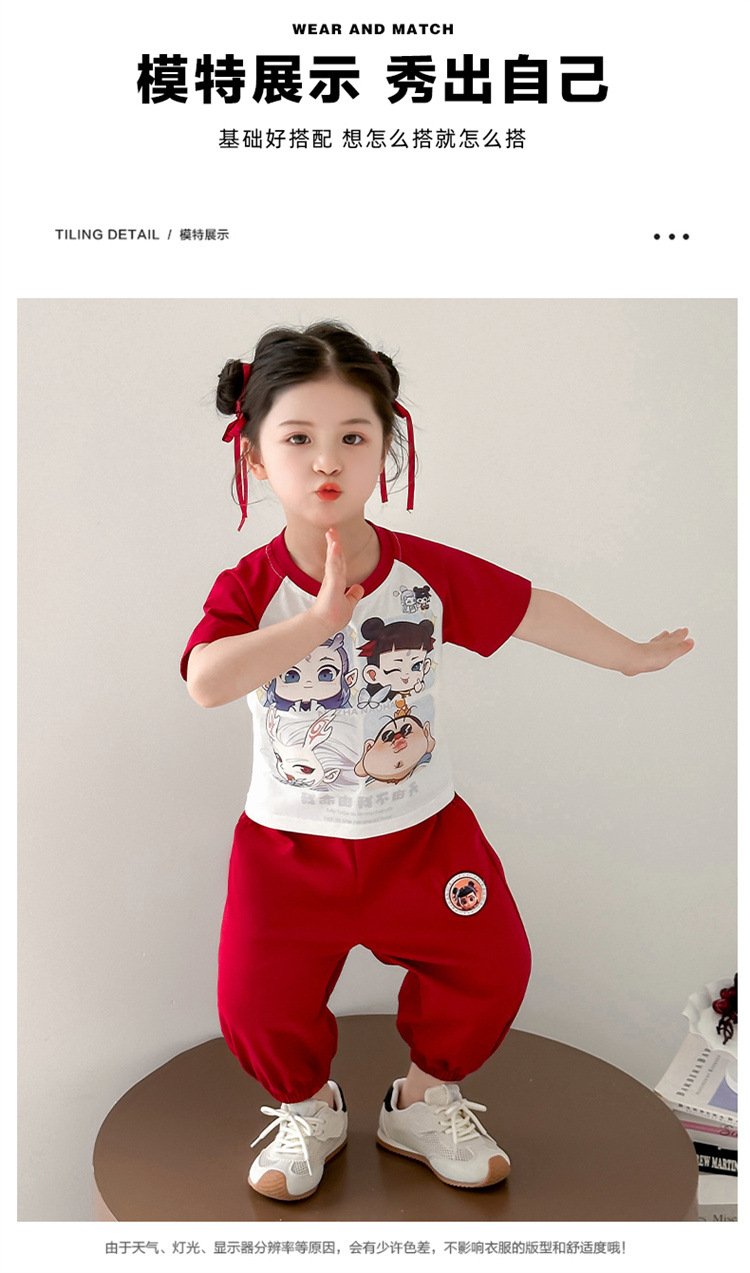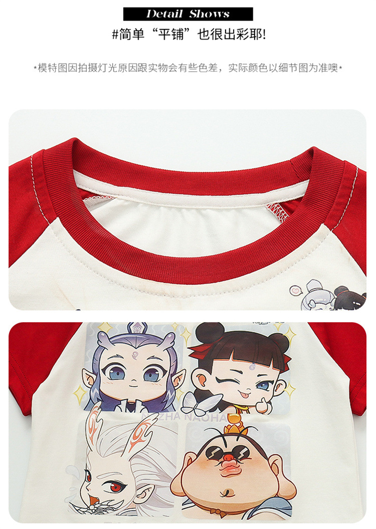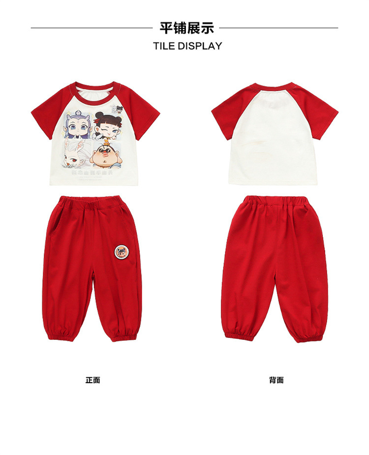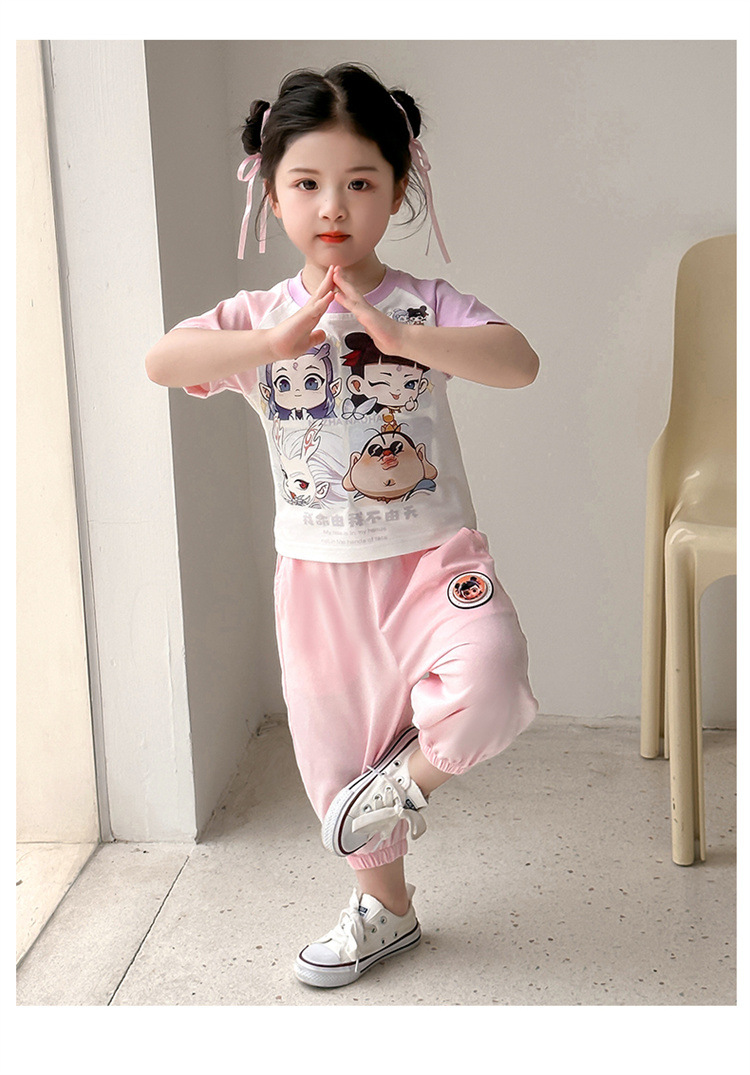 여자 Nezha 정장 여름 2025 새로운 Nezha 어린이 스타일 옷 아기 소녀 반팔 여름 투피스 세트