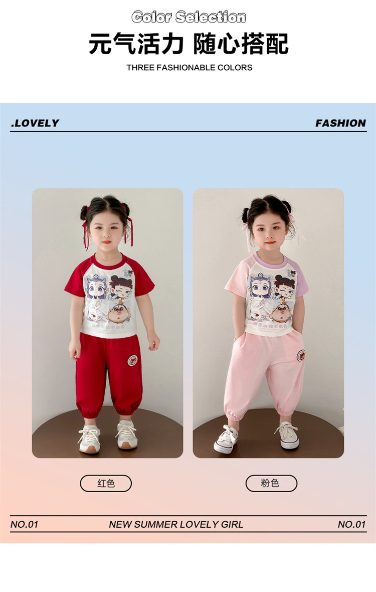 여자 Nezha 정장 여름 2025 새로운 Nezha 어린이 스타일 옷 아기 소녀 반팔 여름 투피스 세트스토어 가기