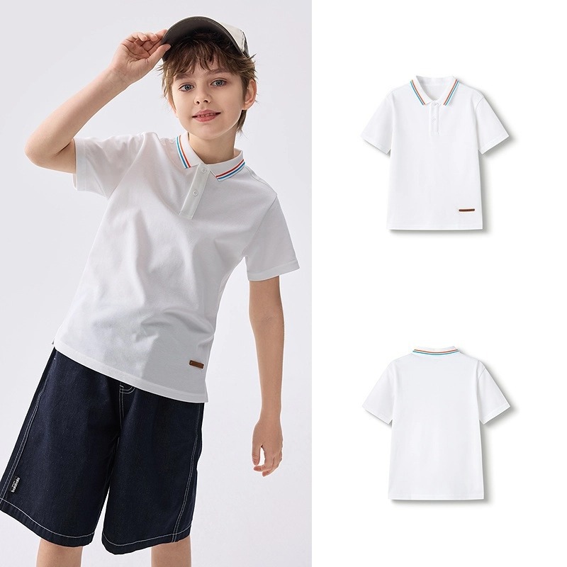 남아용 반팔 폴로 셔츠, 중대형 아동용 티셔츠 2025 여름 신작 아동복 다용도 아동용 흰색 상의