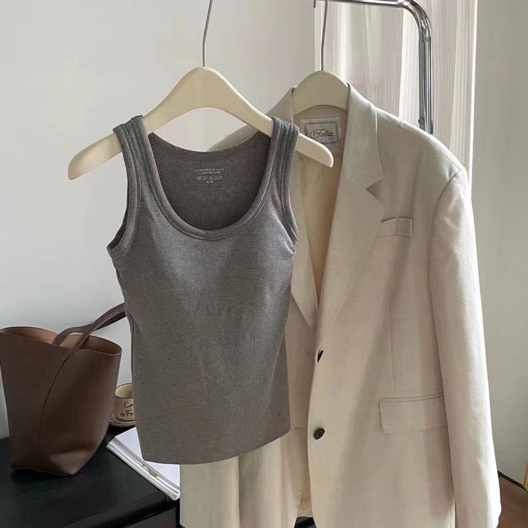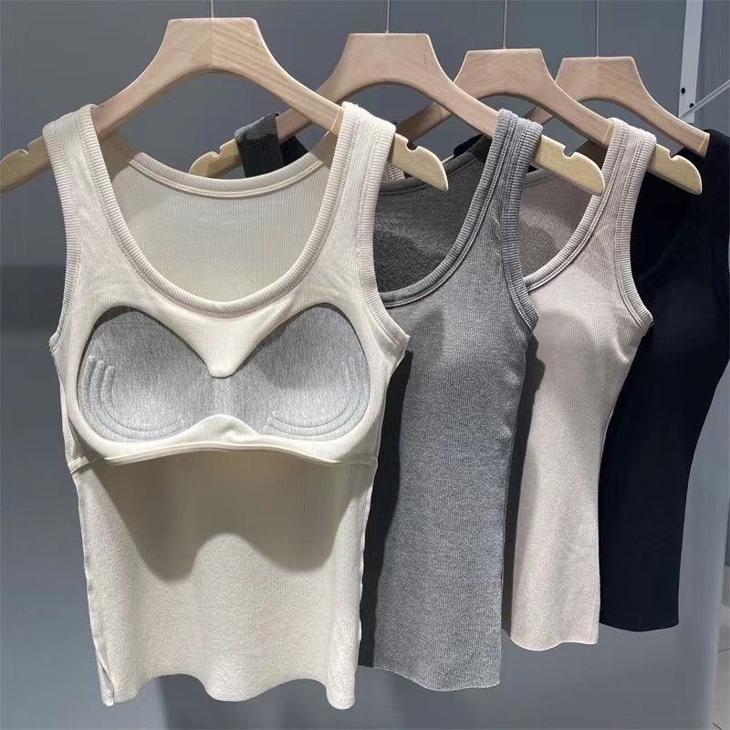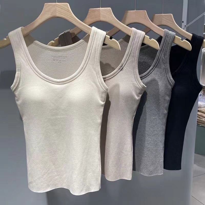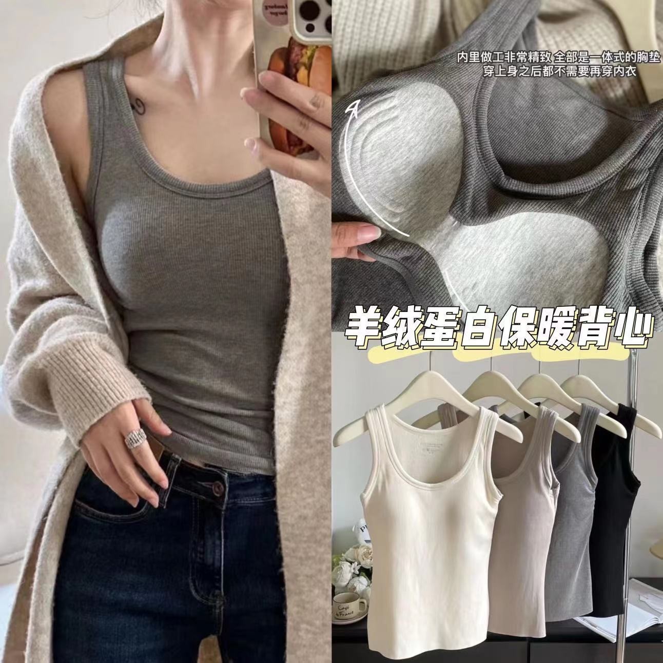 가슴 패드가 있는 여성용 신형 라운드넥 조끼로 가슴을 커버하고 슬림하게 만들어주는 핫걸 이너 슬링과 아우터로 롱베이스레이어스토어 가기