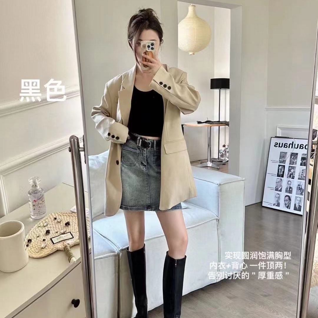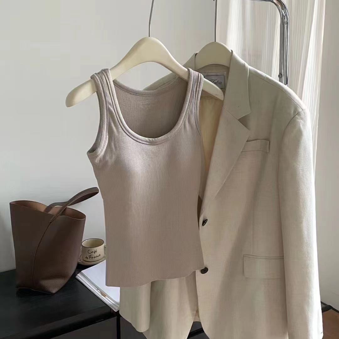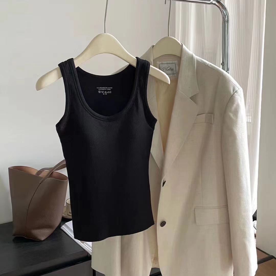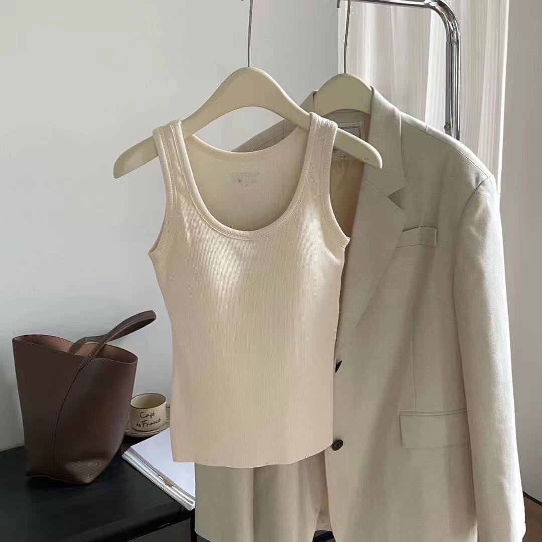 가슴 패드가 있는 여성용 신형 라운드넥 조끼로 가슴을 커버하고 슬림하게 만들어주는 핫걸 이너 슬링과 아우터로 롱베이스레이어스토어 가기