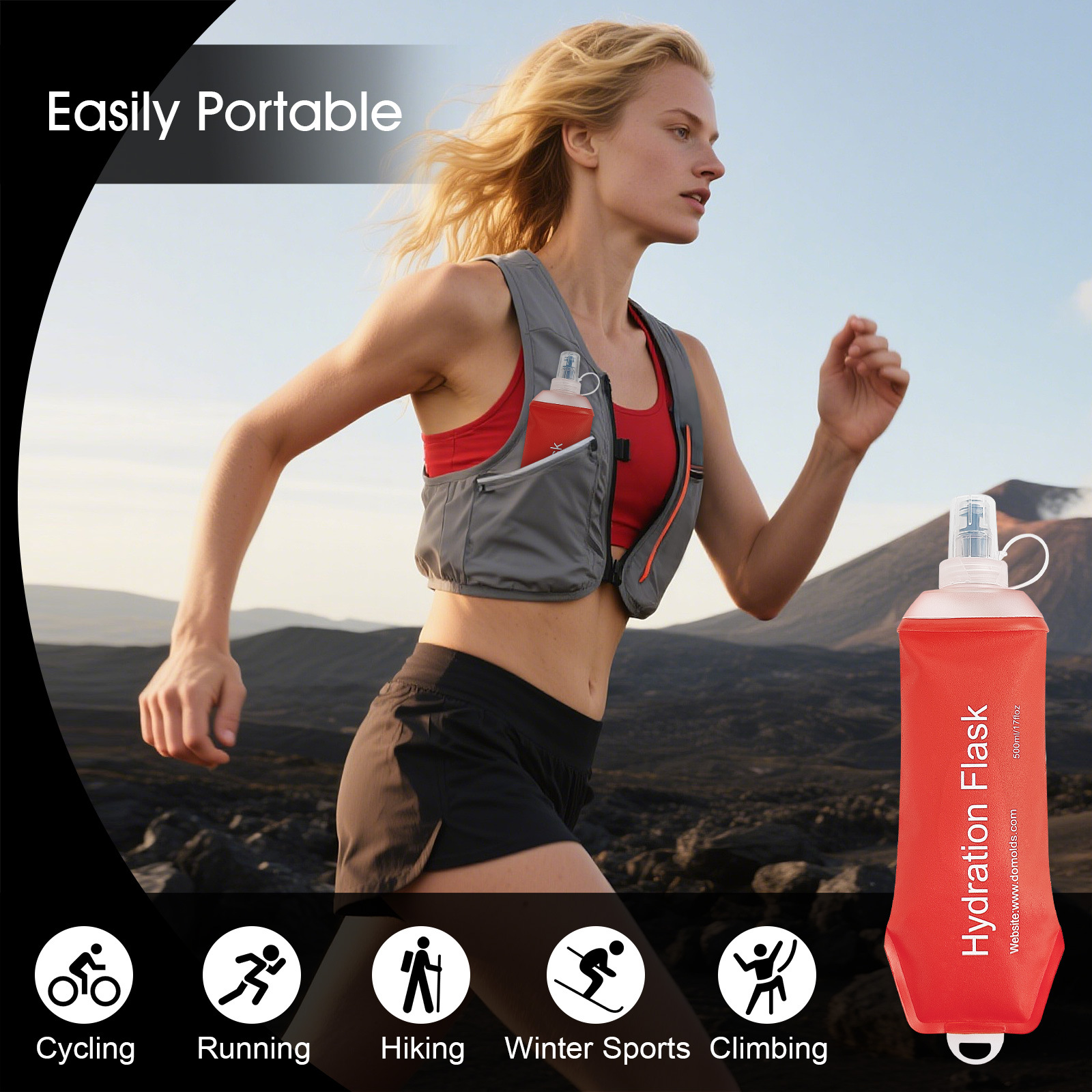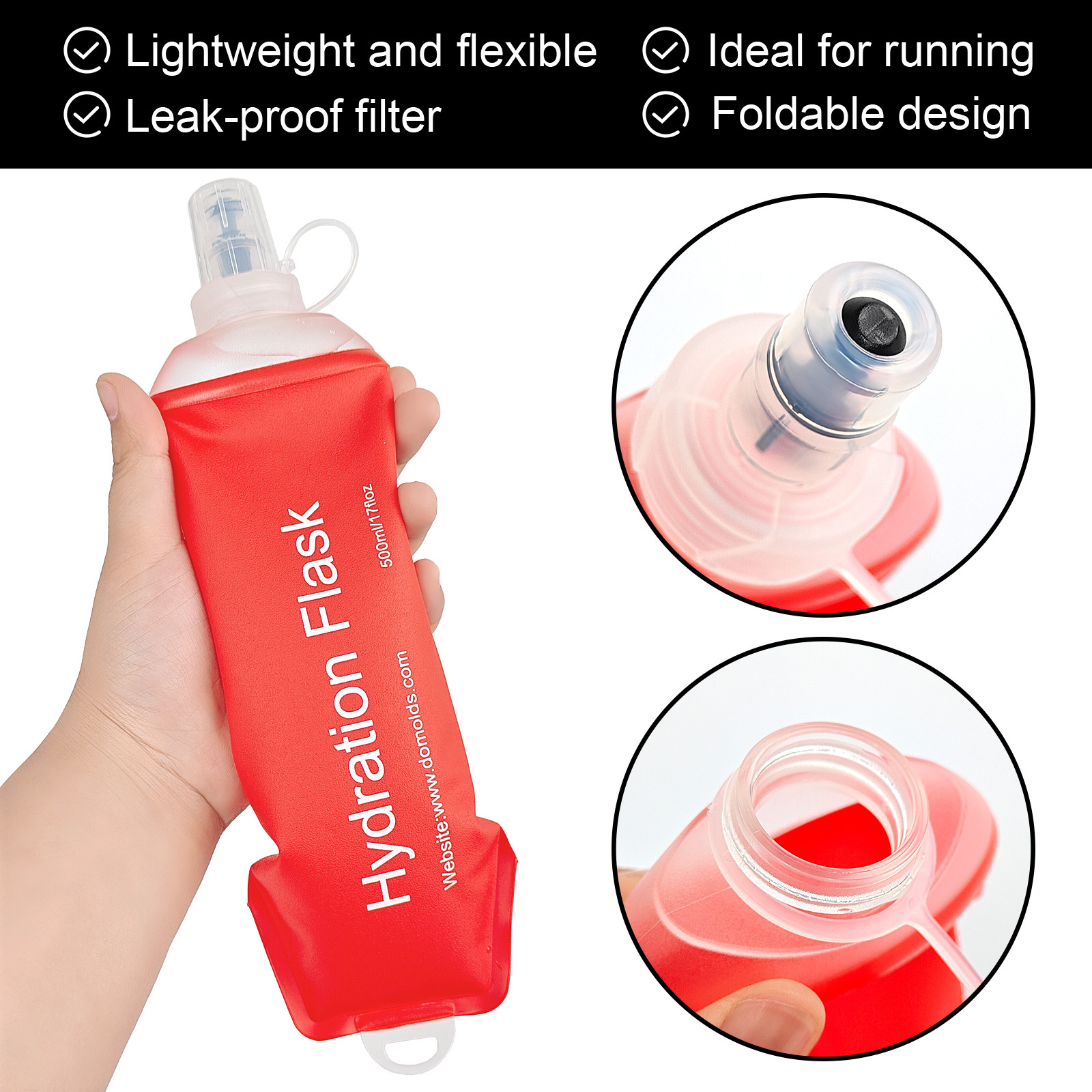 스팟 핫 세일 소프트 물병 TPU 실리콘 소프트 워터 백 피트니스 러닝 500ML 접이식 야외 여행 물병
