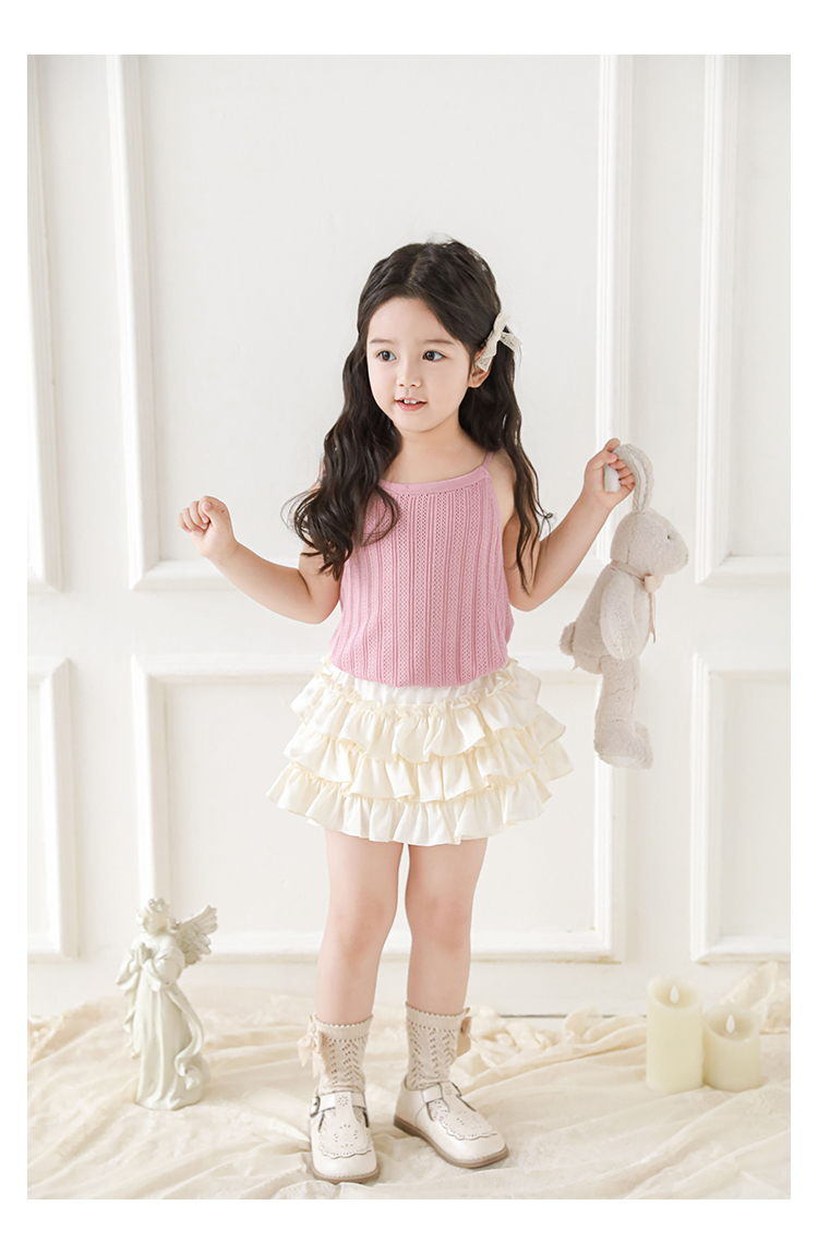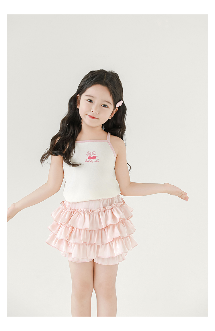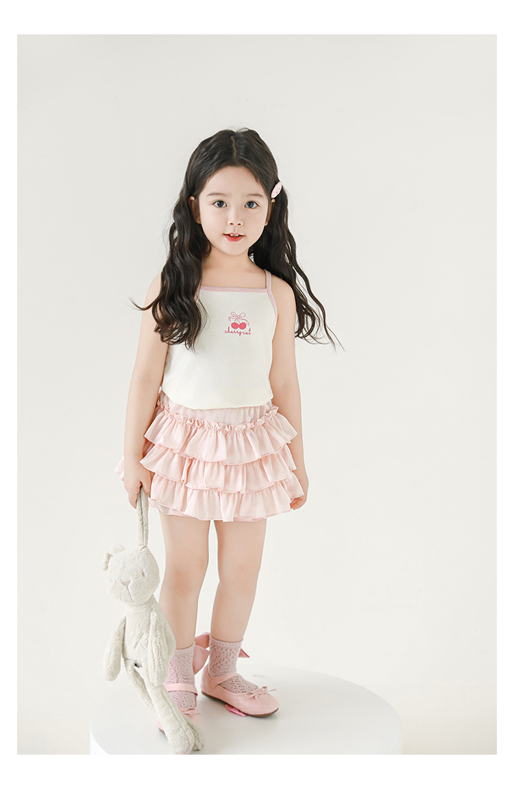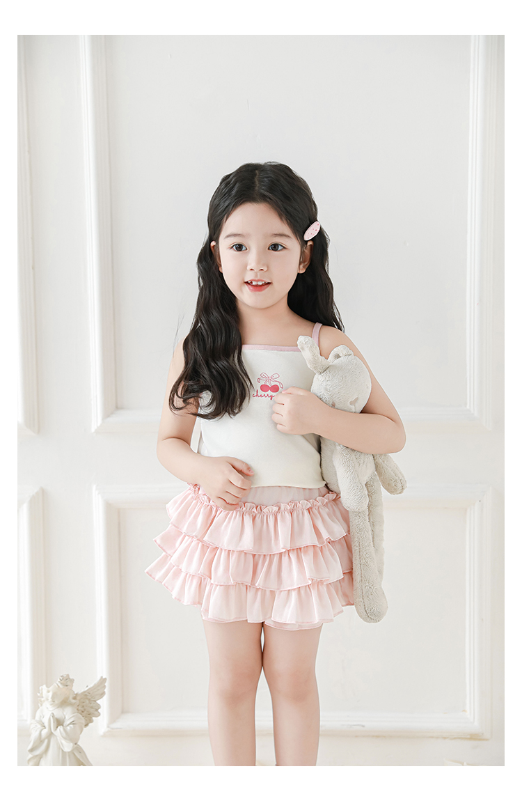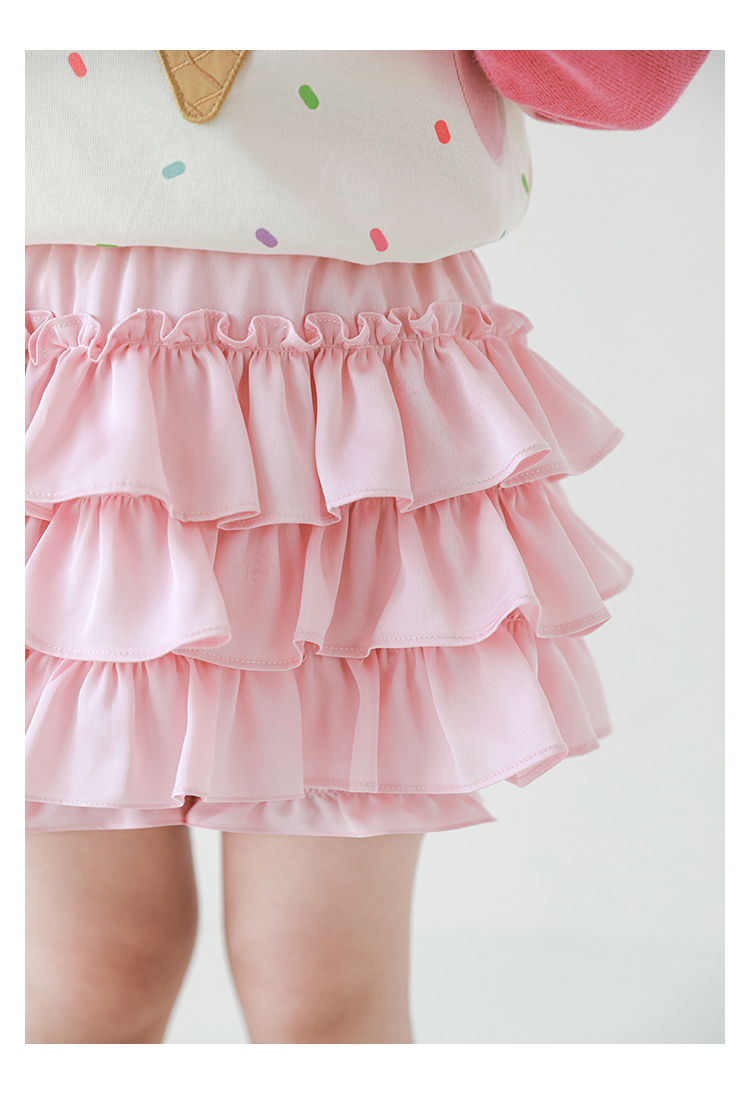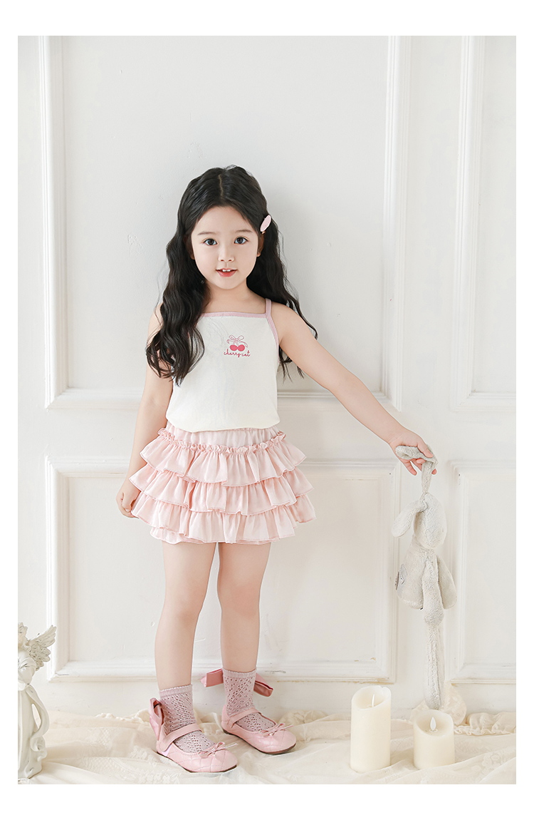 Wulibuyi 여아 3겹 주름 케이크 스커트 여름 달콤하고 귀엽고 우아한 발레 스타일 스커트 트렌디