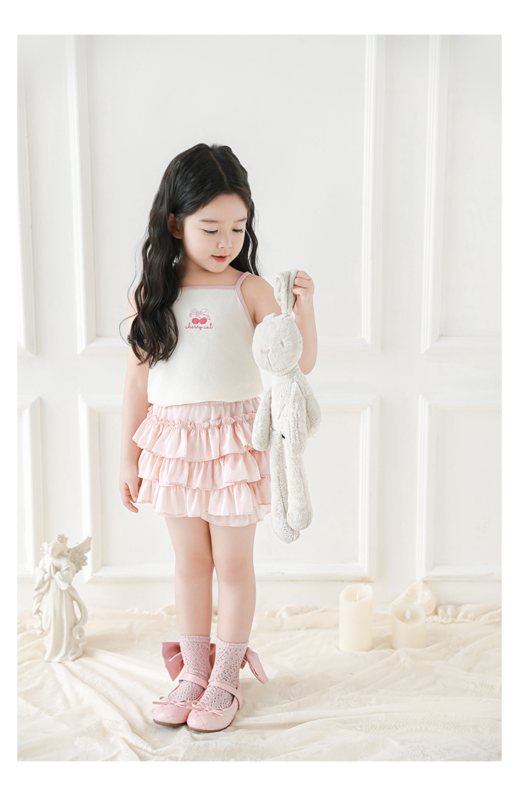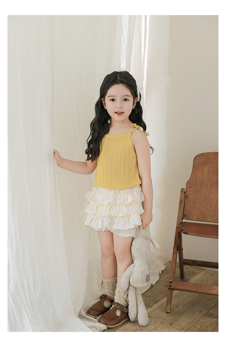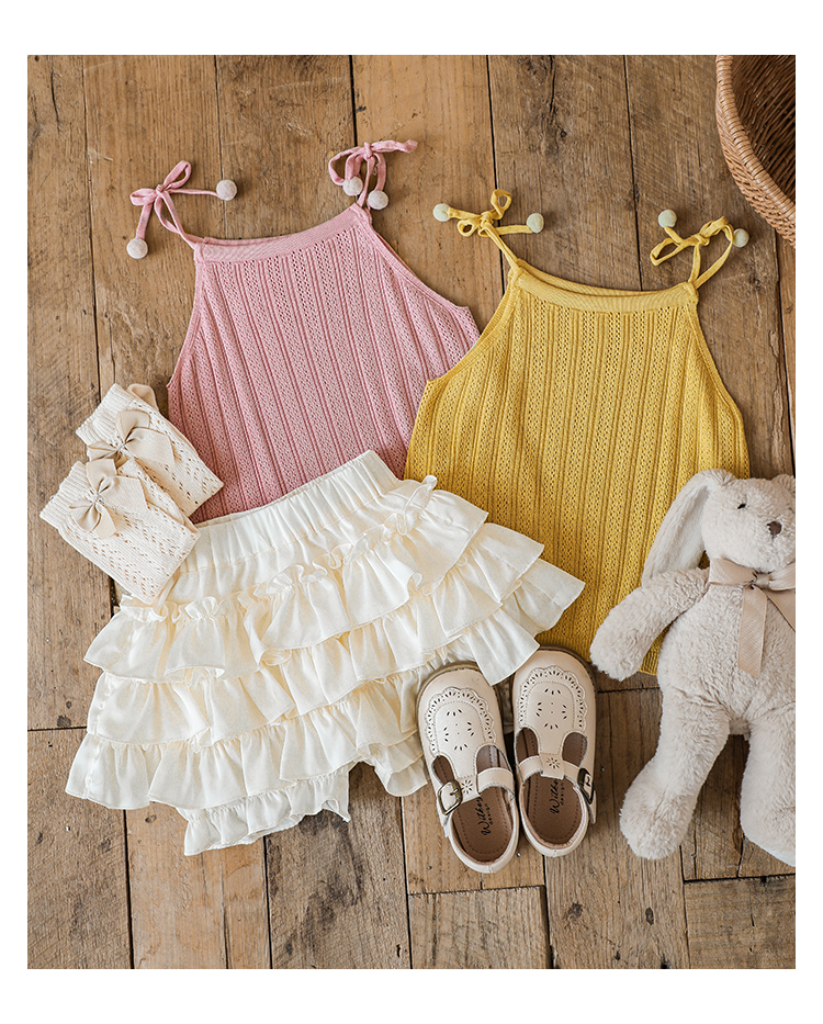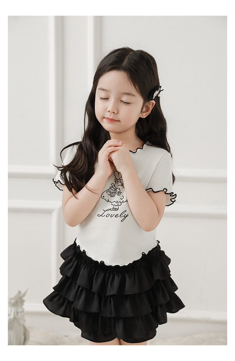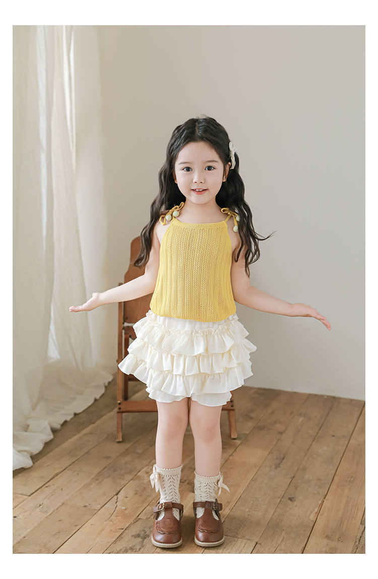 Wulibuyi 여아 3겹 주름 케이크 스커트 여름 달콤하고 귀엽고 우아한 발레 스타일 스커트 트렌디