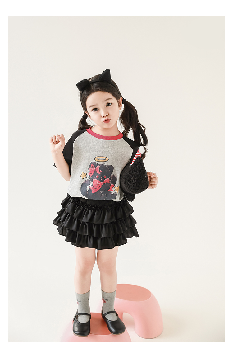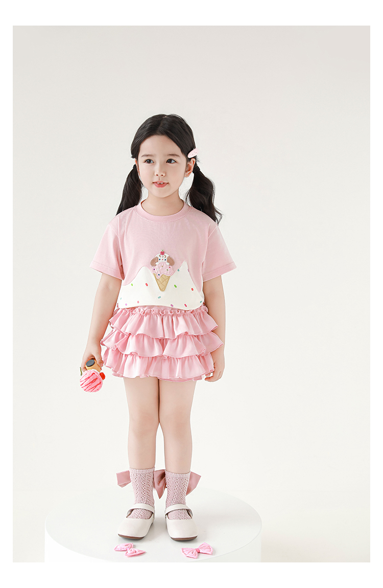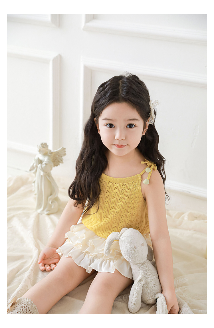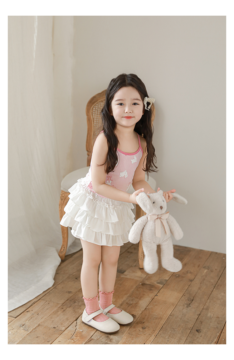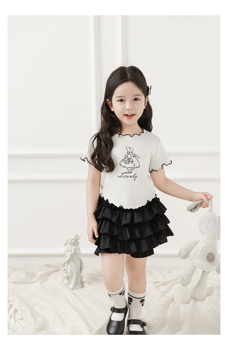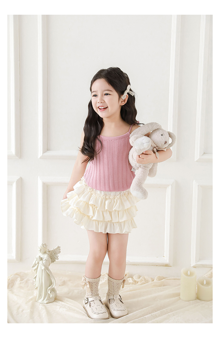 Wulibuyi 여아 3겹 주름 케이크 스커트 여름 달콤하고 귀엽고 우아한 발레 스타일 스커트 트렌디