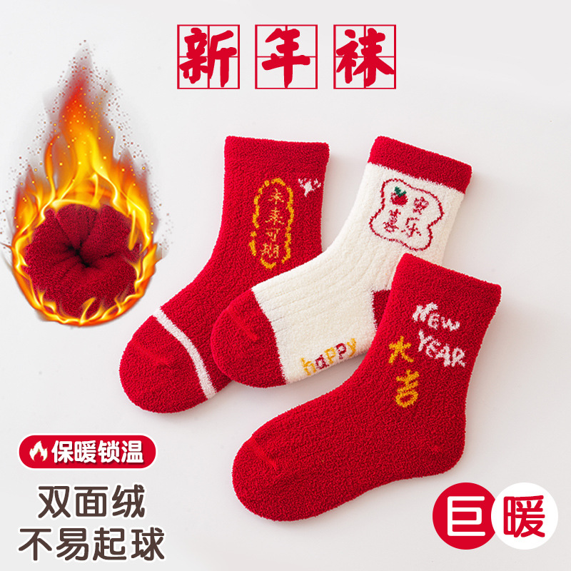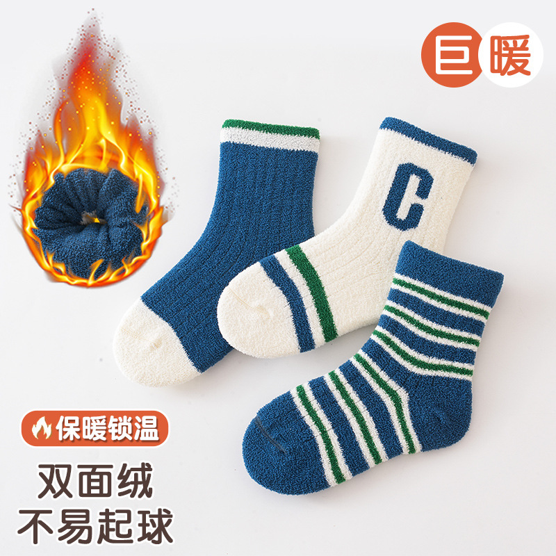 3 쌍-어린이 양말 가을과 겨울 두꺼운 안티 필링 겨울 따뜻한 산호 양털 튜브 소년과 소녀 가을 아기 양말