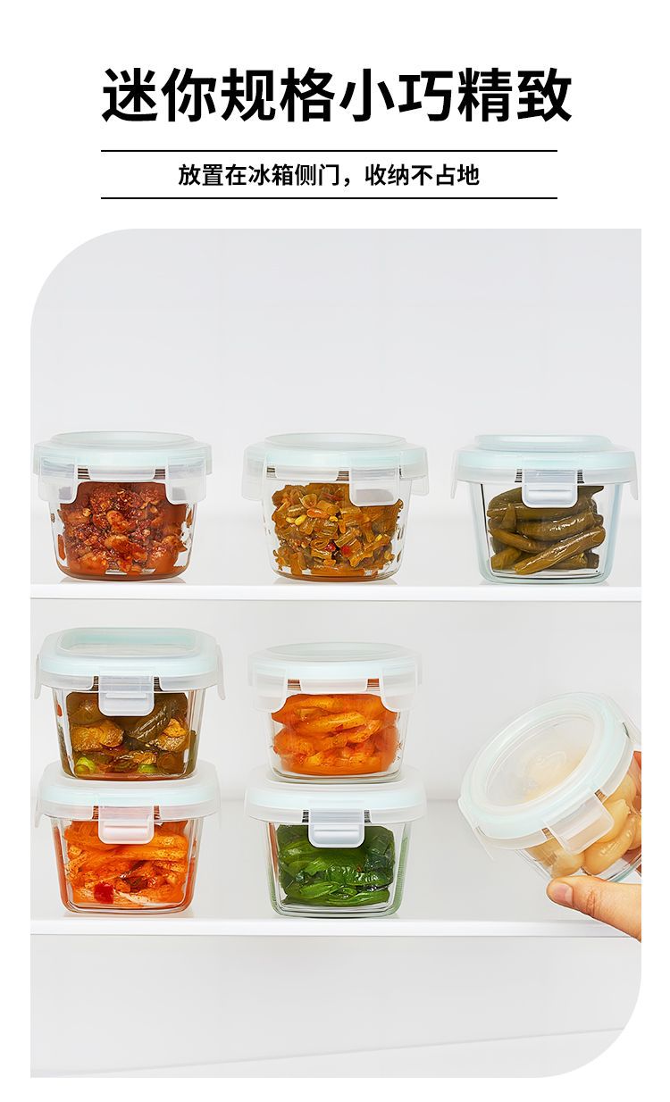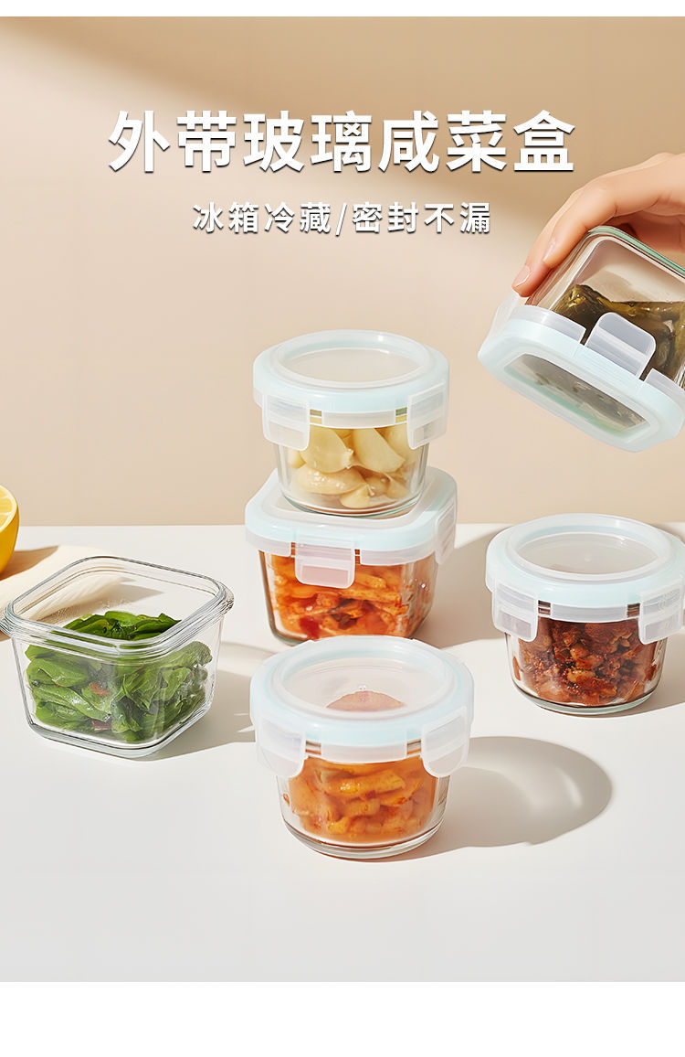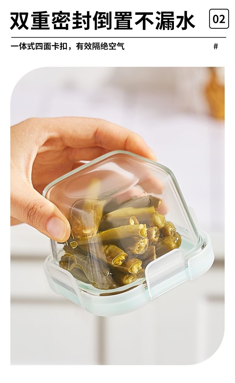 피클 그릇 유리 뚜껑이 있는 사각형 작은 조미료 그릇 고온 방지 식품 밀봉 보존 상자 냉장고 도시락 상자스토어 가기