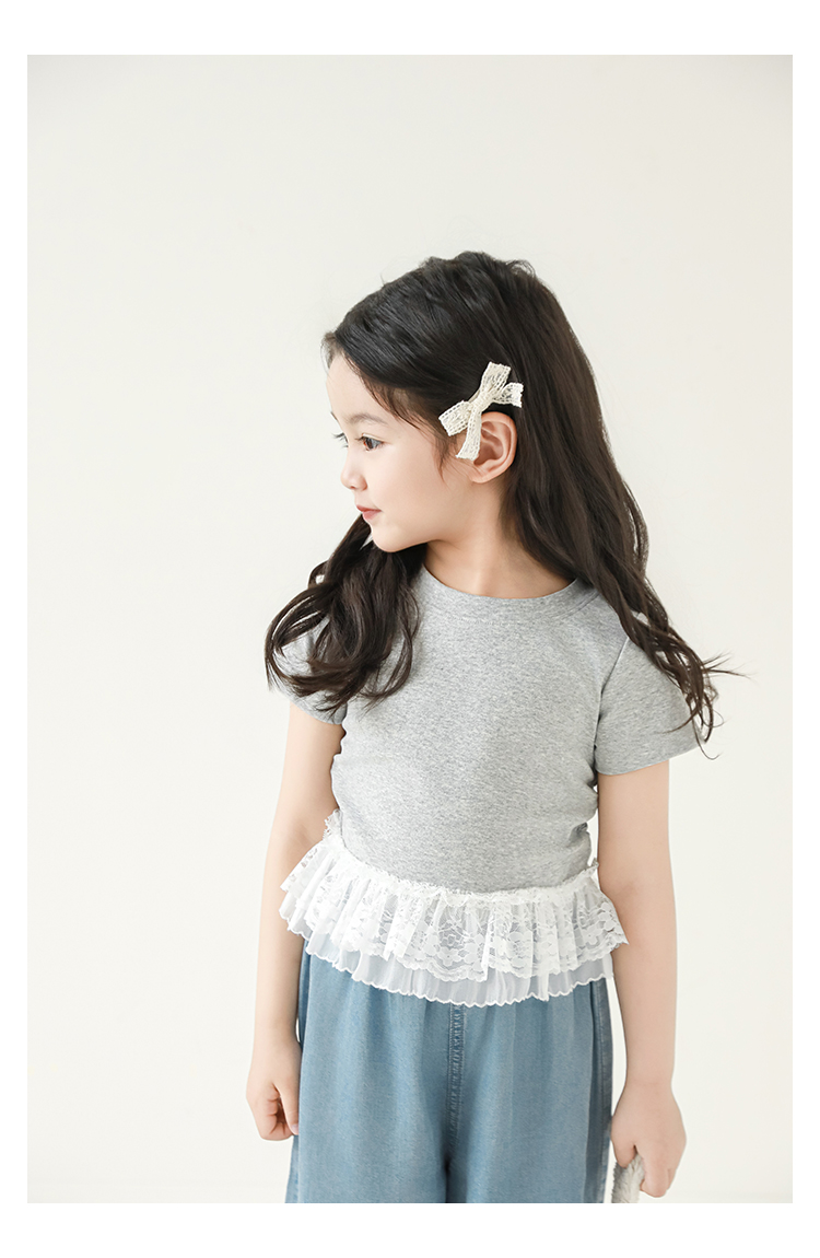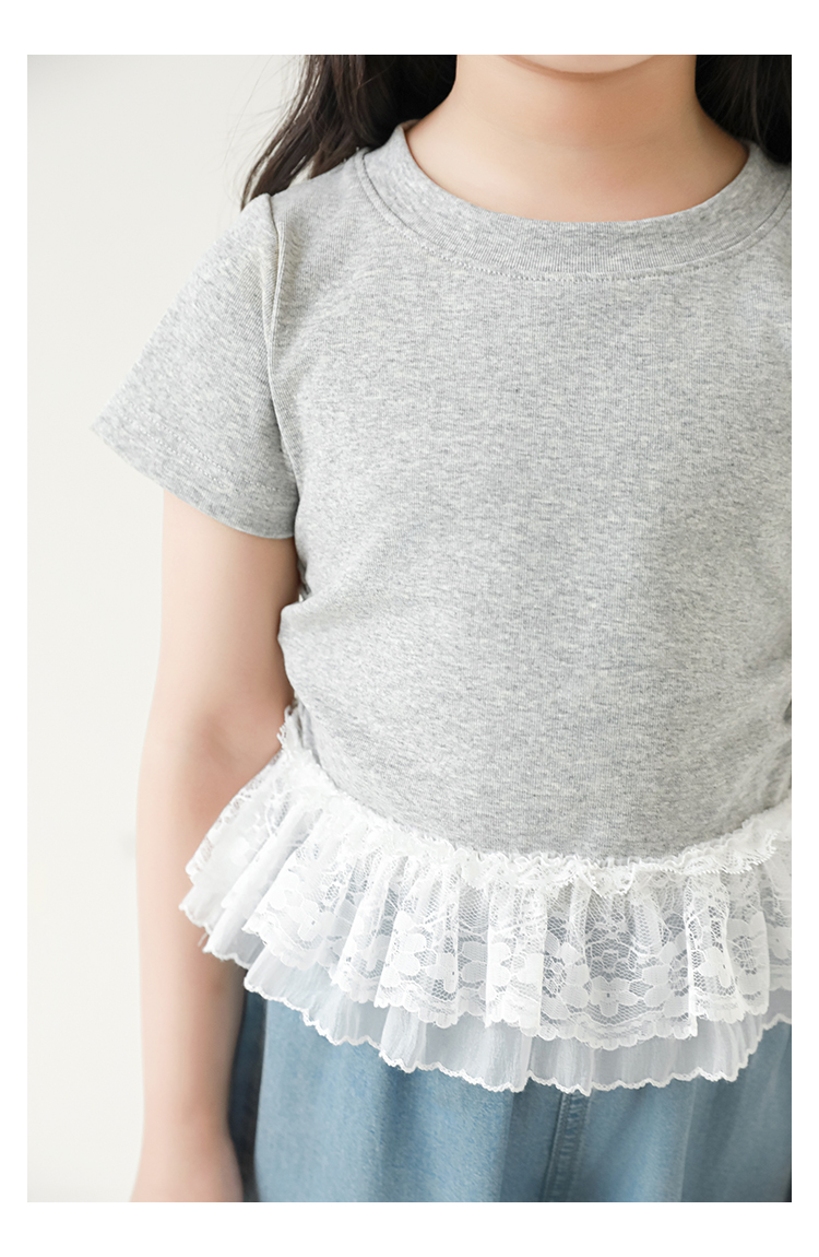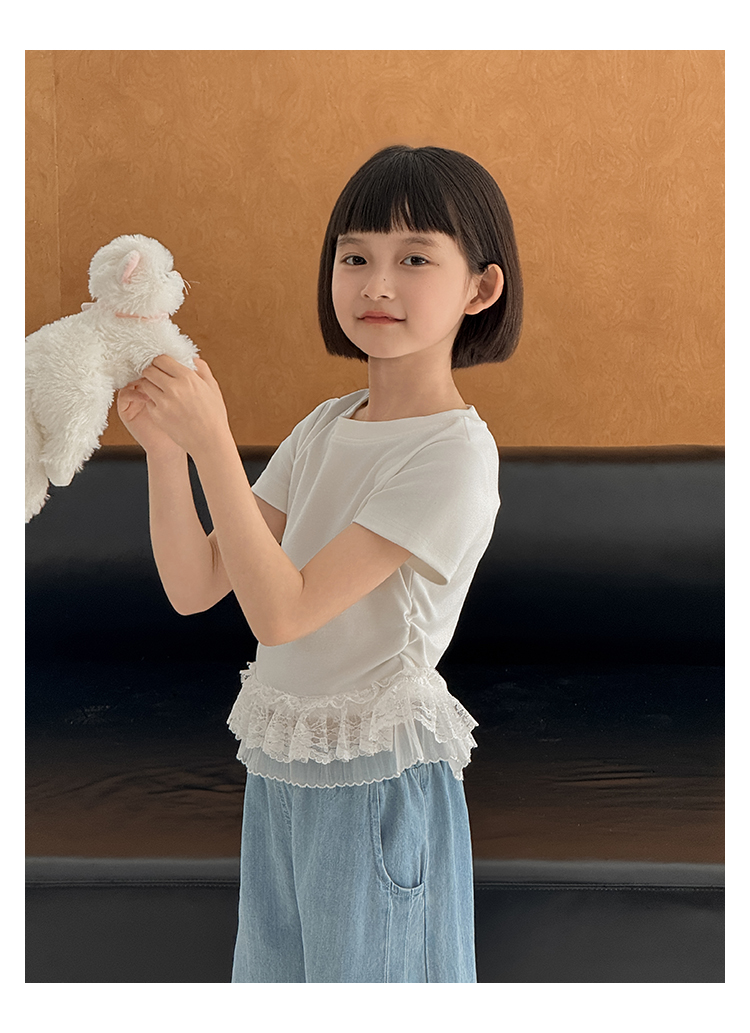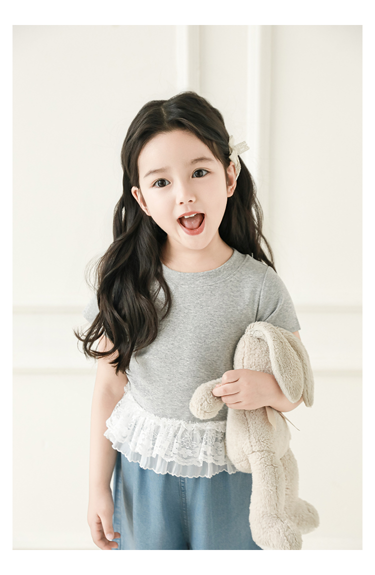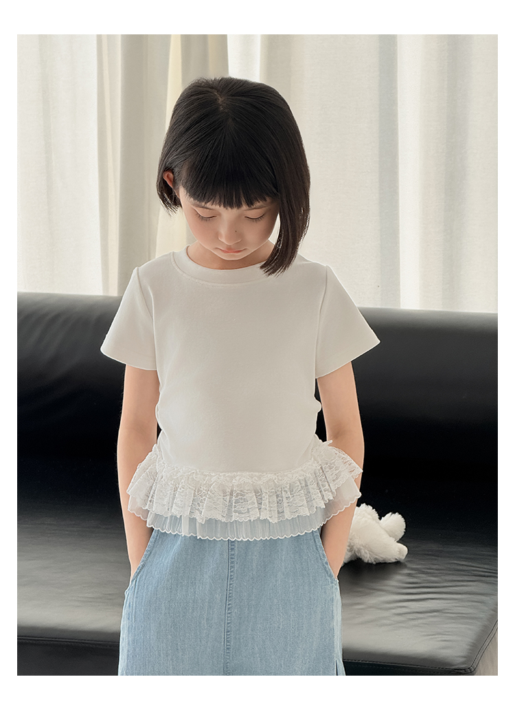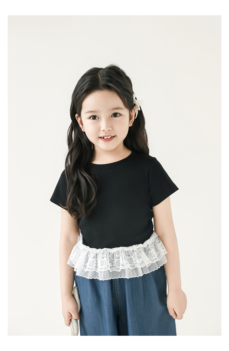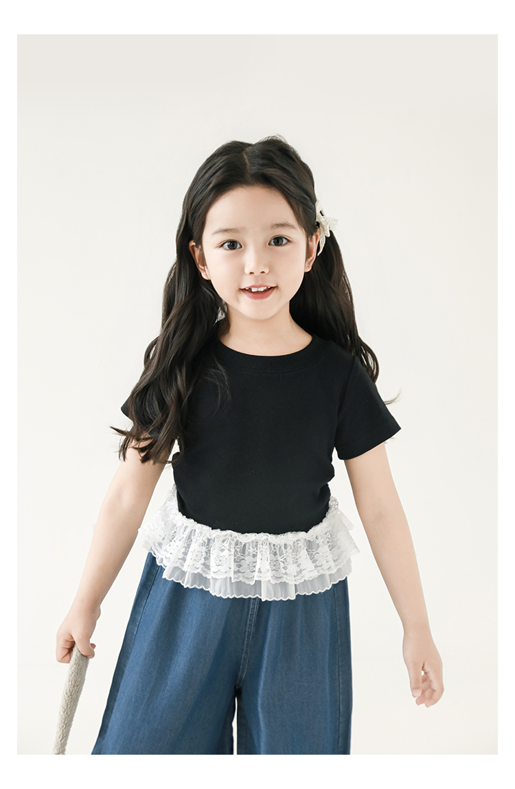 여자의 유행 작은 허리 좋은 레이스 스티칭 반팔 티셔츠 2025 여름 상쾌한 탑 조수스토어 가기