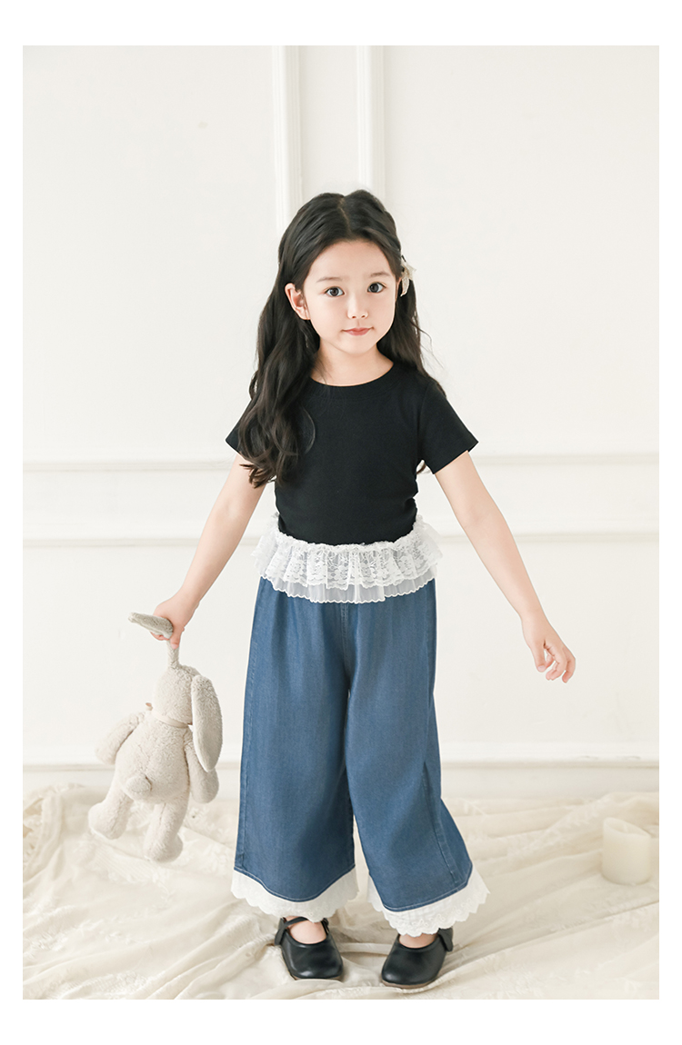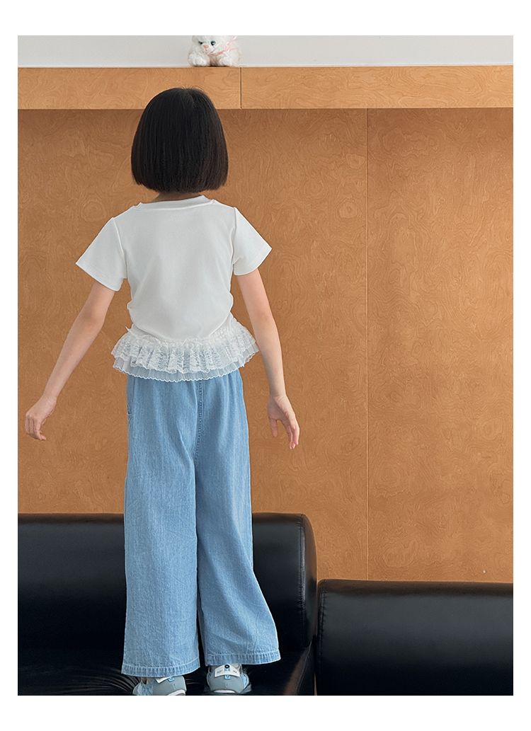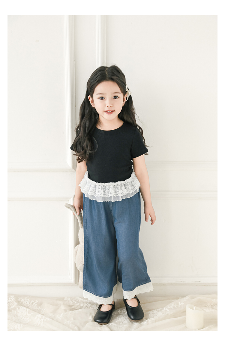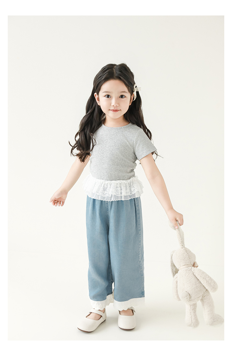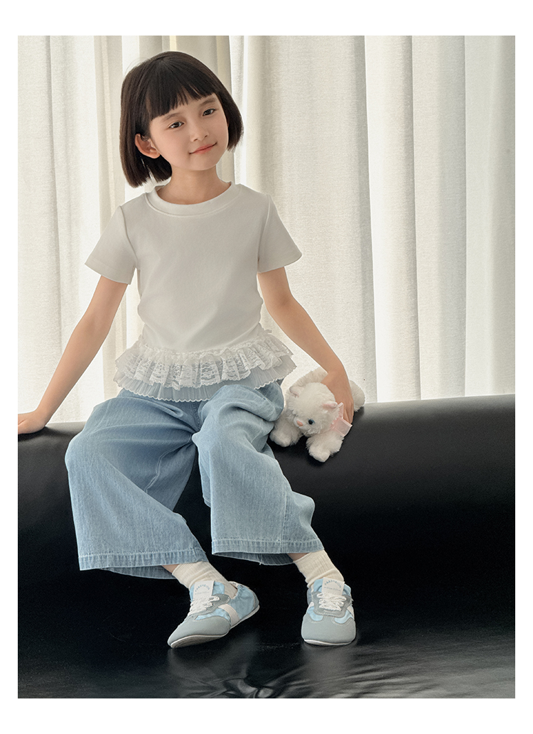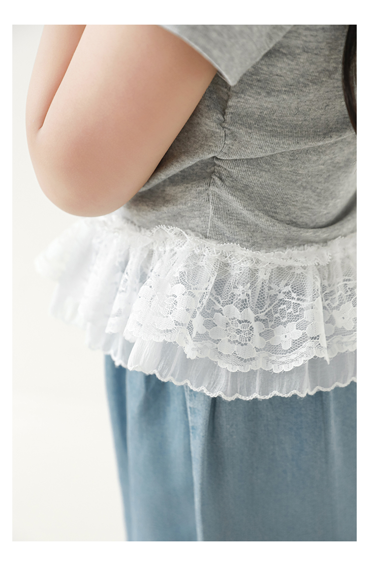 여자의 유행 작은 허리 좋은 레이스 스티칭 반팔 티셔츠 2025 여름 상쾌한 탑 조수스토어 가기