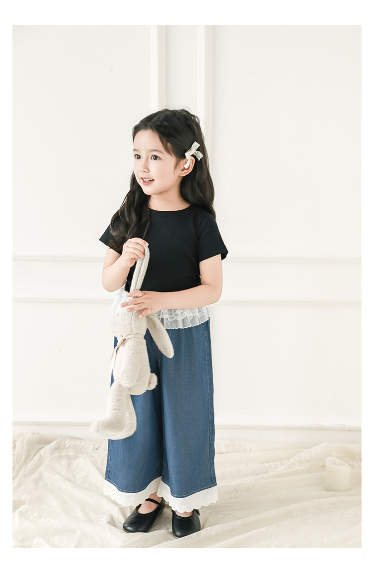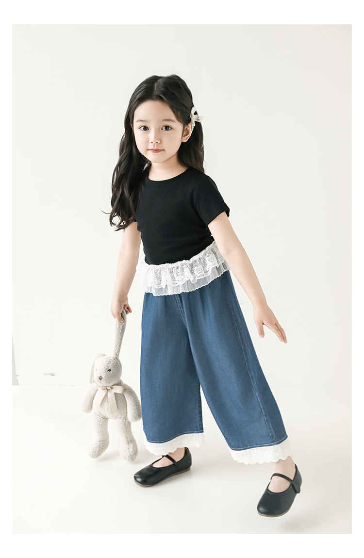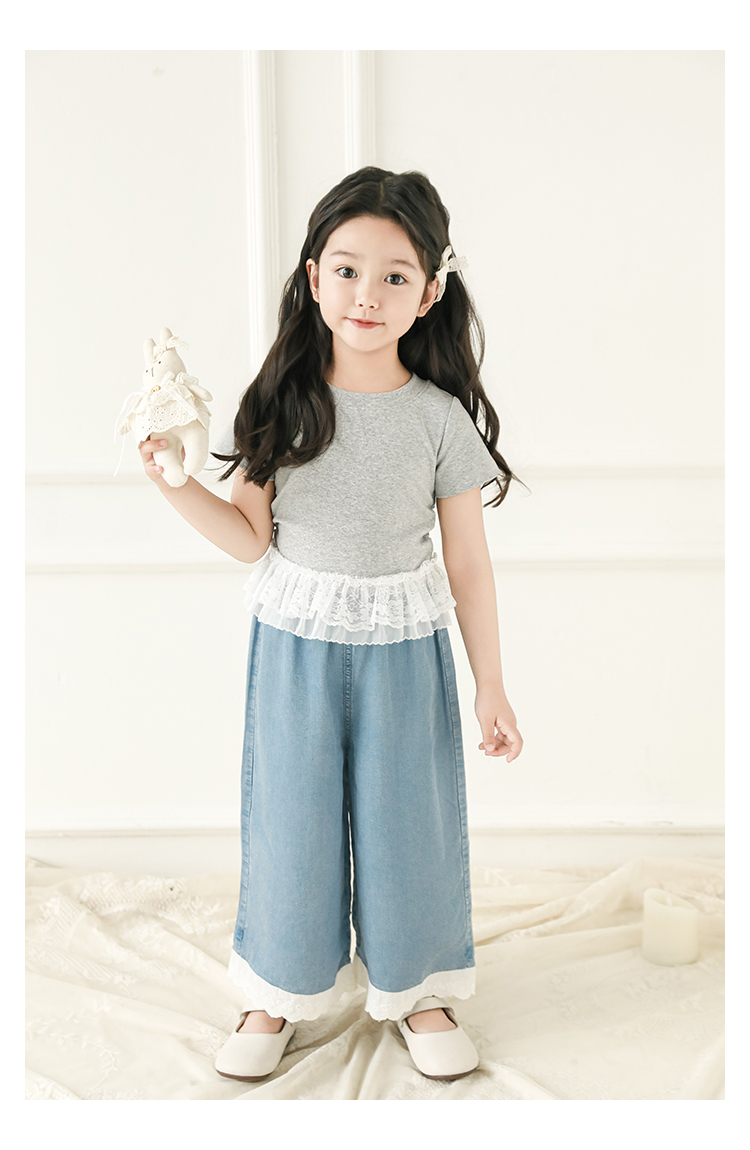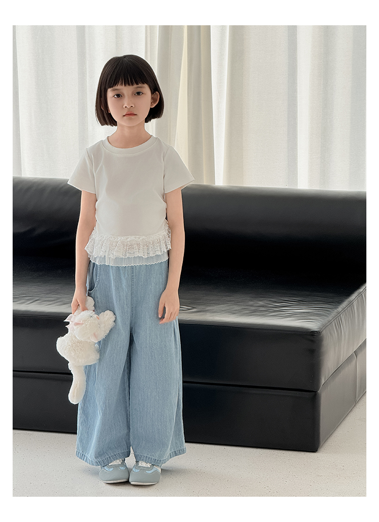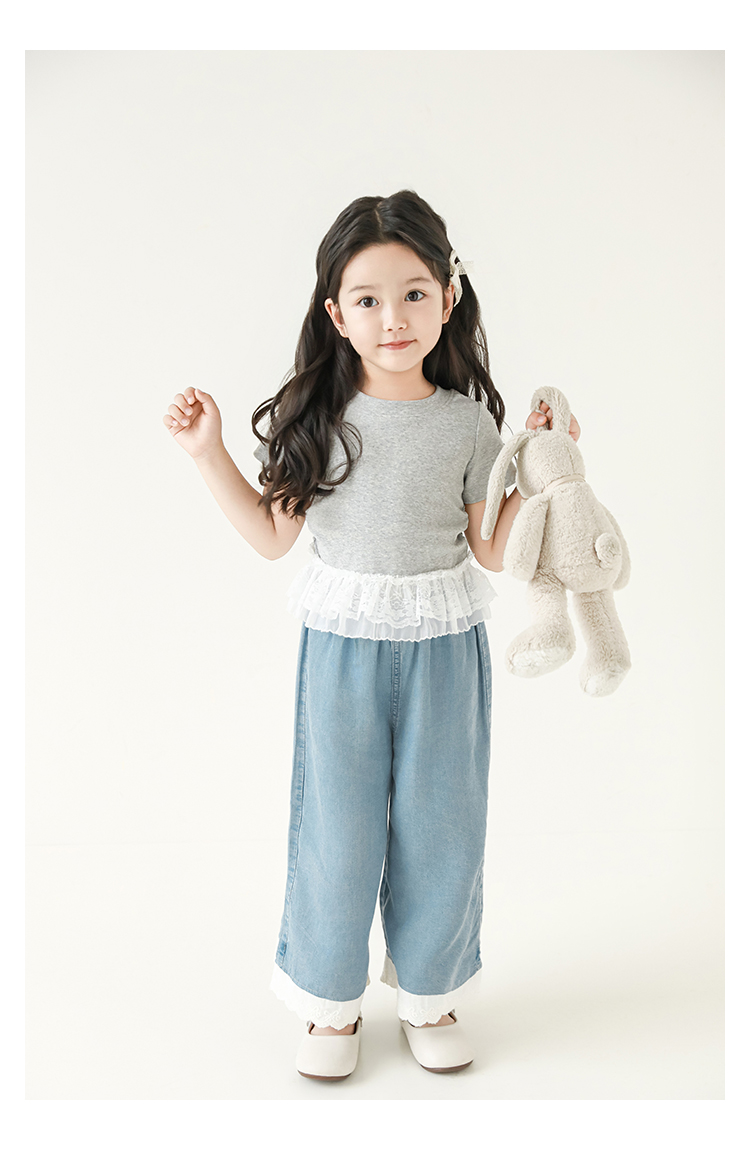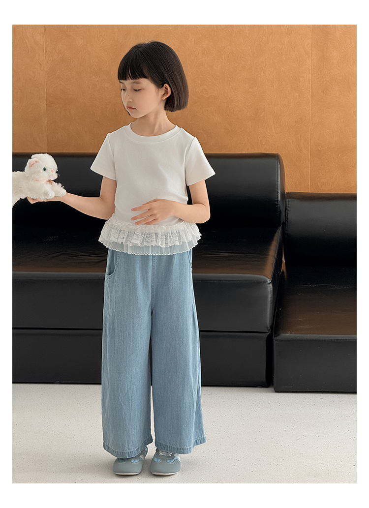 여자의 유행 작은 허리 좋은 레이스 스티칭 반팔 티셔츠 2025 여름 상쾌한 탑 조수스토어 가기