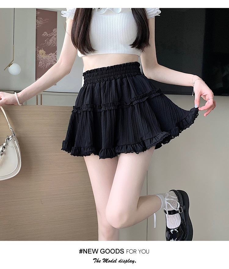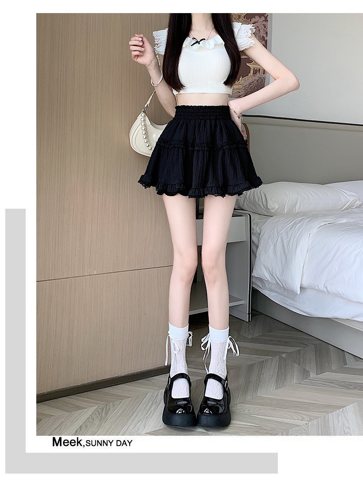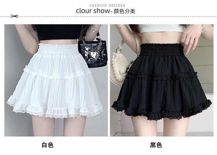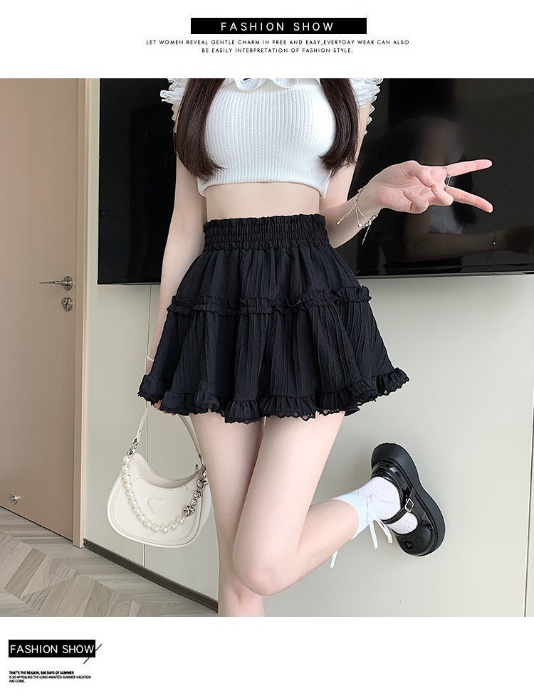 여성을위한 새로운 스타일의 신선하고 달콤한 주름 하이 웨이스트 스커트 여름 슬리밍 레이스 주름 퍼프 스커트스토어 가기