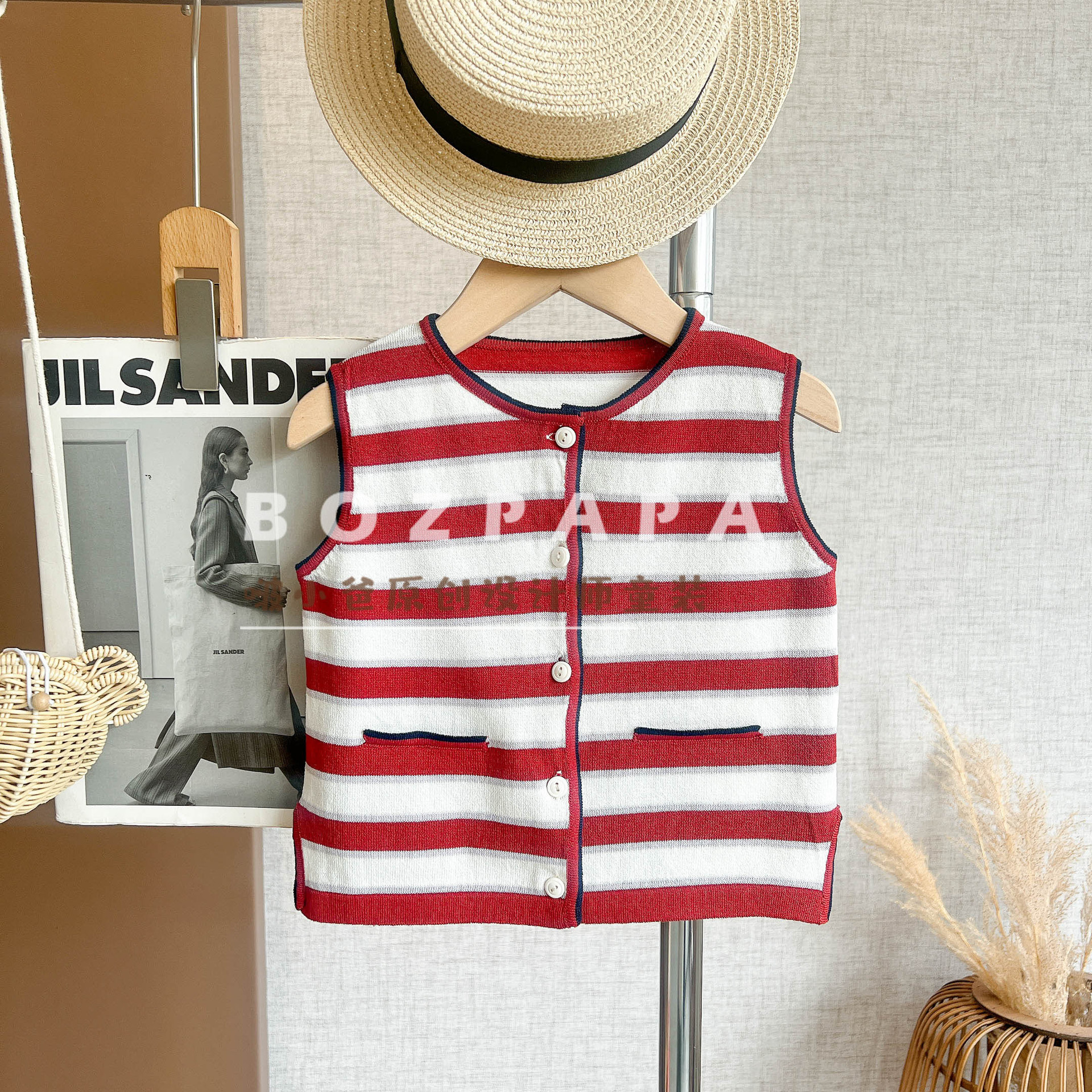 2025 새로운 여름 소년 한국 캐주얼 겉옷 조끼 어린이 베이비 스트라이프 디자인 싱글 브레스트 조끼스토어 가기