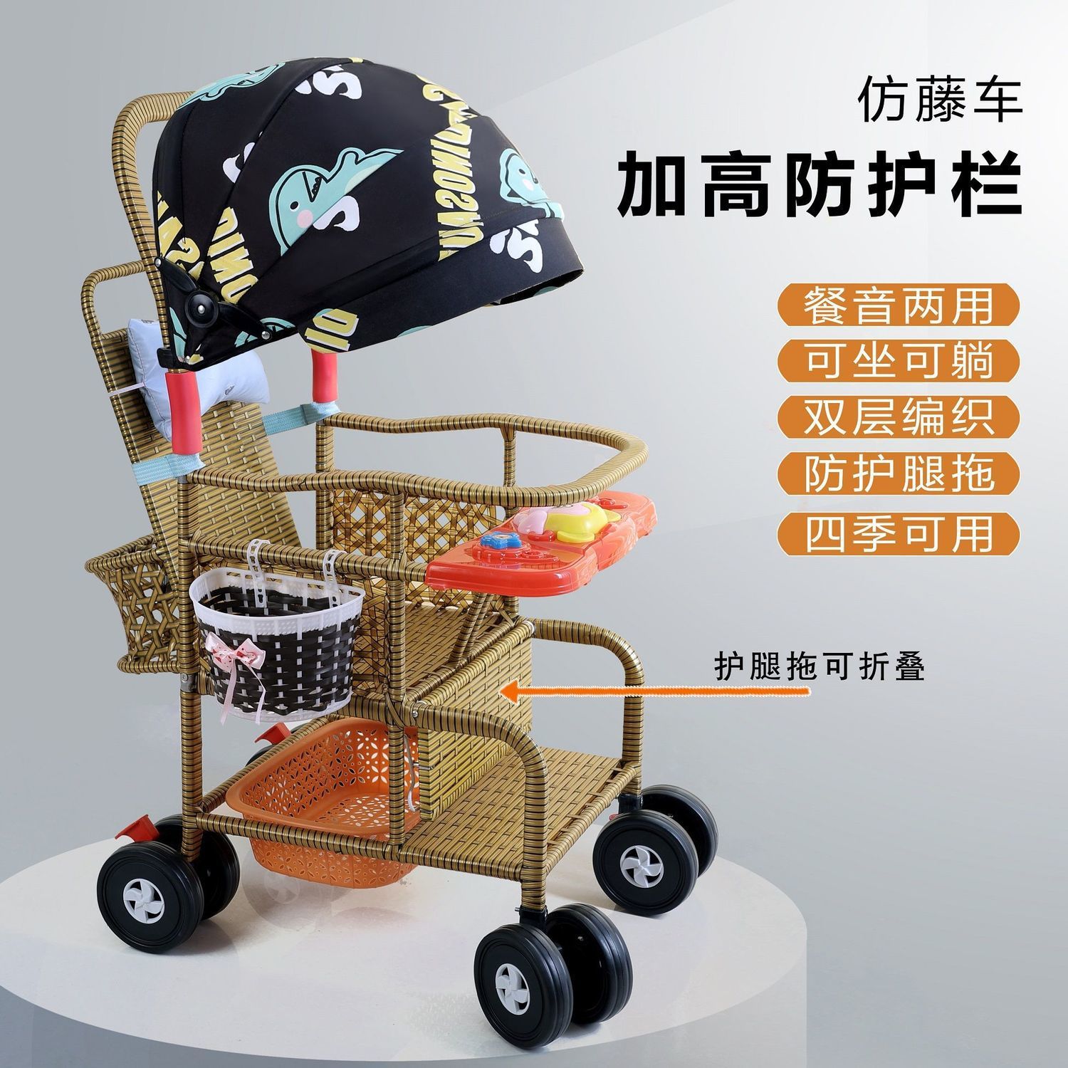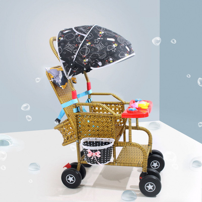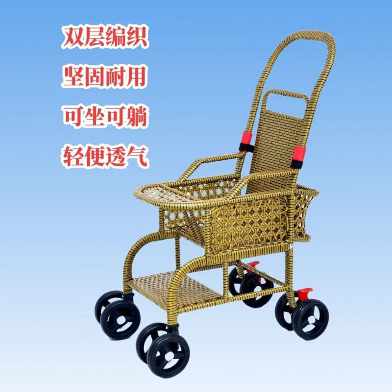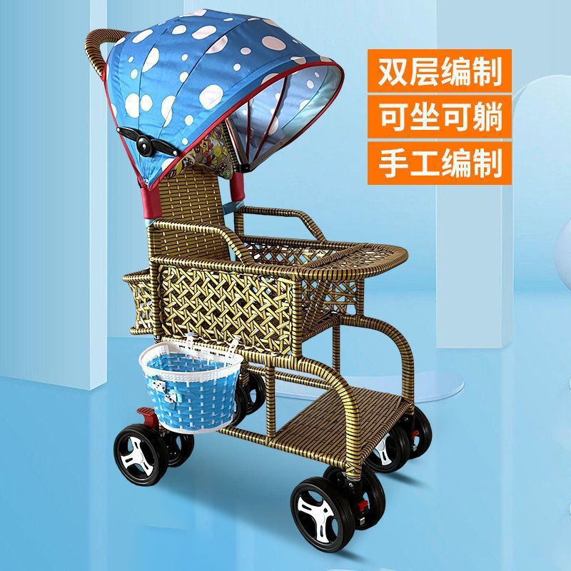 여름용 라탄 유모차, 아기 유모차, 라탄 의자, 소형 유모차, 인조 라탄, 가벼운 대나무 라탄, 아기가 앉거나 누울 수 있는 라탄 제품스토어 가기