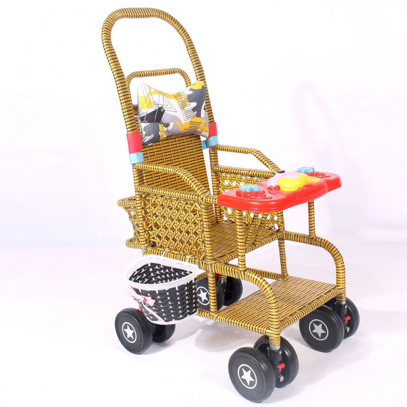 여름용 라탄 유모차, 아기 유모차, 라탄 의자, 소형 유모차, 인조 라탄, 가벼운 대나무 라탄, 아기가 앉거나 누울 수 있는 라탄 제품