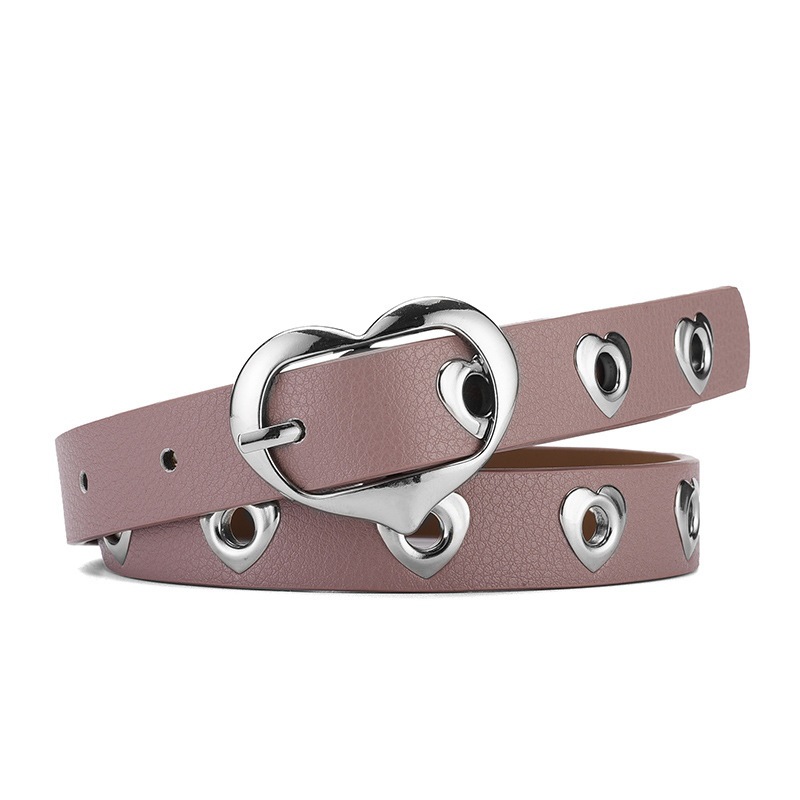 새로운 하트 모양 핀 버클 아동용 가죽 벨트, 하트 모양 구멍이 있는 남아용 얇은 벨트, 여아용 범용 청바지용 검정색 벨트