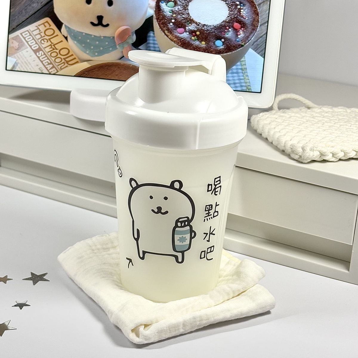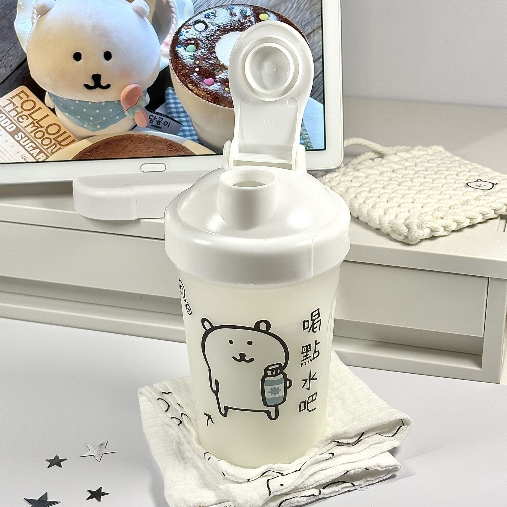 Ins 인터넷 연예인 새로운 귀여운 자기 조롱 곰 플라스틱 컵 여름 셰이커 컵 피트니스 워터 컵 학생 휴대용 직접 마시는 컵