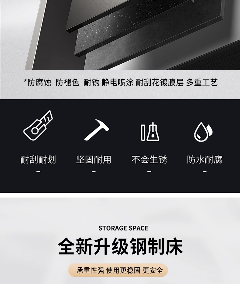 • 대담하고 두꺼운 모델 - 0.9m 와이드 매트 블랙 - 침대 보드 + 옷장 + 책상 포함