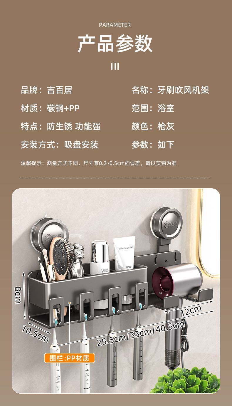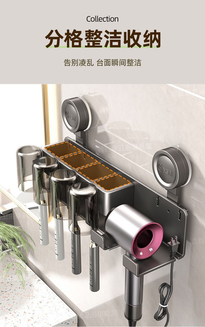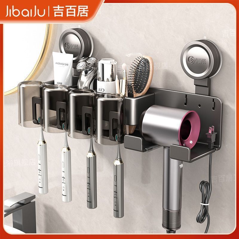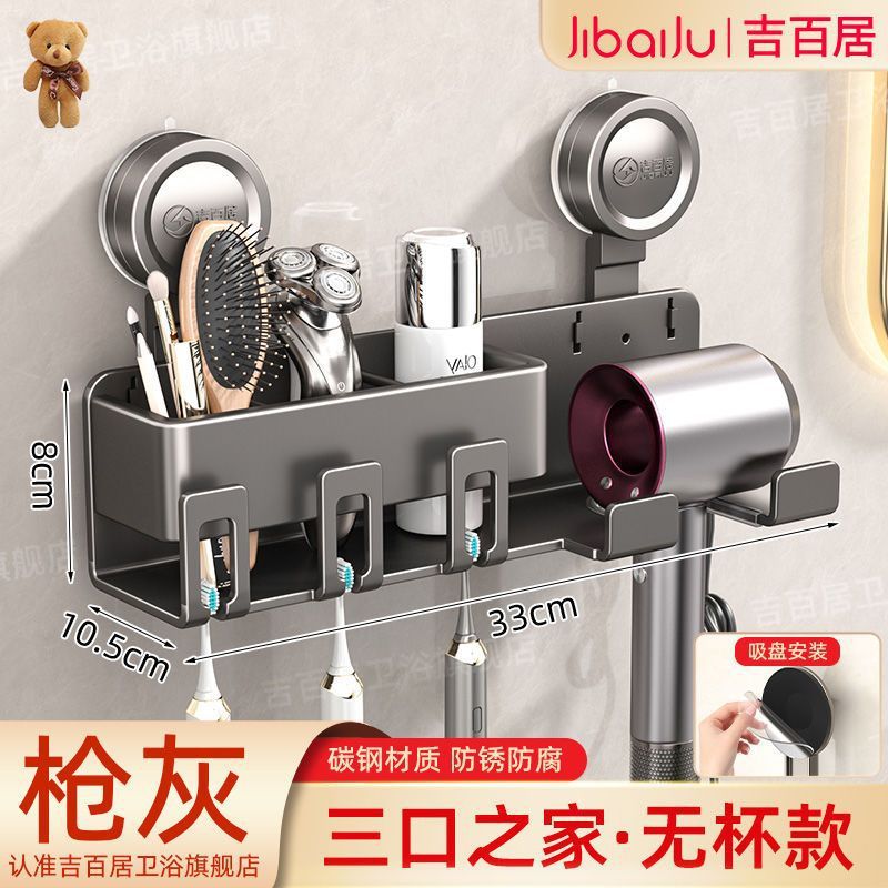 제조업체는 건 그레이 흡입 컵 칫솔 컵 홀더 욕실 전동 칫솔 홀더 헤어 드라이어 홀더 다기능 보관함을 공급합니다.스토어 가기