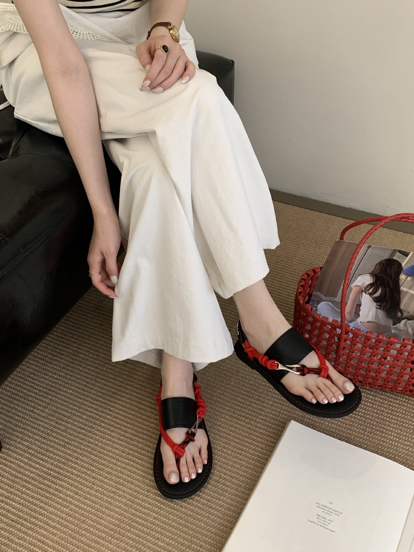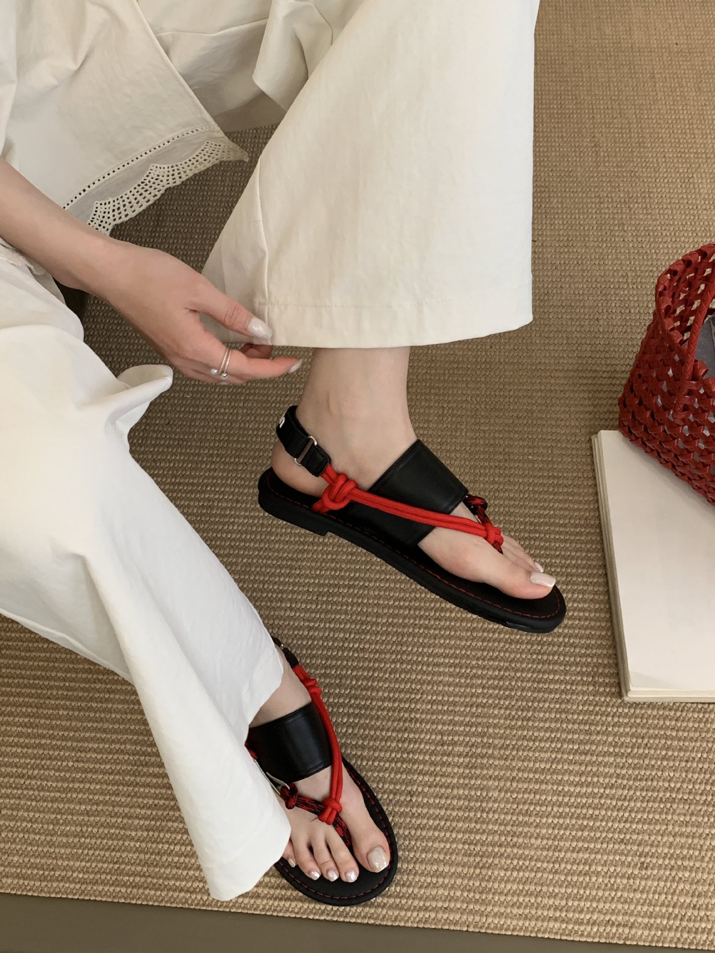 2025 년 여름 새로운 틈새 플랫 올 매치 캐주얼 신발 휴일 샌들 여성용 로마 샌들