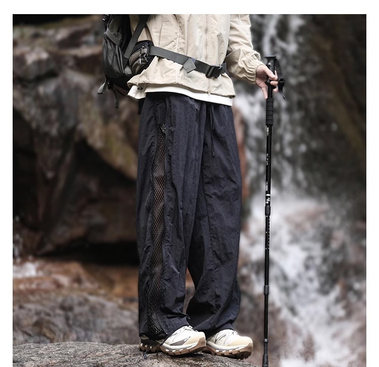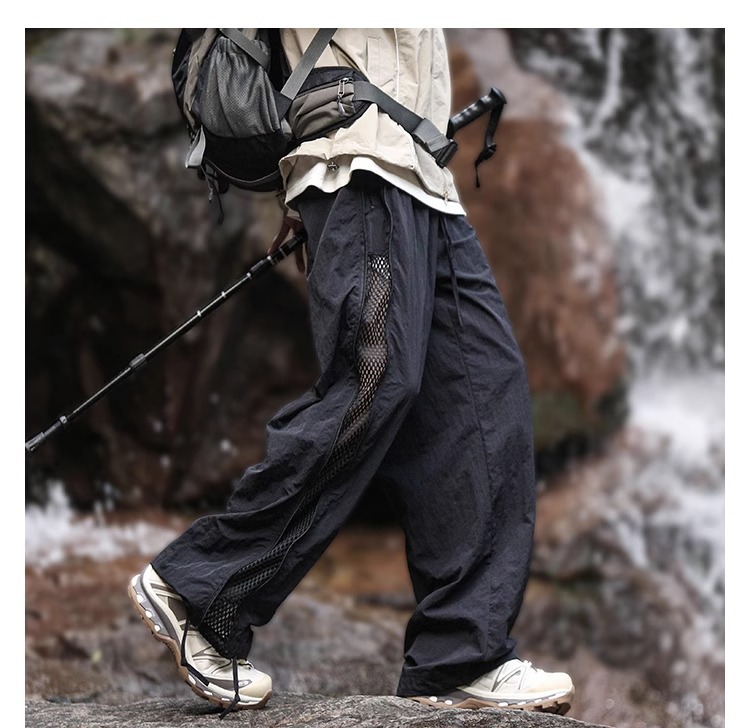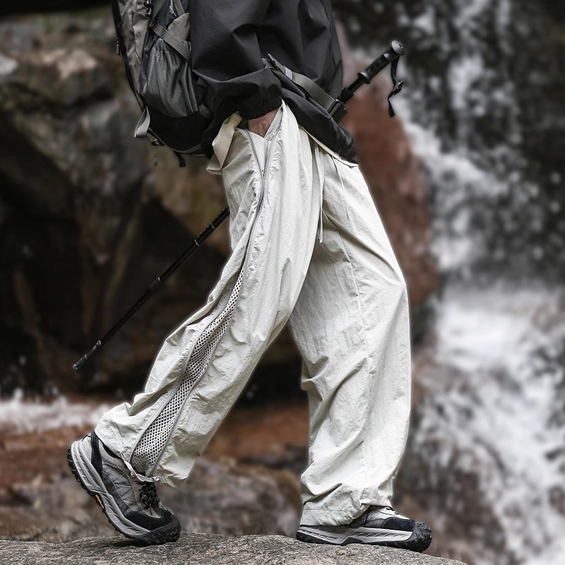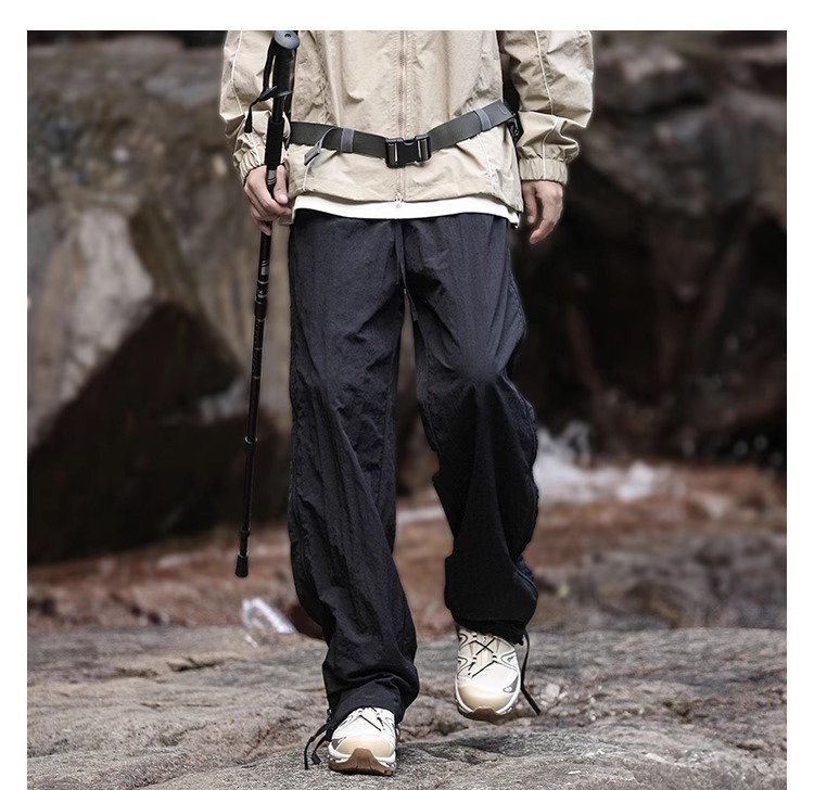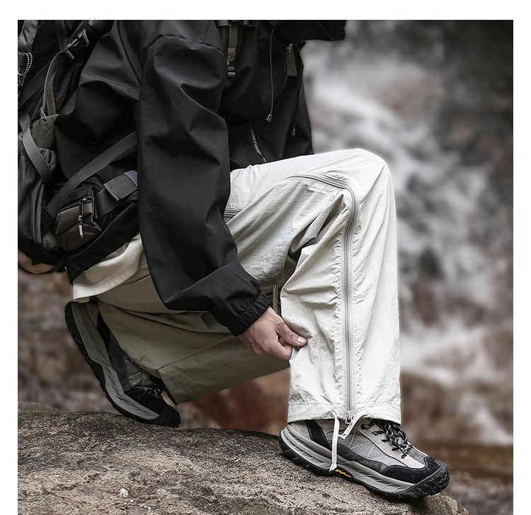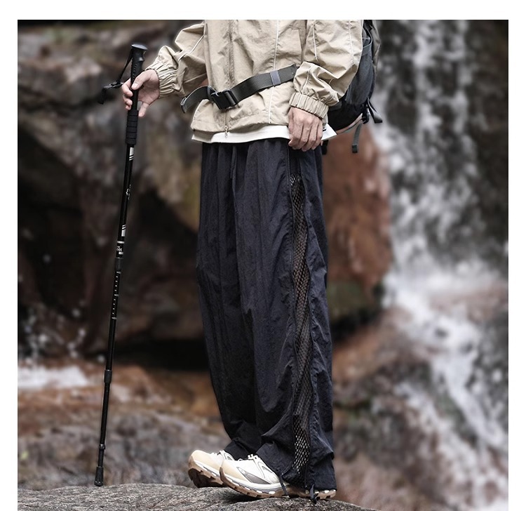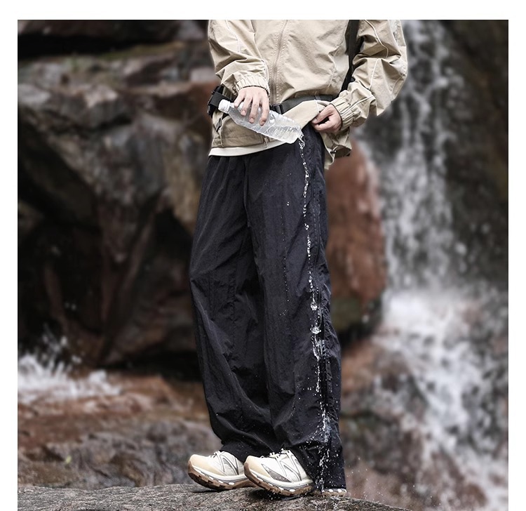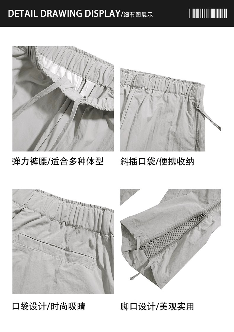 사이드 지퍼 기능성 바람 속도 드라이 바지 남성용 여름 얇은 느슨한 잘 생긴 유행 스트레이트 아이스 실크 바지 크록 바지스토어 가기