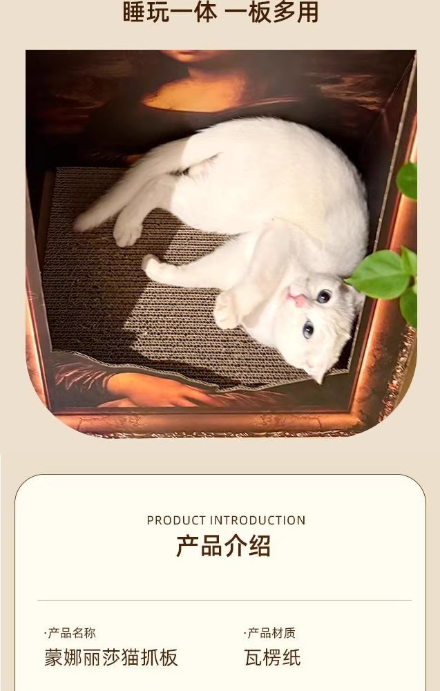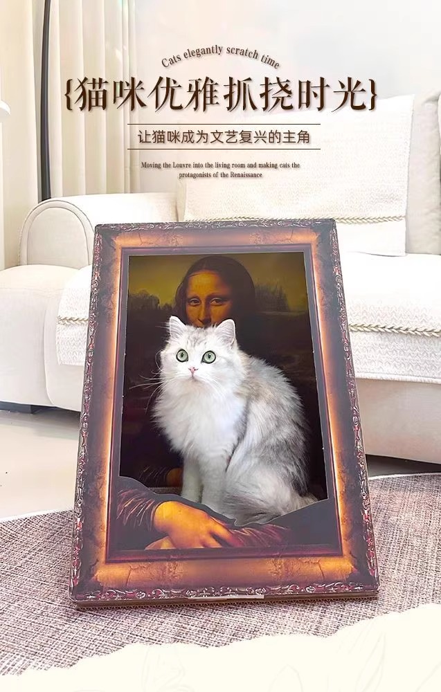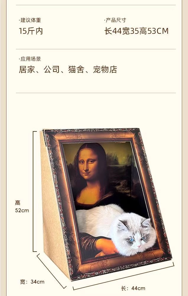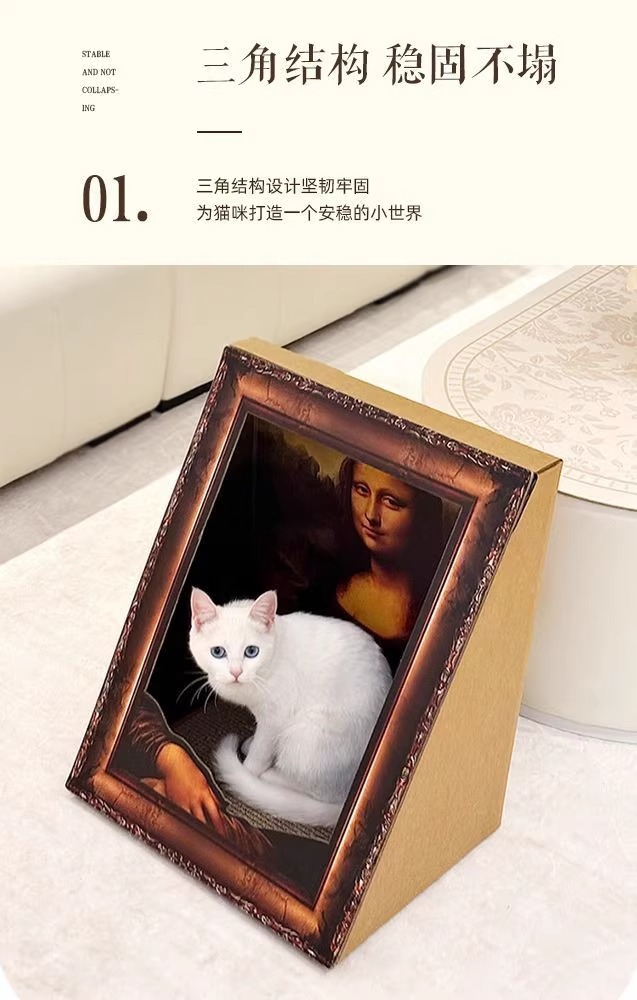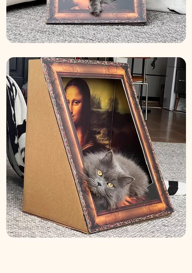 모나리자 유화 스테레오 포토 프레임 고양이 스크래치 보드 둥지 내마모성 없음 딥 교체 가능한 골판지 애완 동물 집 유니버설스토어 가기