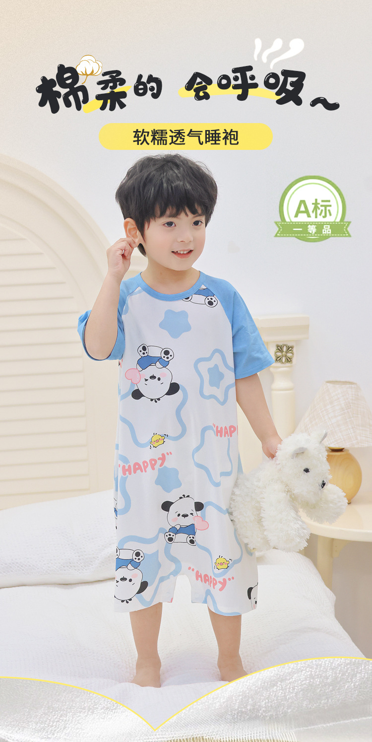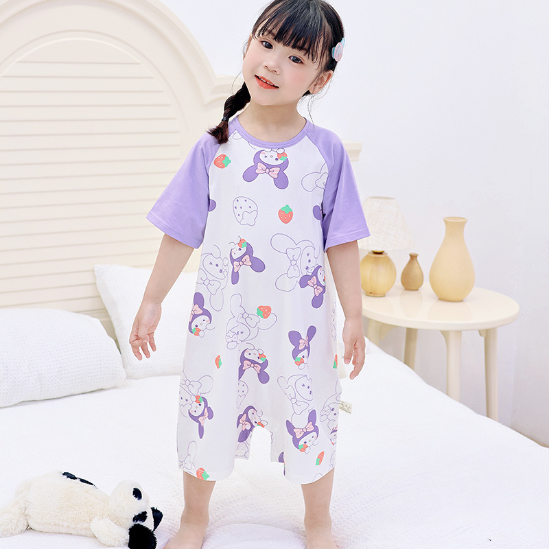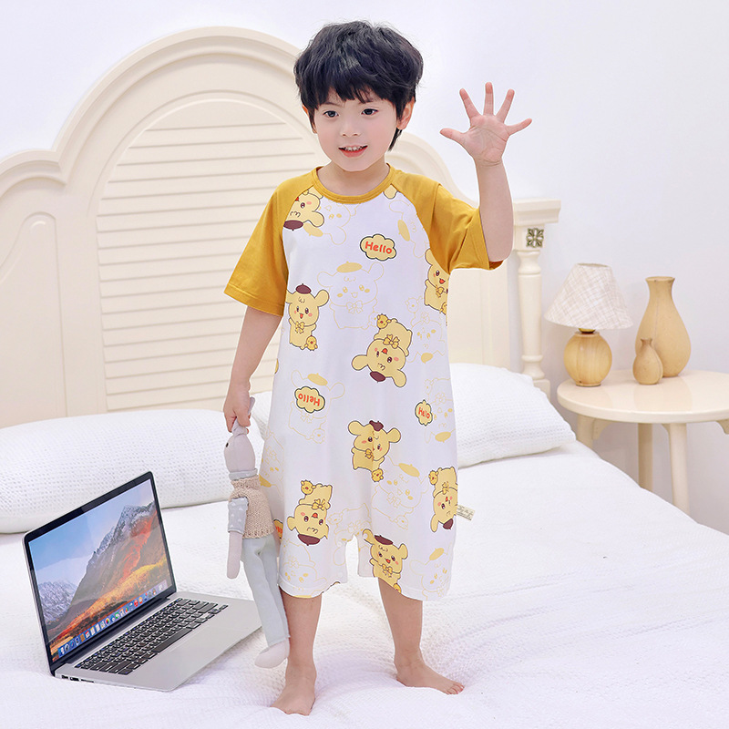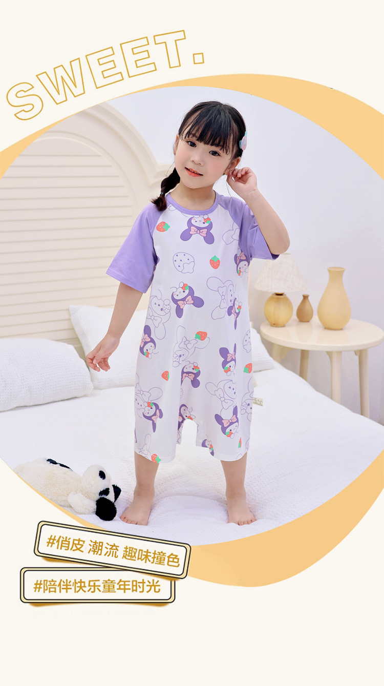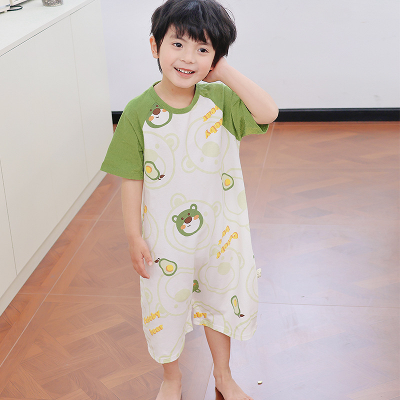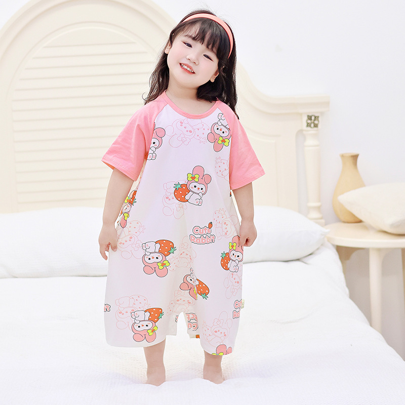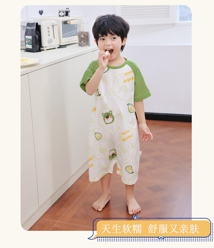 아기의 반팔 잠옷 여름 얇은 중간 크기의 어린이 순면 안티 킥 벨리 보호 홈 옷 머리카락을위한 만화 슬리핑 백