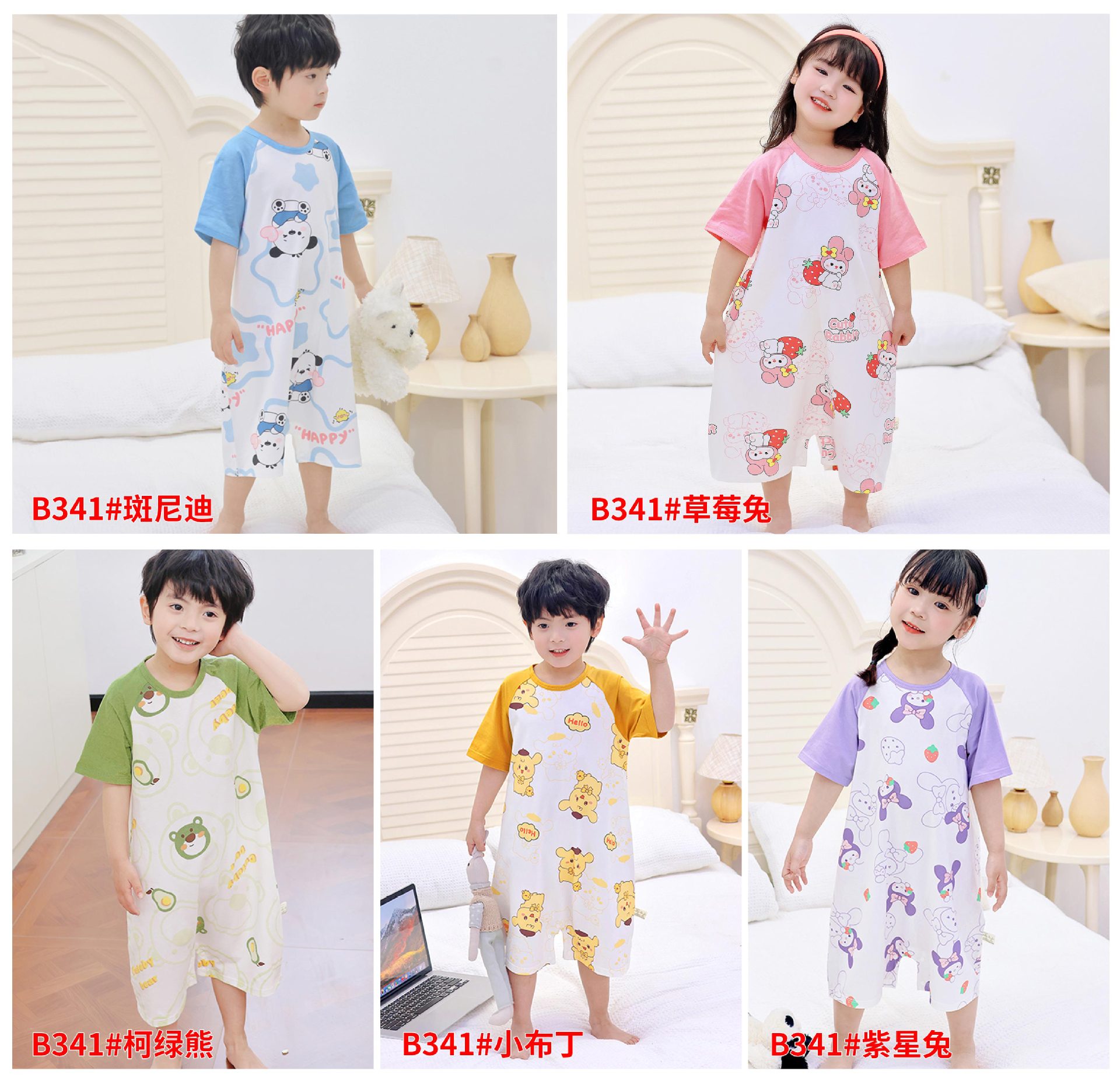 아기의 반팔 잠옷 여름 얇은 중간 크기의 어린이 순면 안티 킥 벨리 보호 홈 옷 머리카락을위한 만화 슬리핑 백스토어 가기