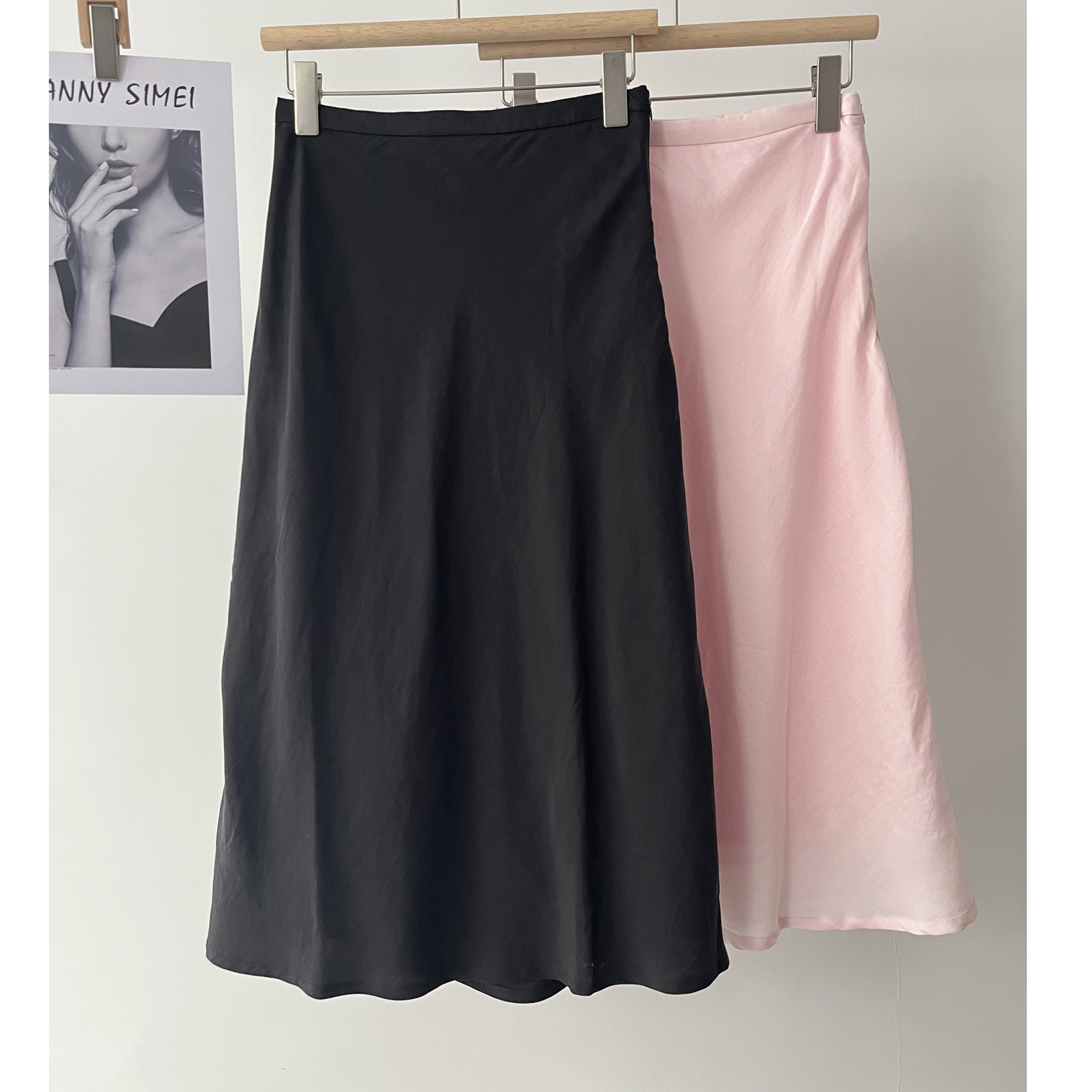 재고 CS 여성용 슬림 핏 라이트 핑크 리넨 블렌드 미디 스트레이트 스커트 1281691001스토어 가기
