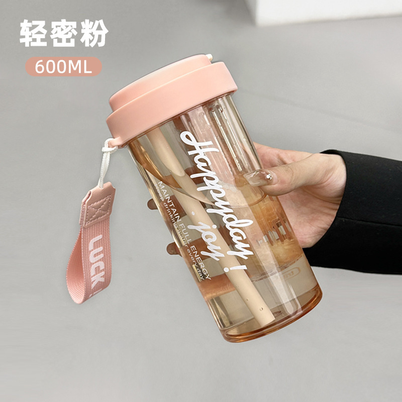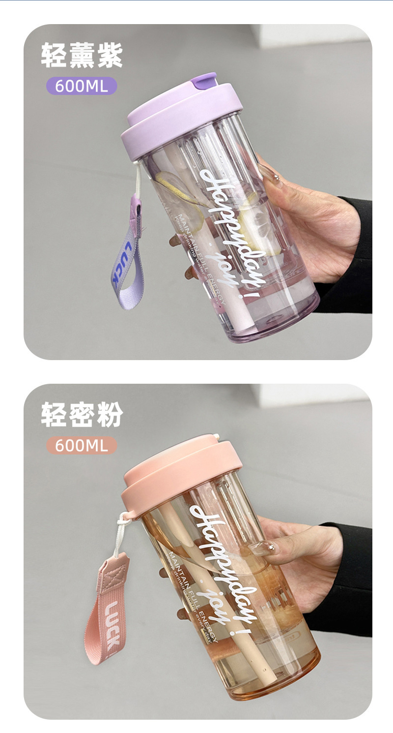 간단한 높은 가치 흡입 튜브 컵 고온 저항 물 컵 대용량 차 플라스틱 컵 소년과 소녀를위한 야외 휴대용 손잡이