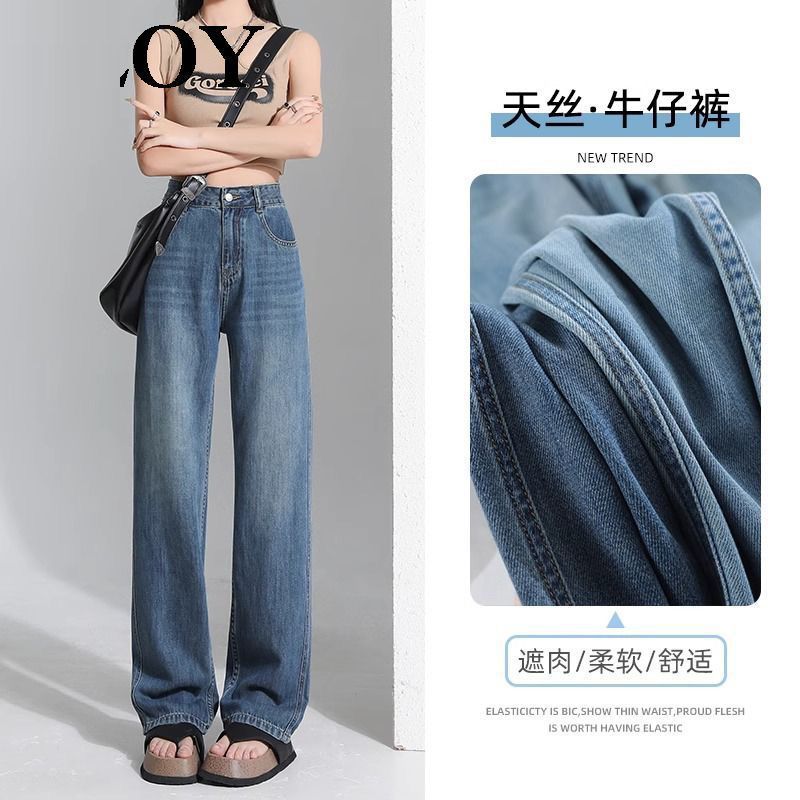 하이 퀄리티 청바지 여성 2025 년 여름 텐셀 높은 허리 슬리밍 느슨한 캐주얼 좁은 판 스트레이트 텐셀 바지스토어 가기