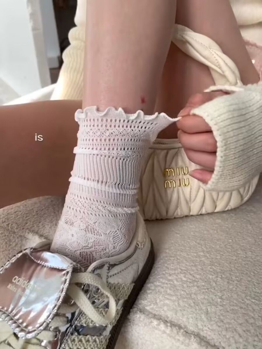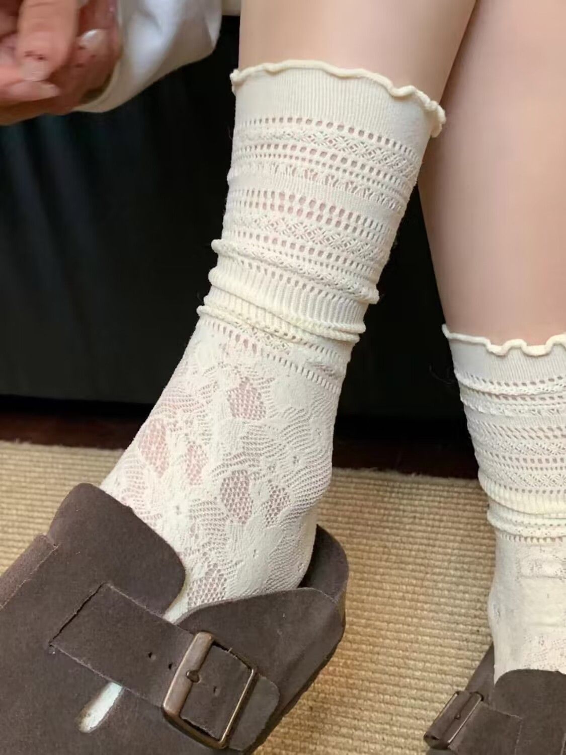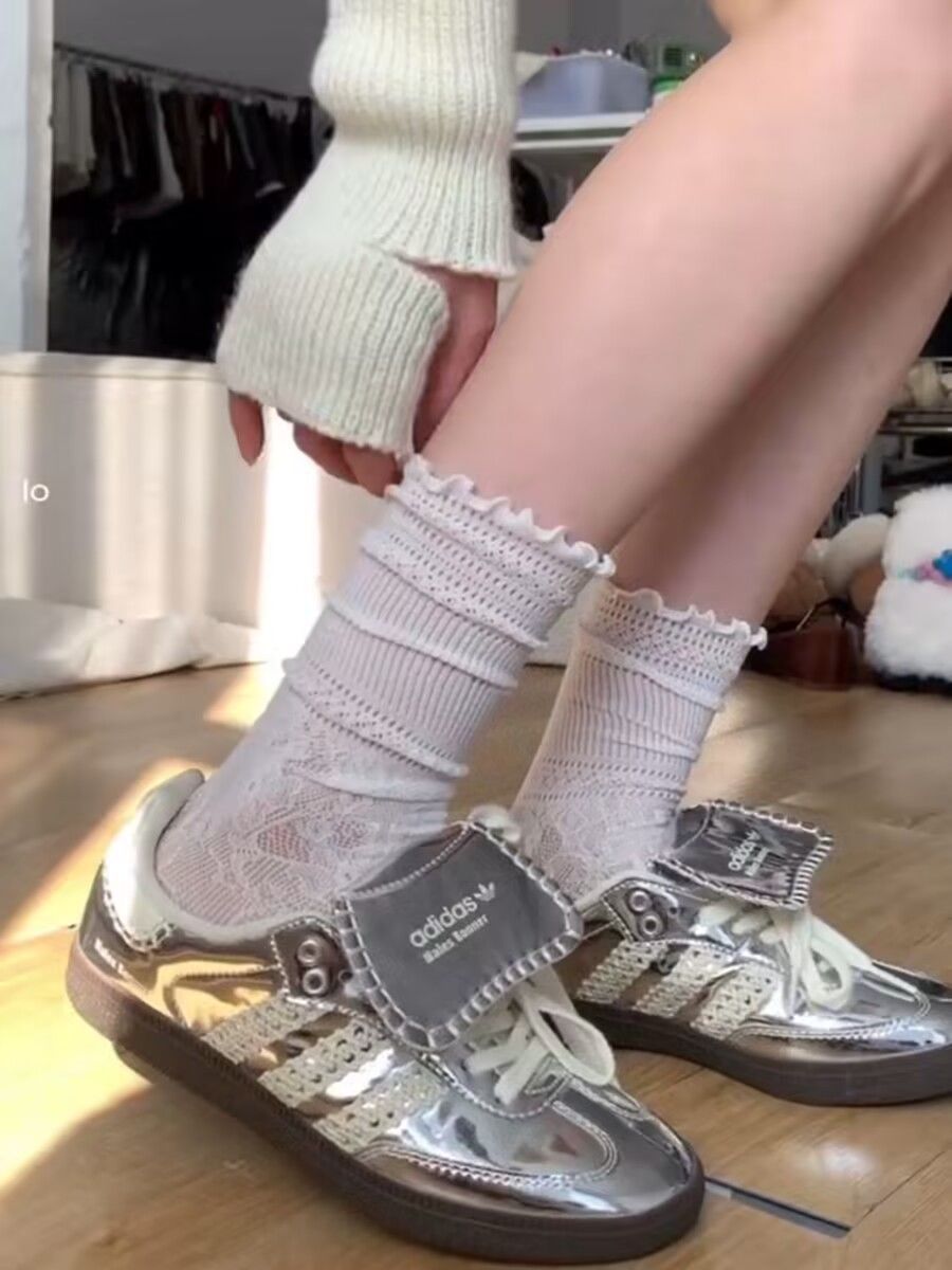 화이트 힙 올 매치 레이스 스타킹 미드 튜브 레이스 할로우 화이트 JK 양말 여성의 봄과 여름 얇은 가죽 신발스토어 가기