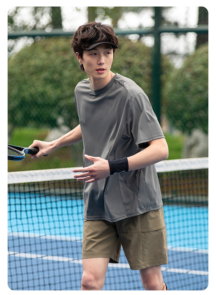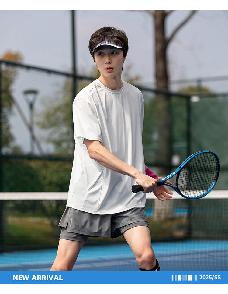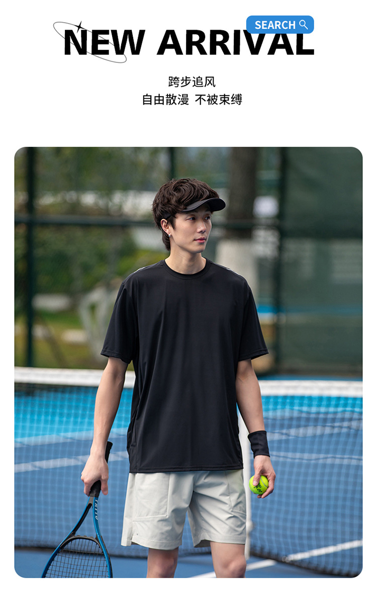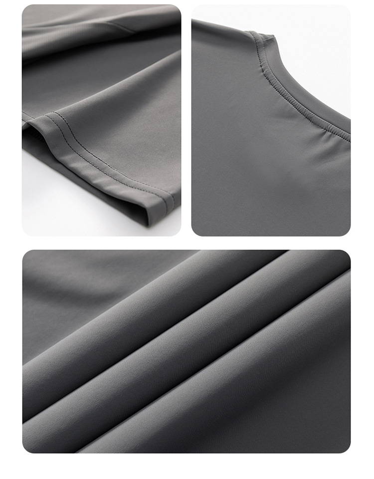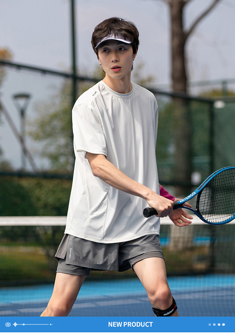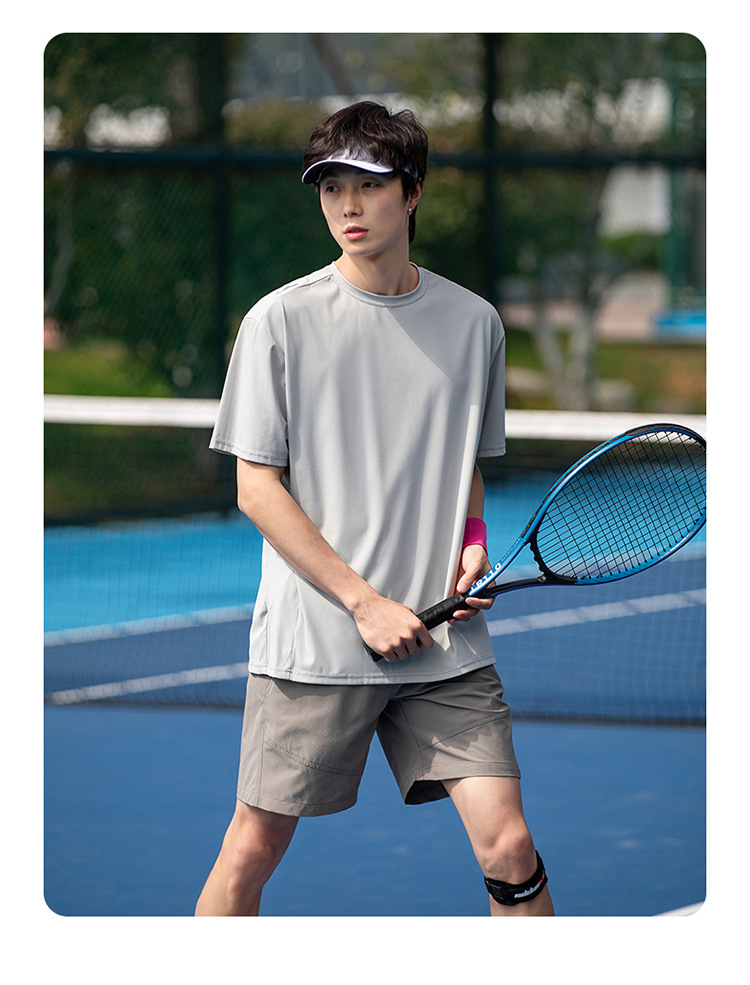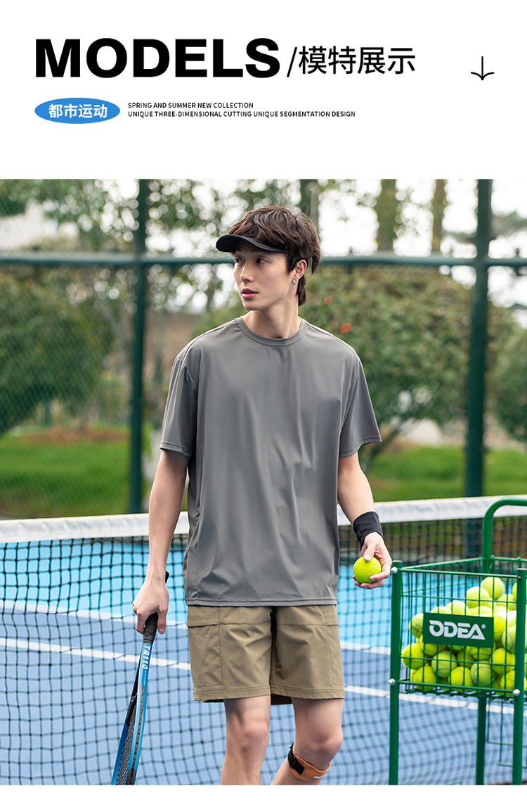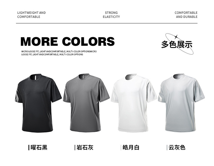 빠른 건조, 통기성 및 경량 스포츠 티셔츠 남성용 반팔 아이스 실크 부드럽고 통기성이 뛰어난 반팔 피트니스 러닝 피트니스 티셔츠