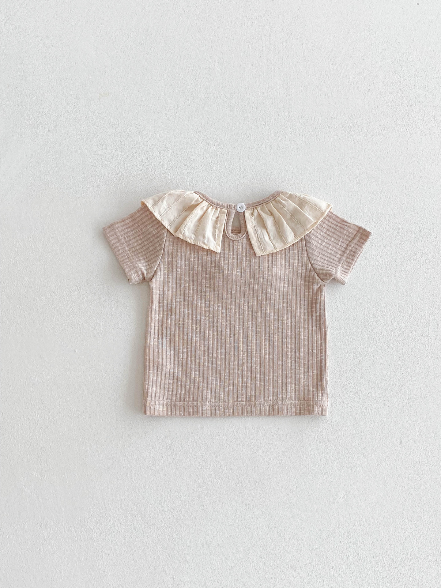 여자 한국 티셔츠 2025 새로운 여름 어린이 레이스 칼라 짧은 소매 여름 아기 서양식 연꽃 잎 칼라 탑스토어 가기