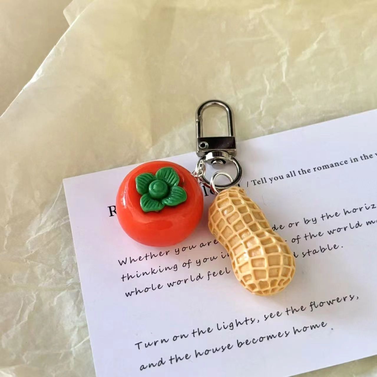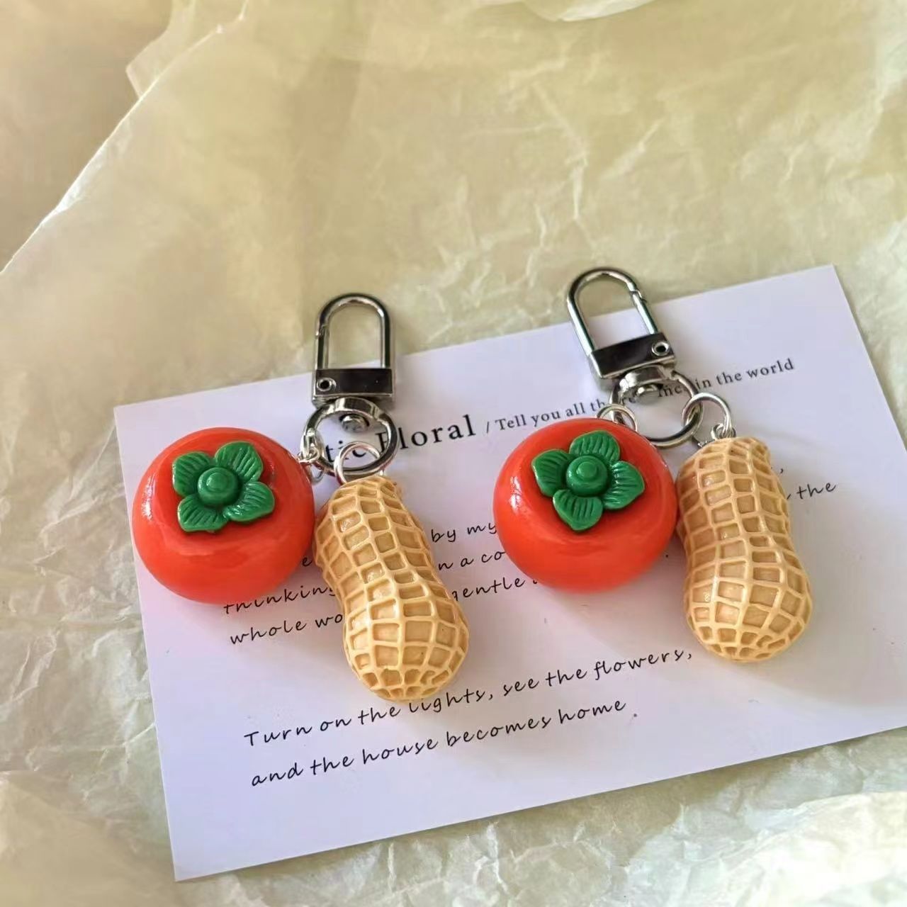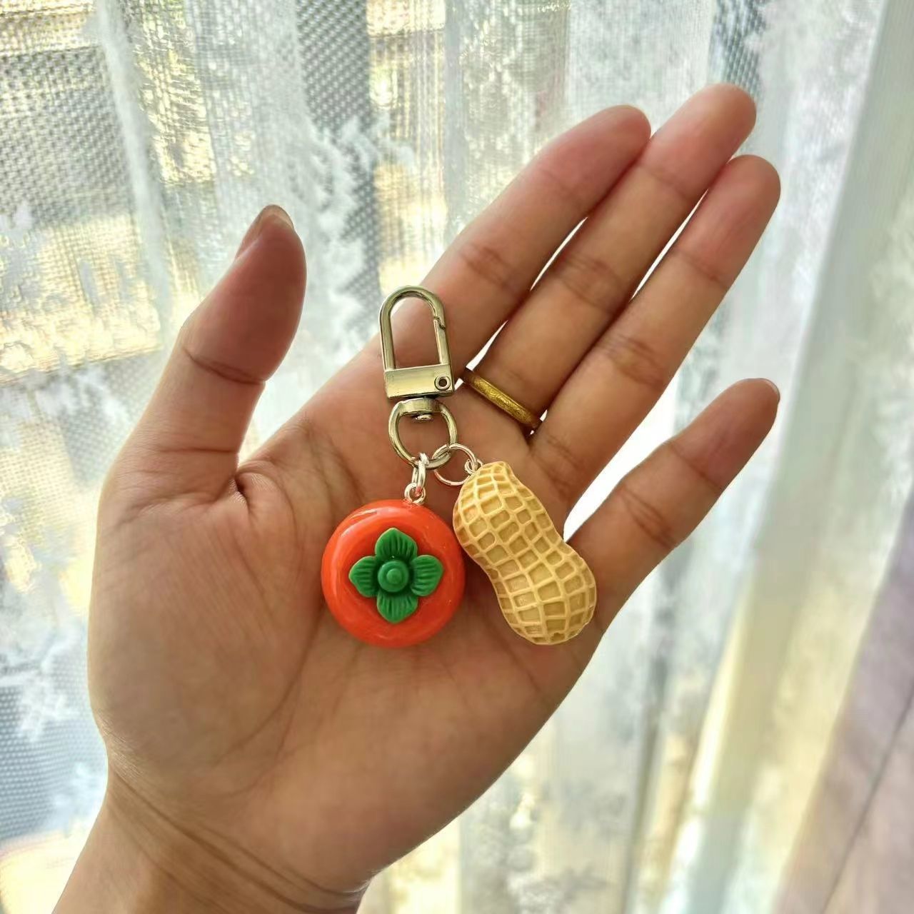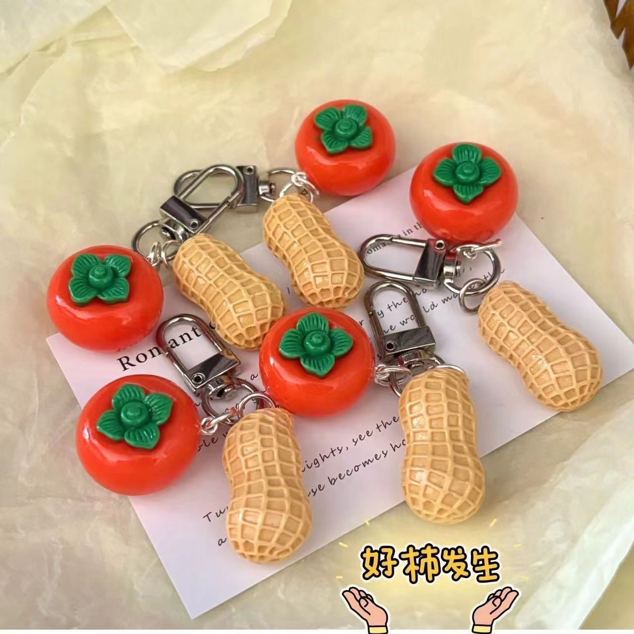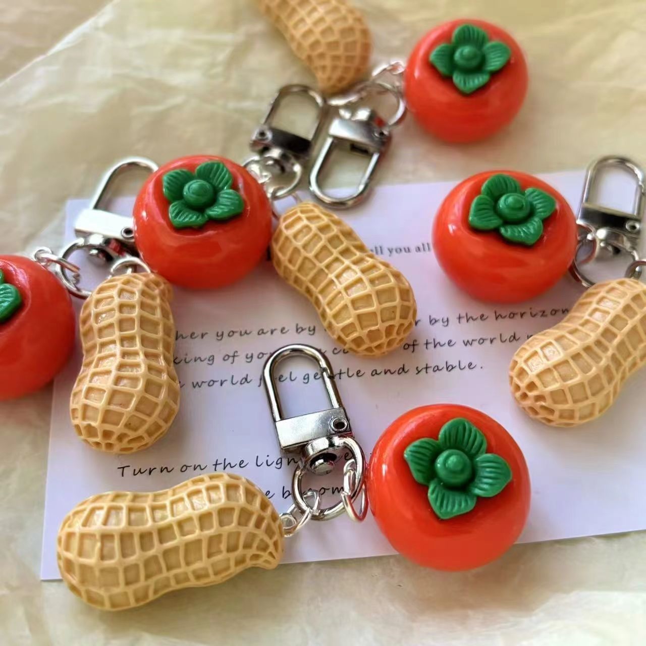 좋은 일이 일어납니다 Ruyi 감 시뮬레이션 귀여운 행운의 땅콩 열쇠 고리 성격 가방 펜던트 여자 친구 선물 보내기스토어 가기