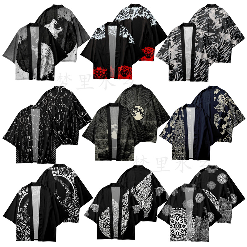 크로스보더 2025 새로운 하라주쿠 스타일 복고풍 기모노 3D 프린트 패턴 일본식 망토 재킷 여성용 잠옷 카디건스토어 가기