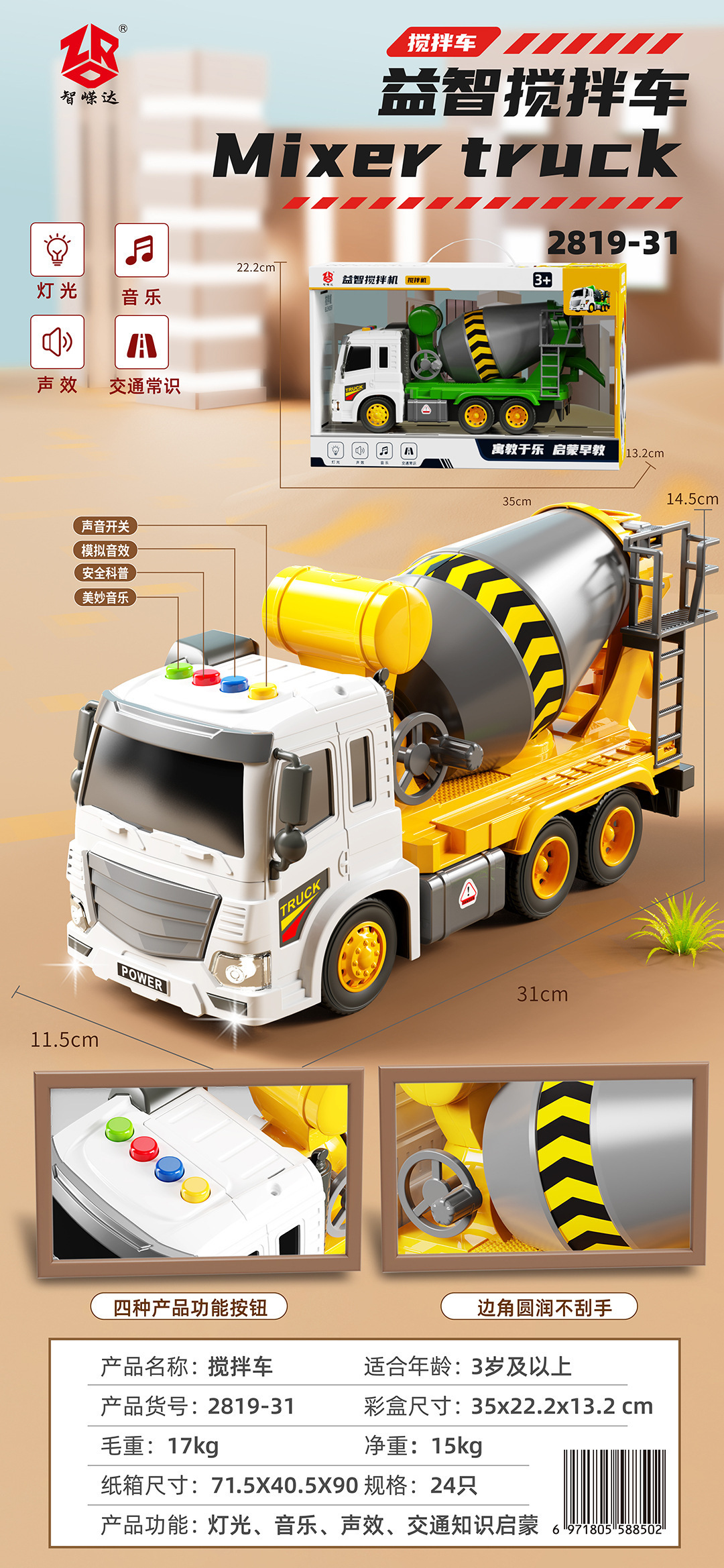 • 2819-31 조기교육 교육용 소리와 빛 믹서트럭