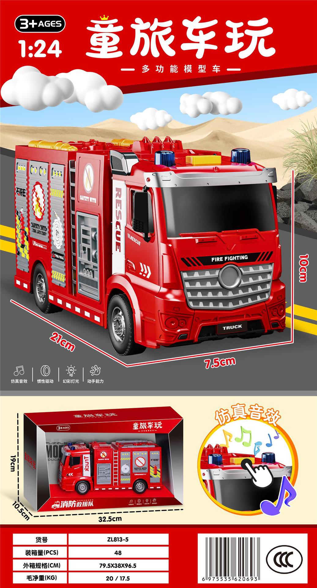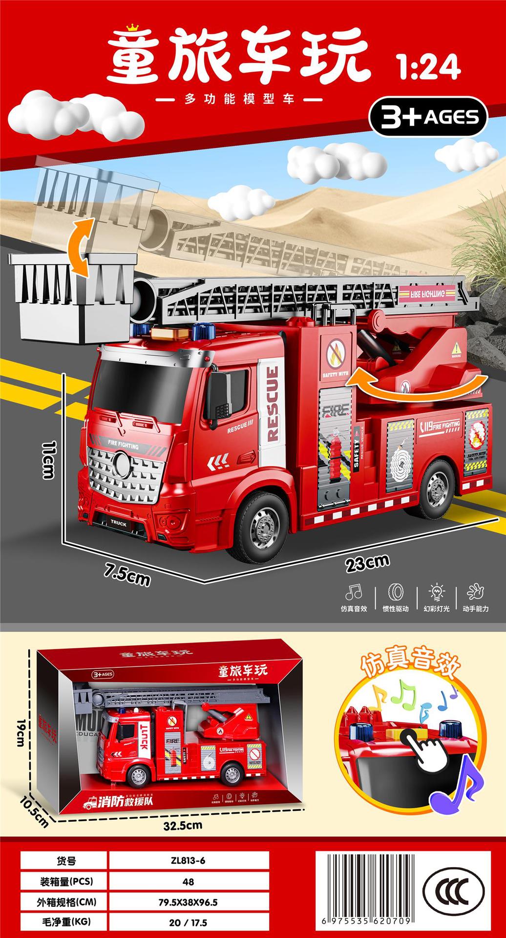 • ZL813-6 사운드 라이트 뮤직 관성 소방 사다리 트럭