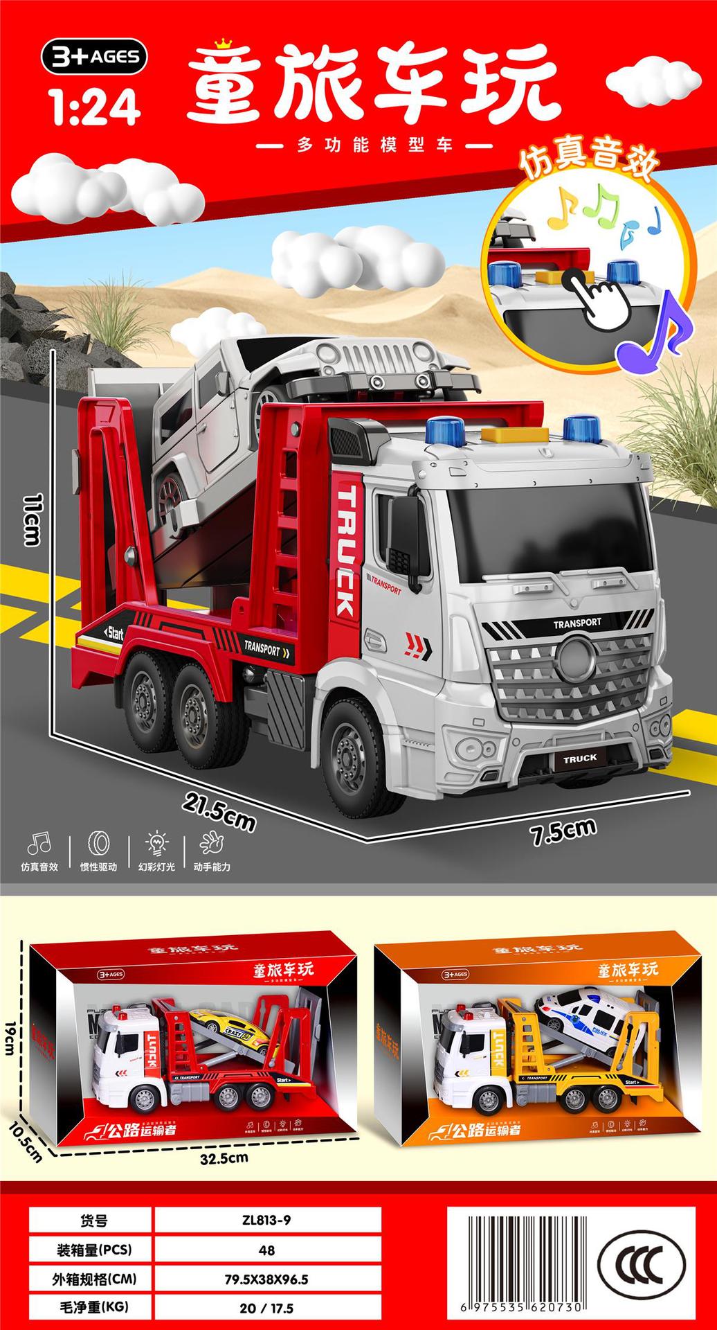 • ZL813-9 사운드, 라이트, 뮤직 관성 이층 수송차량(2색혼합)