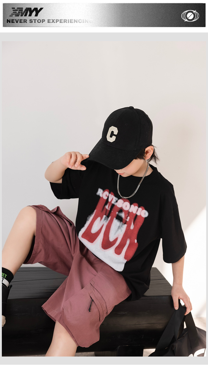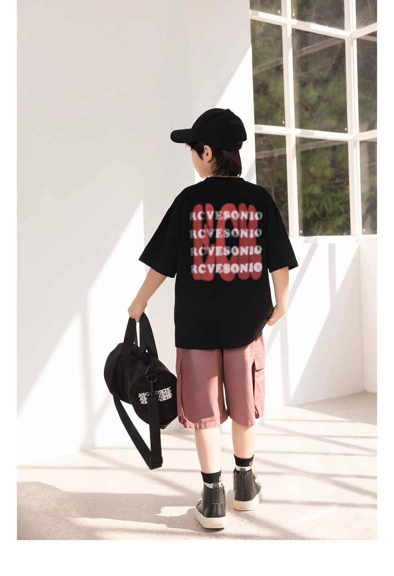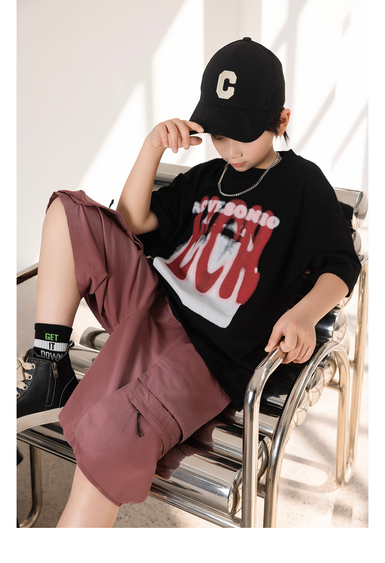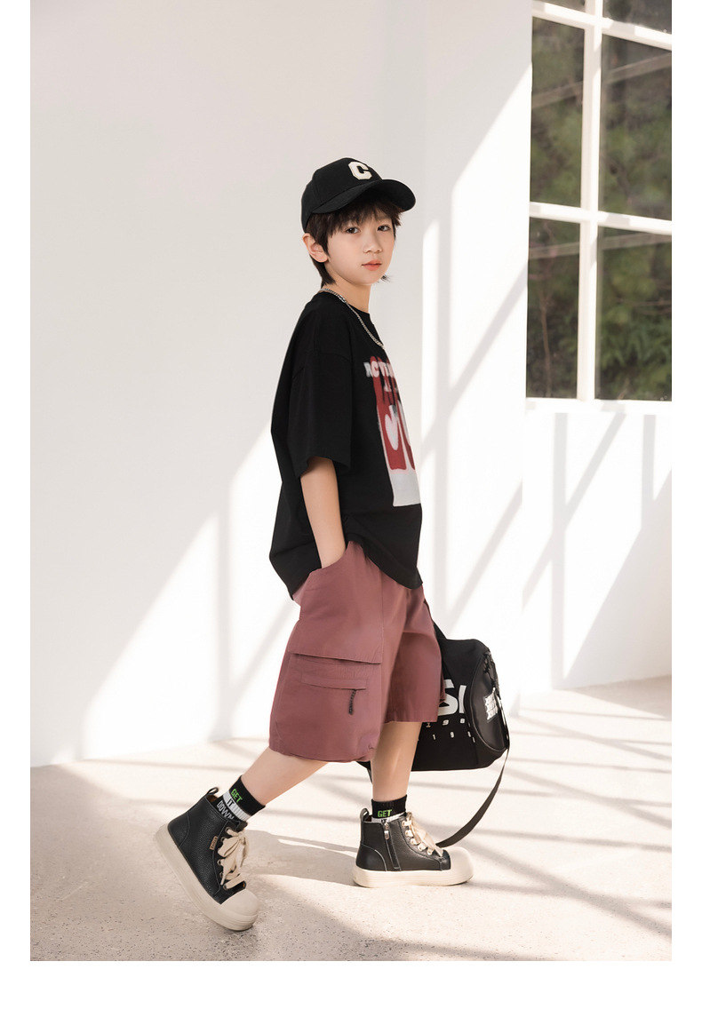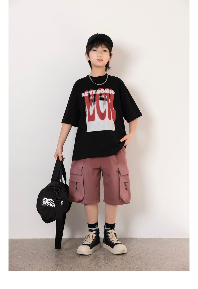 熊猫圆圆2025秋季新款重磅工装风男童卫裤儿童水洗针织裤子运动裤