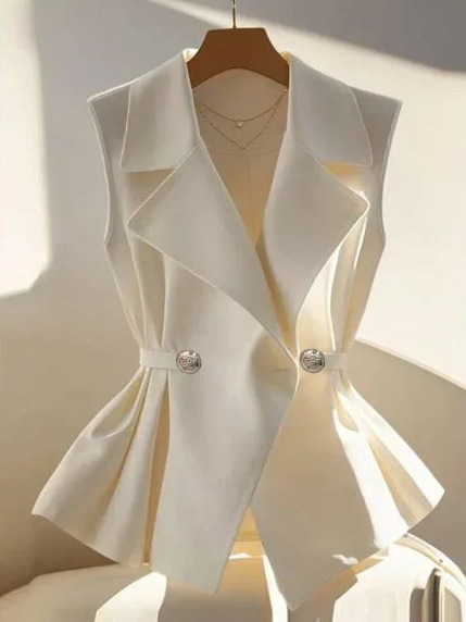 2025 디자인 허리 슈트 조끼 여성 봄 얇은 전문 민소매 조끼 조끼 화이트스토어 가기