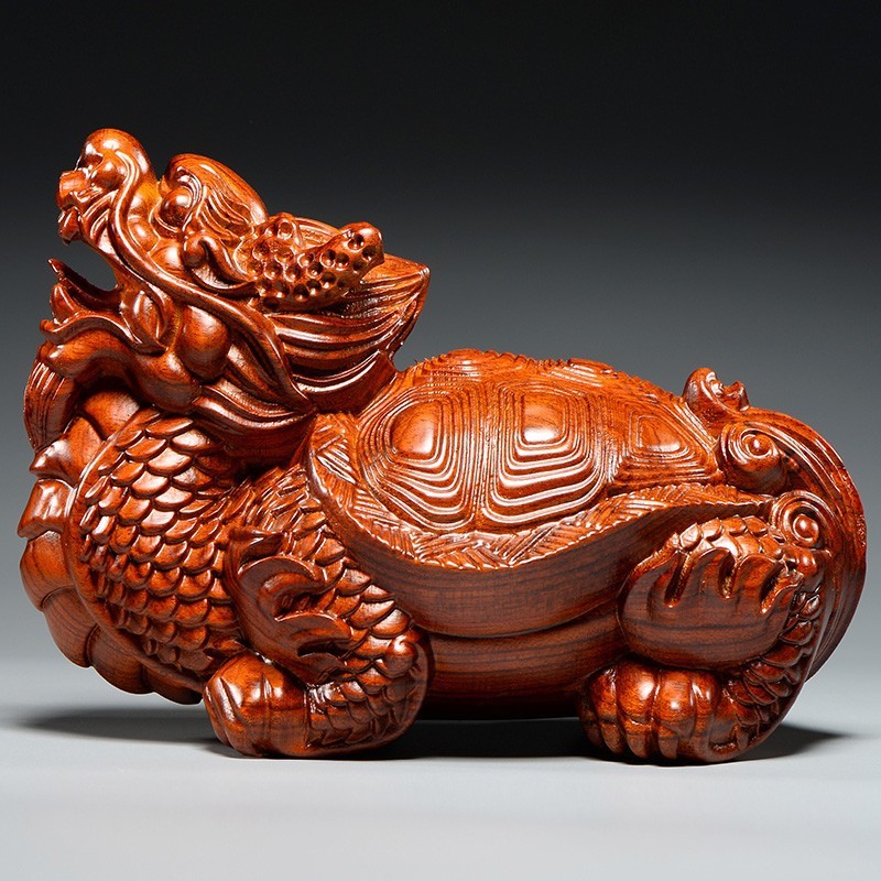 마룬 드래곤 거북이 나무 드래곤 거북이 현무암 조각 장식품 홈 코너 품위있는 풍수 마스코트 장식 공예품