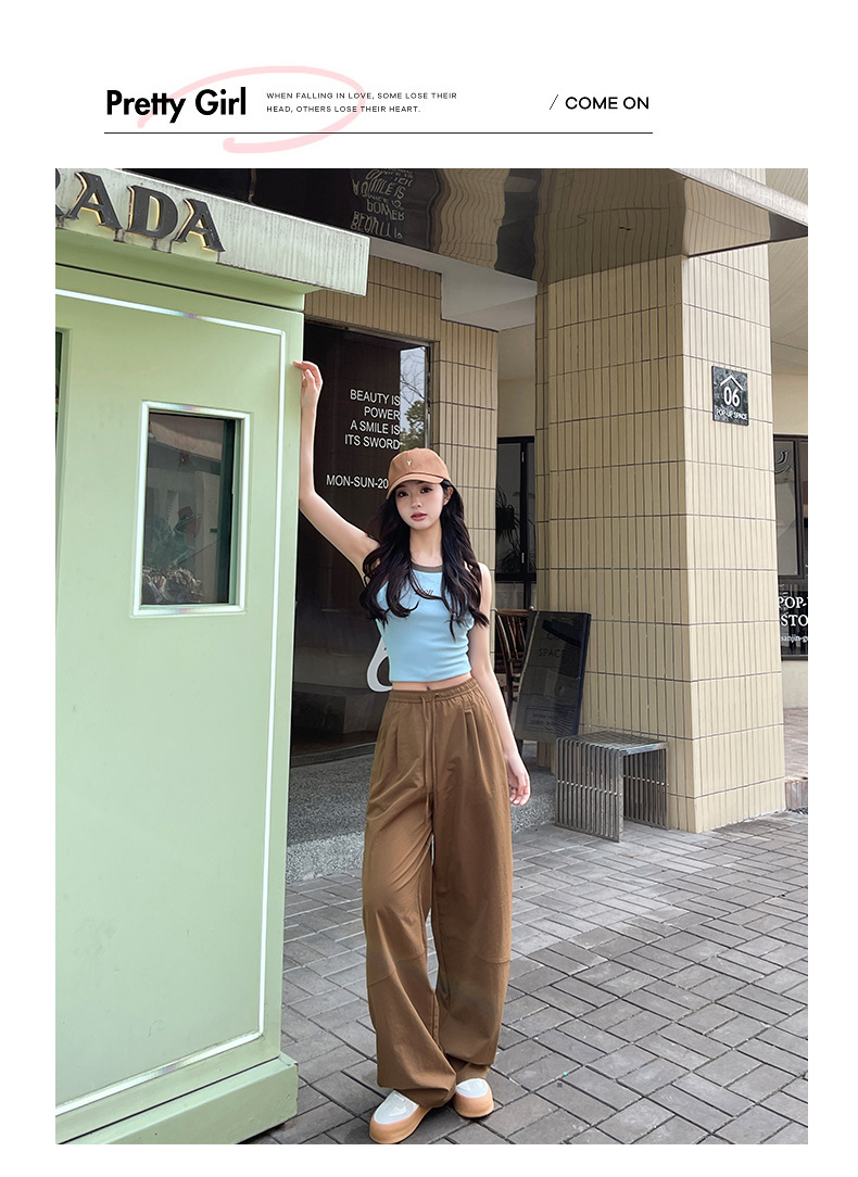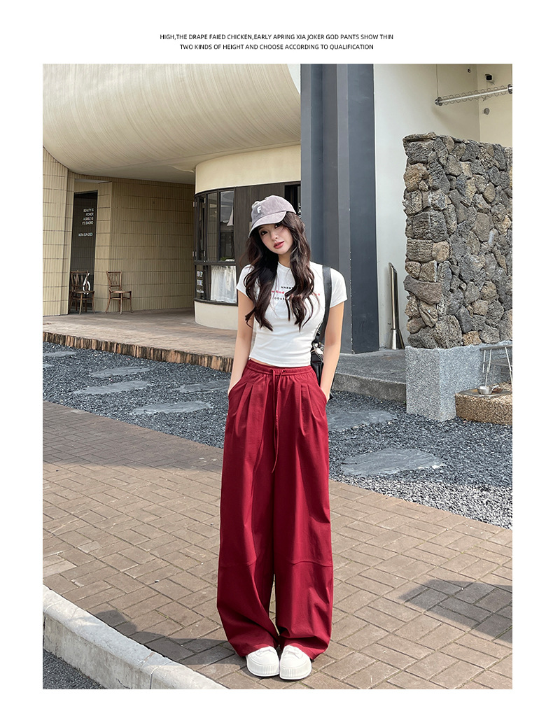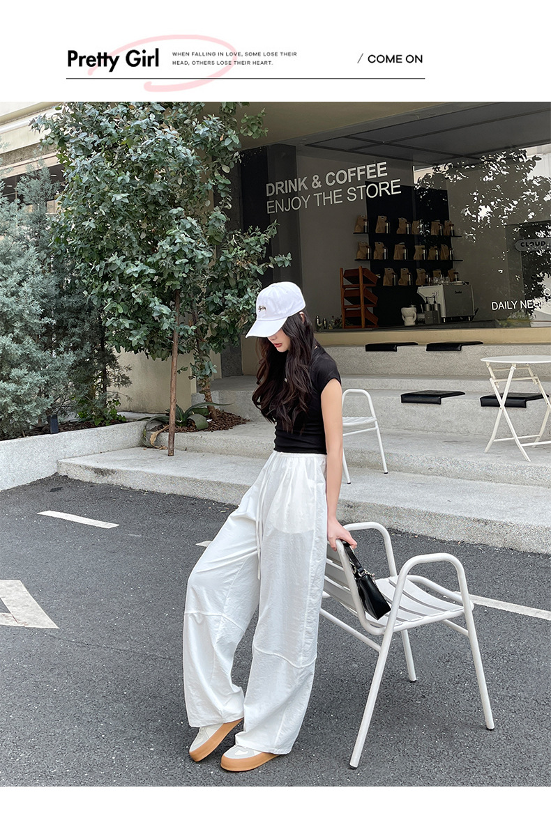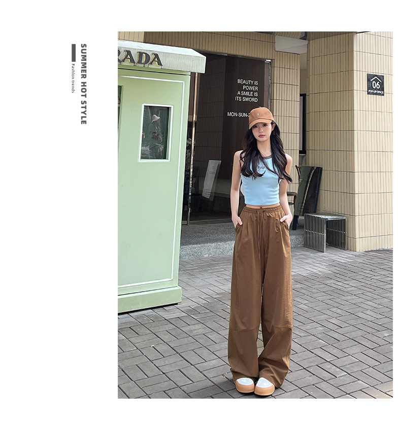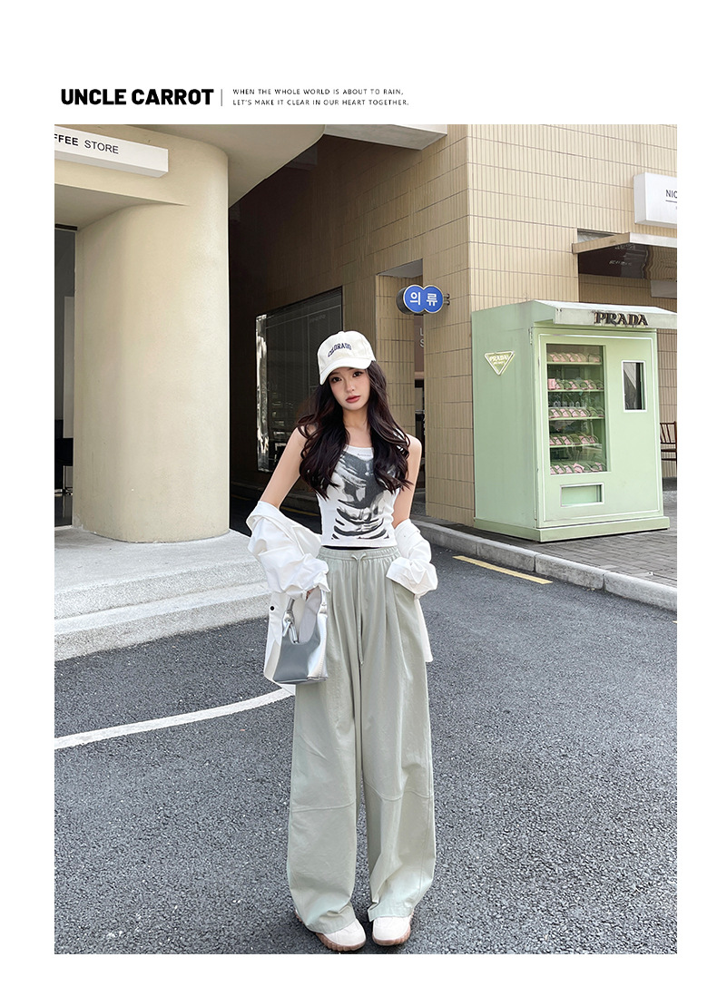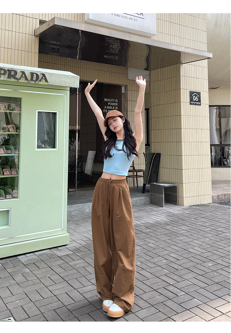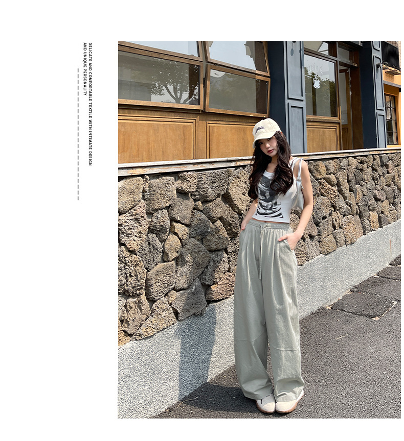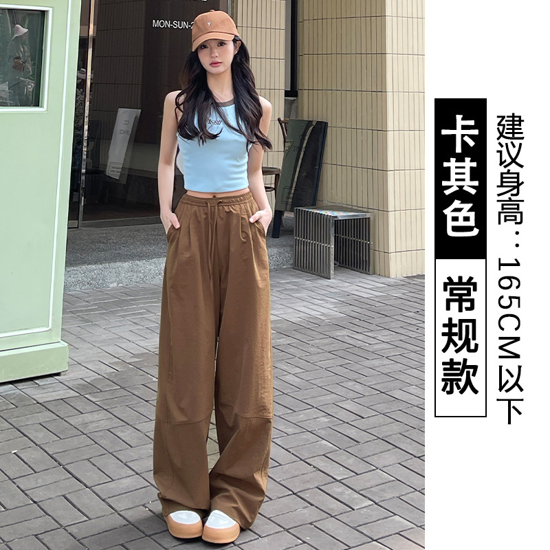 미국식 퀵 드라이 그레이 크록 바지 여자 2025 여름 얇은 하이 웨이스트 슬리밍 넓은 다리 작은 등반 스포츠 바지스토어 가기