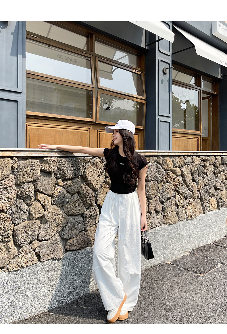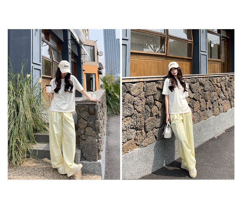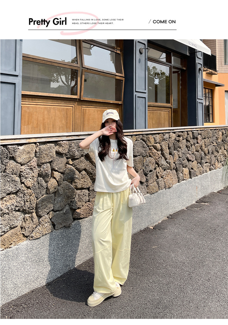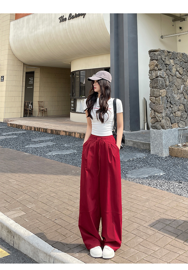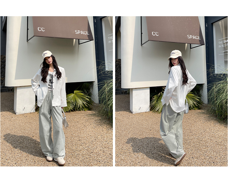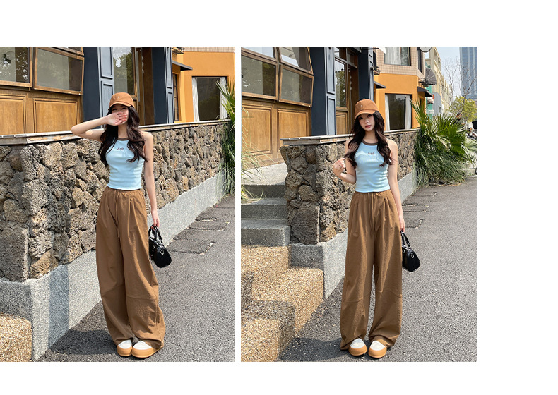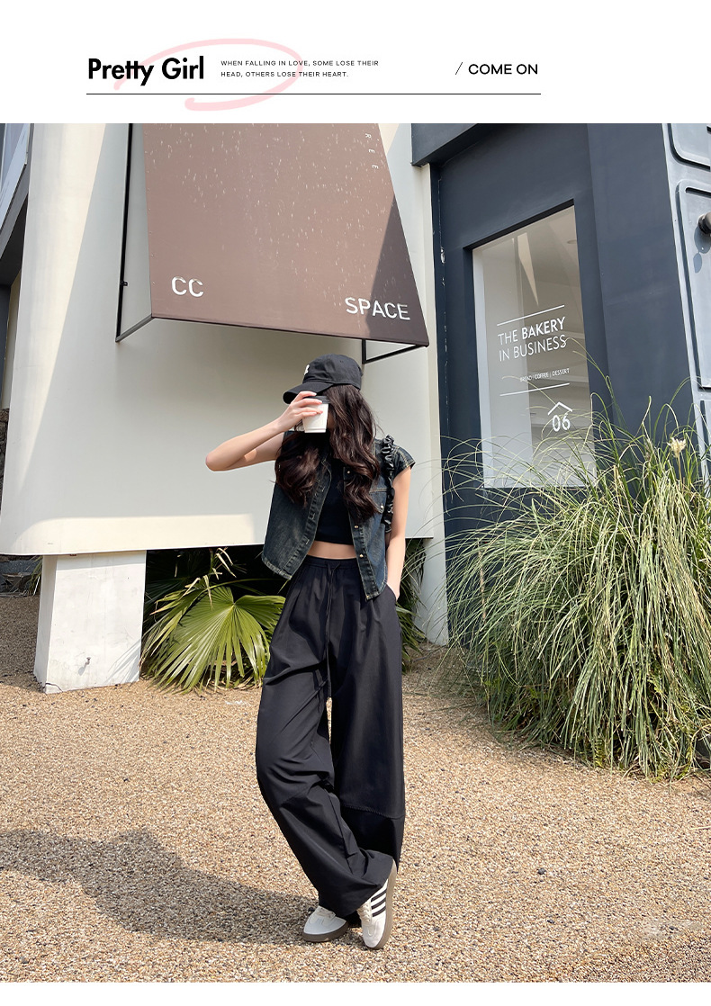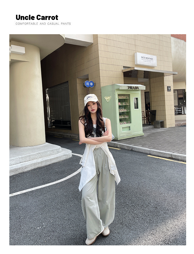 미국식 퀵 드라이 그레이 크록 바지 여자 2025 여름 얇은 하이 웨이스트 슬리밍 넓은 다리 작은 등반 스포츠 바지스토어 가기