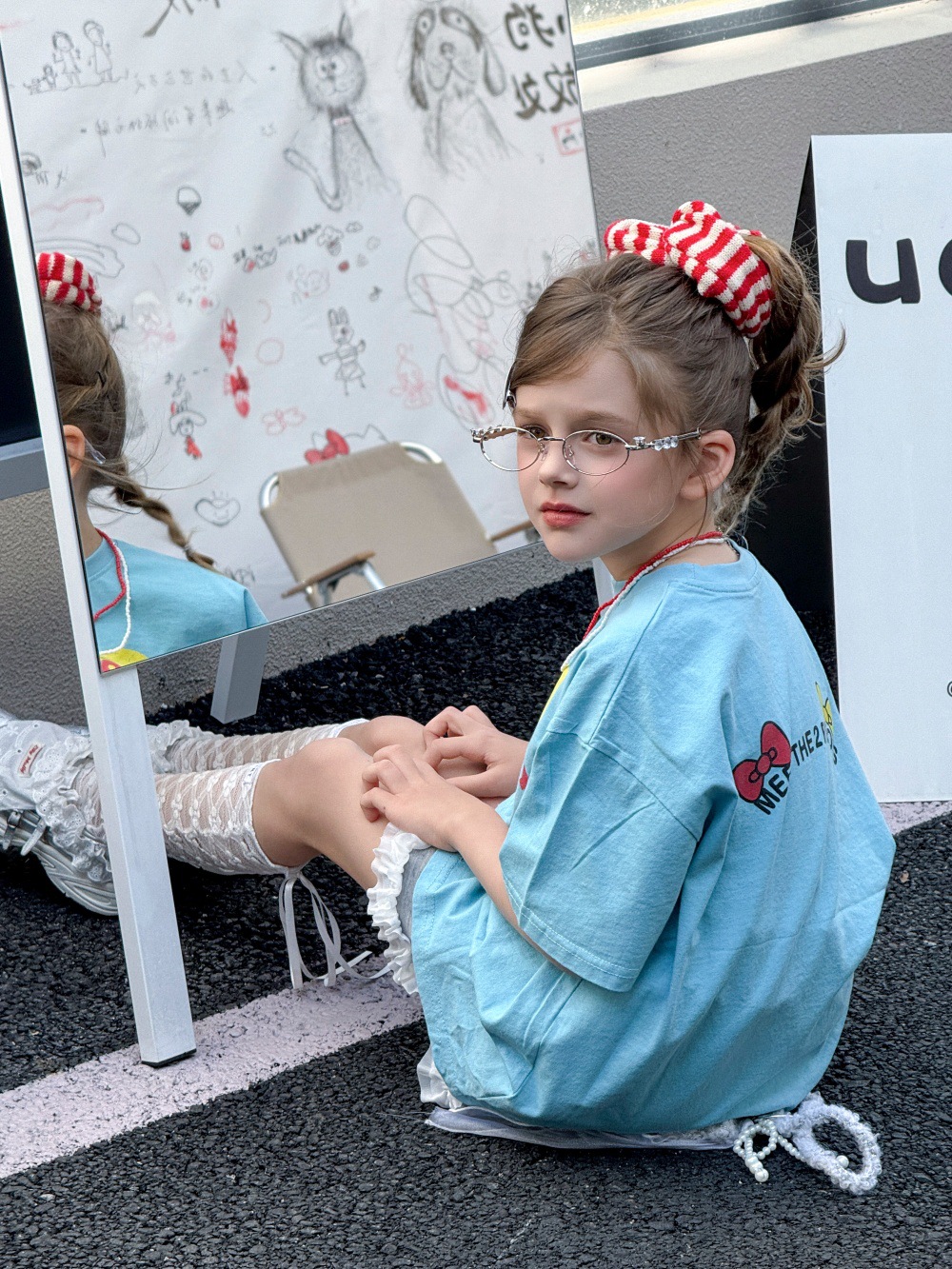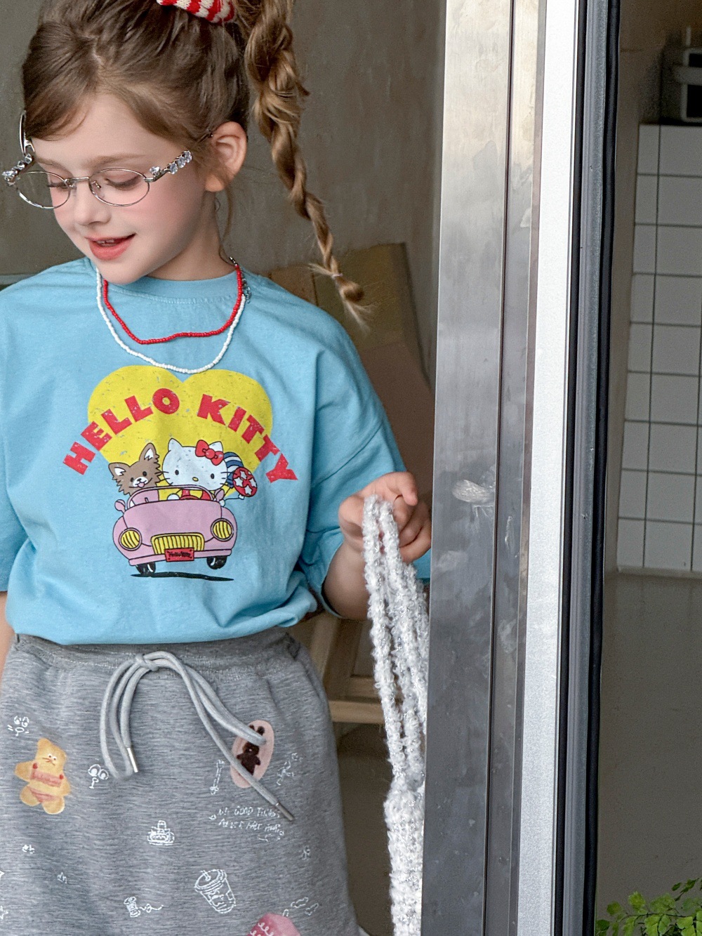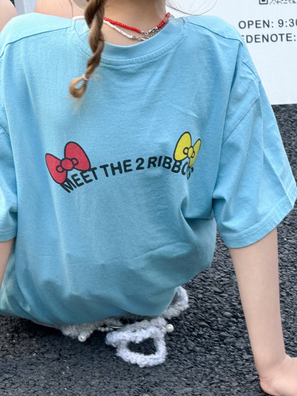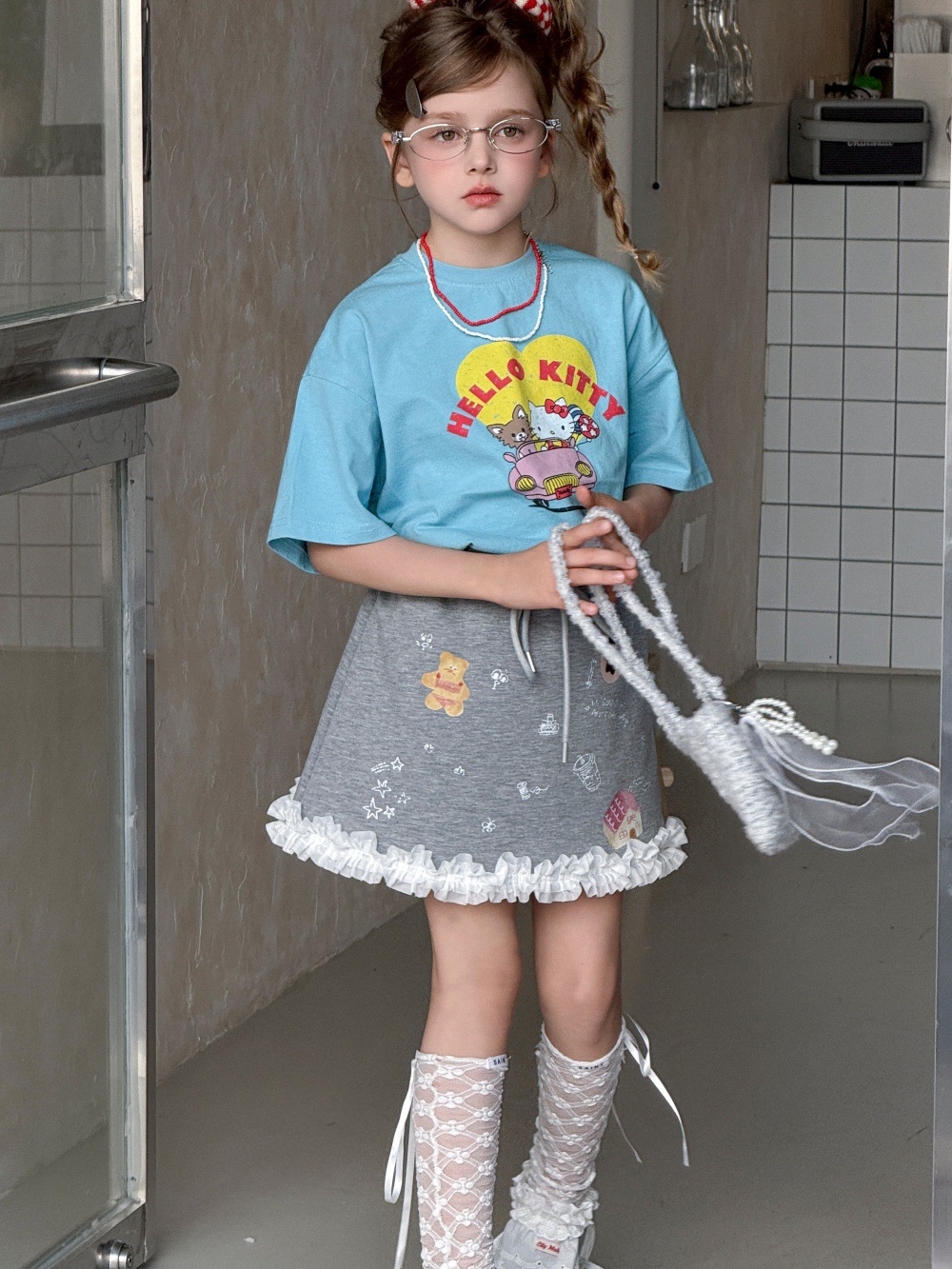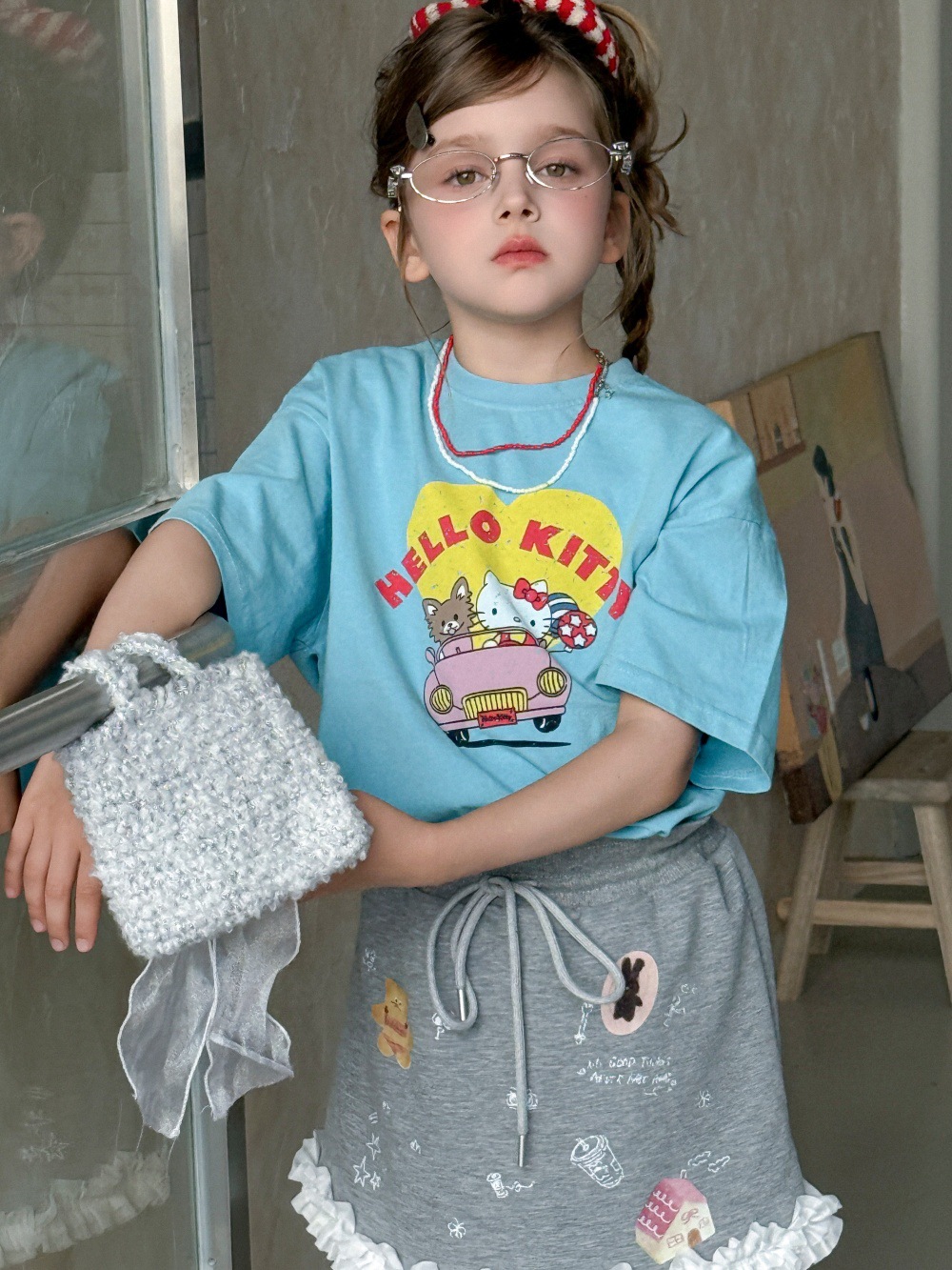 2025 여자 여름 라운드 넥 반팔 어린이 만화 프린트 티셔츠 바닥 셔츠 세련된 중형 및 대형 아동용 반팔 아동복스토어 가기