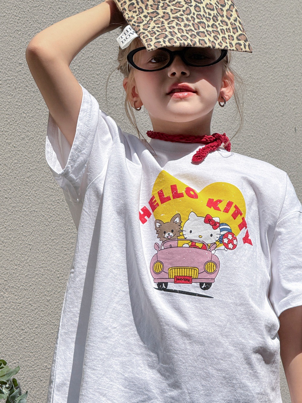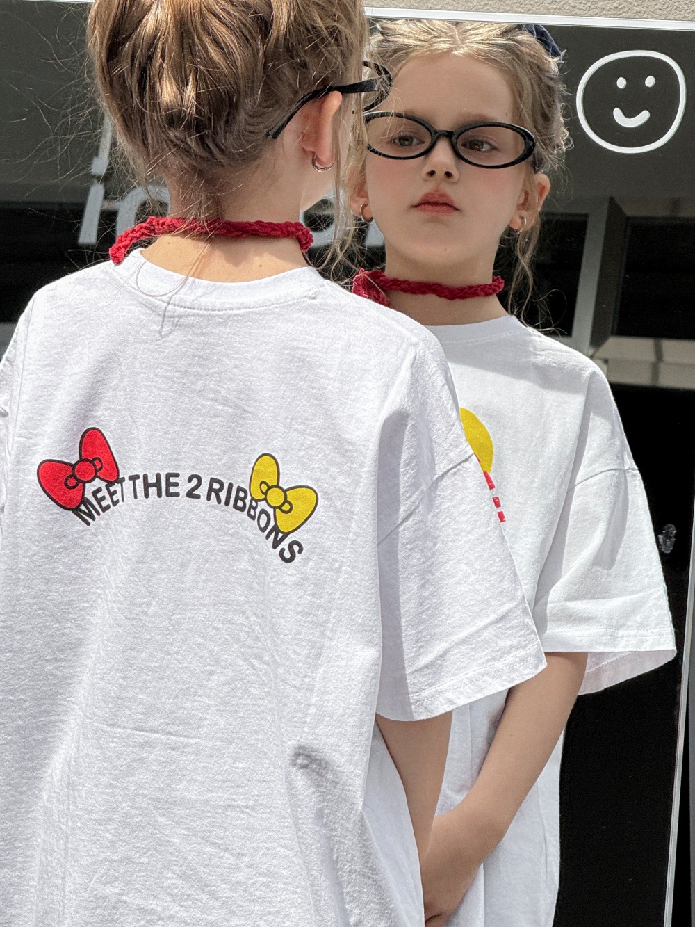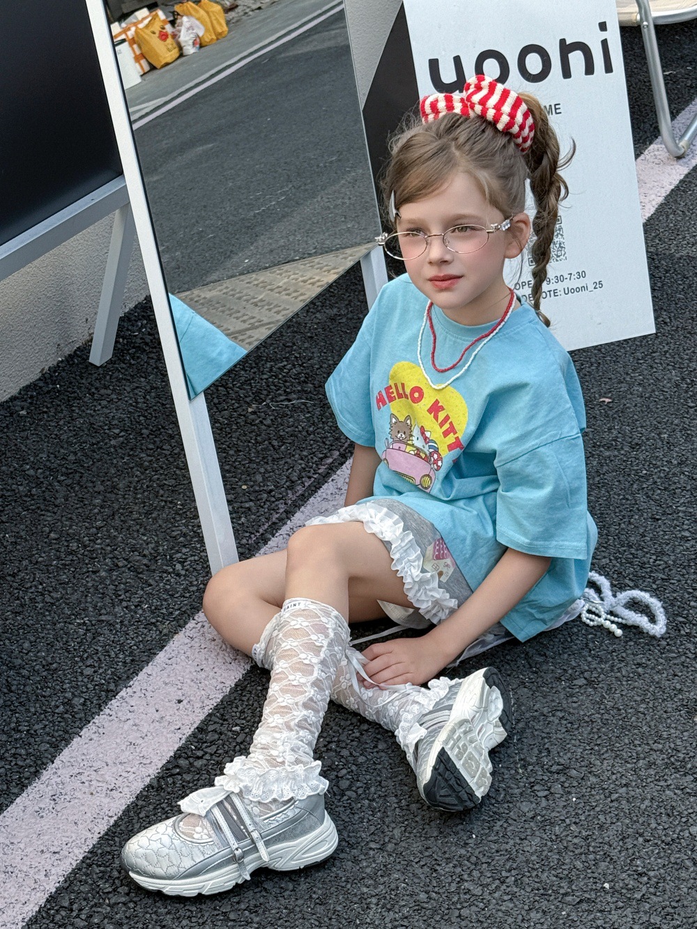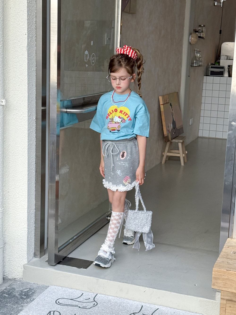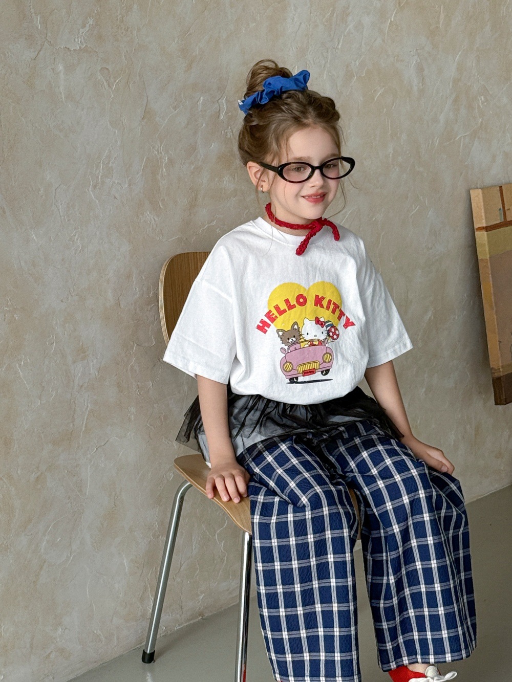 2025 여자 여름 라운드 넥 반팔 어린이 만화 프린트 티셔츠 바닥 셔츠 세련된 중형 및 대형 아동용 반팔 아동복스토어 가기