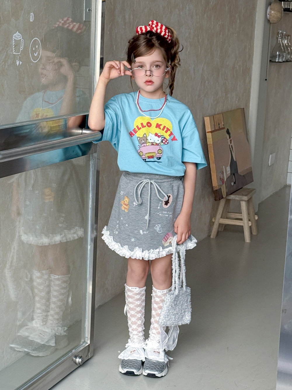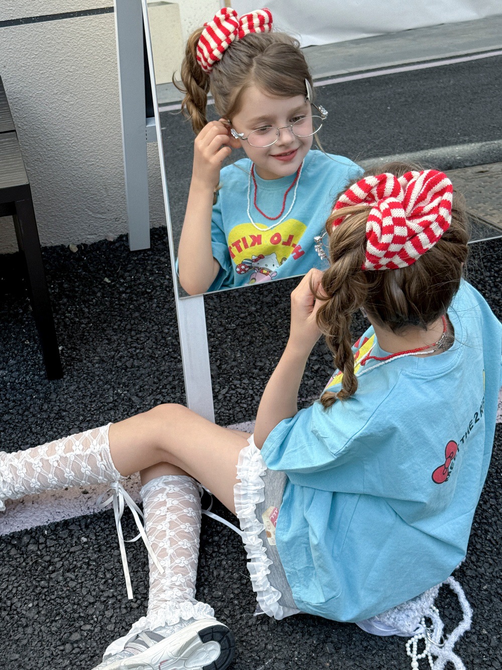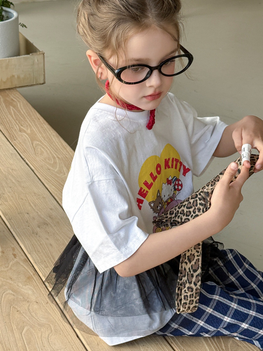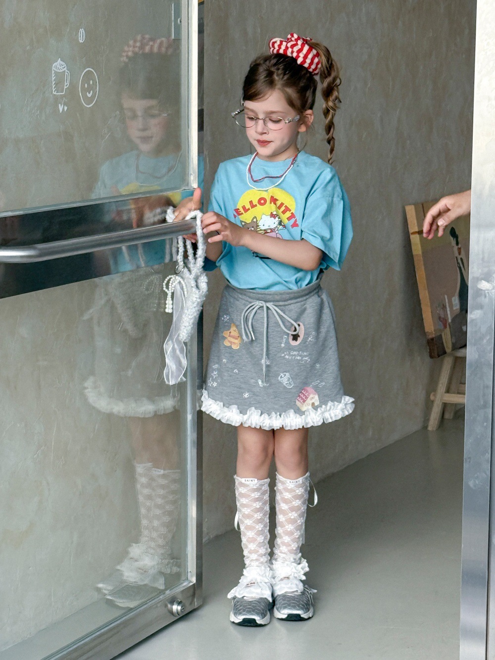 2025 여자 여름 라운드 넥 반팔 어린이 만화 프린트 티셔츠 바닥 셔츠 세련된 중형 및 대형 아동용 반팔 아동복스토어 가기