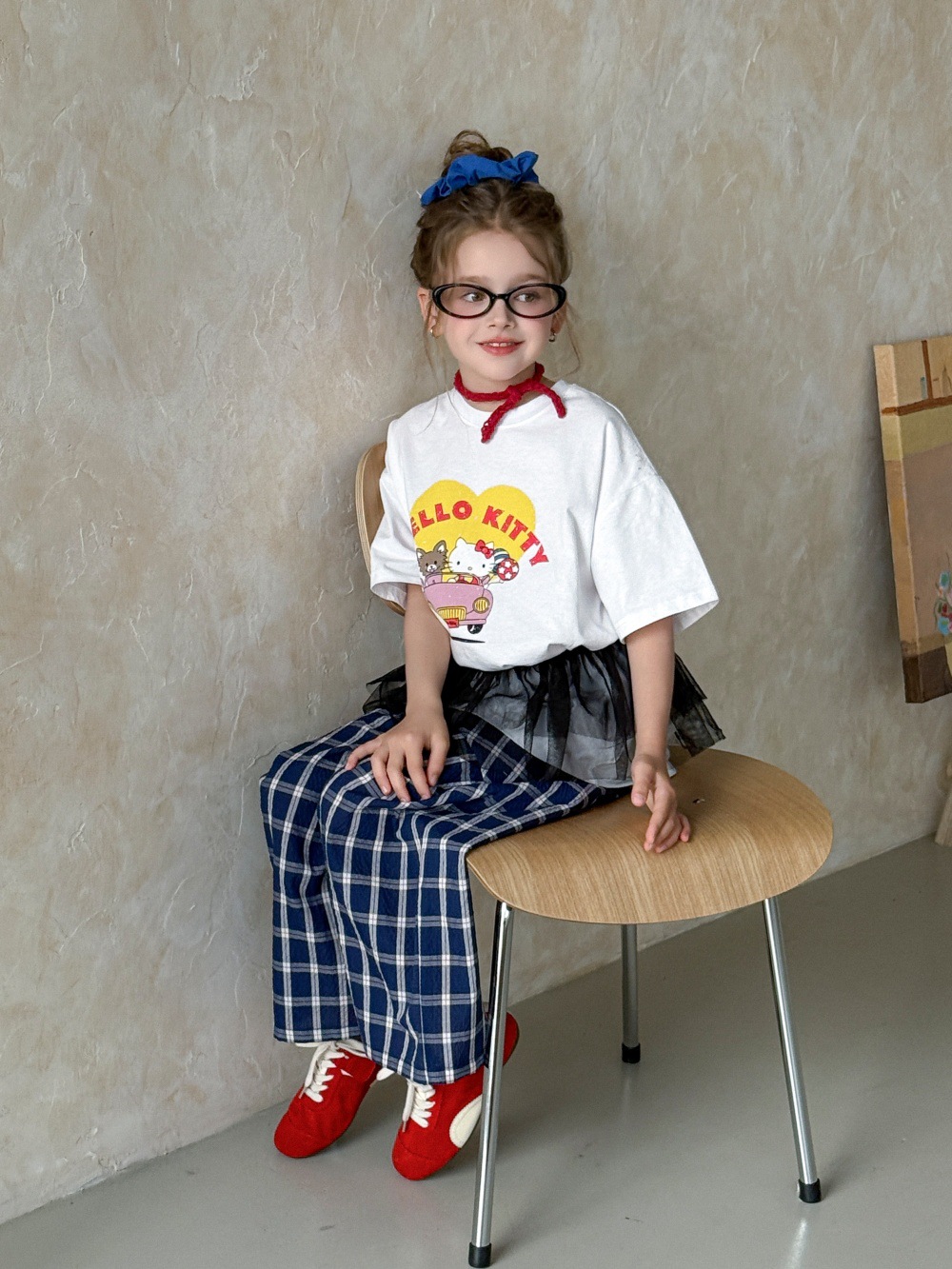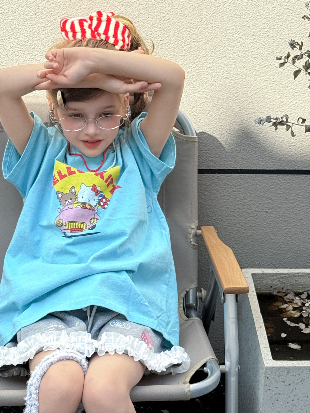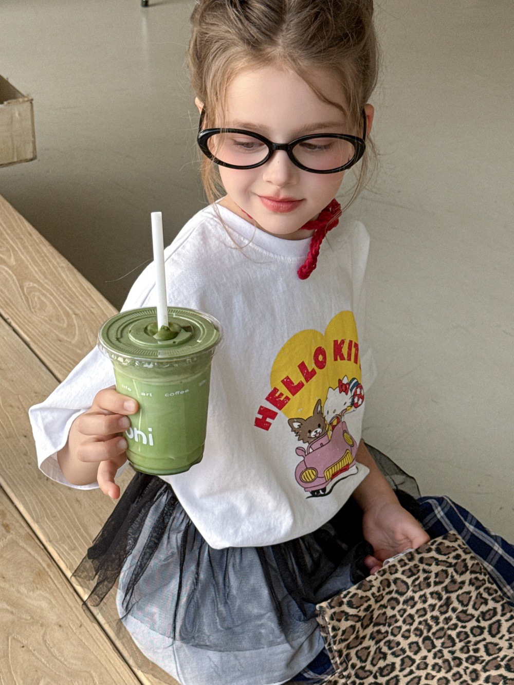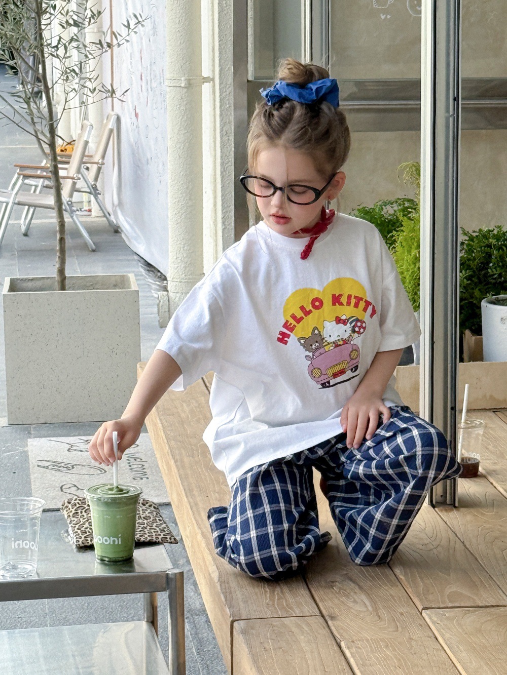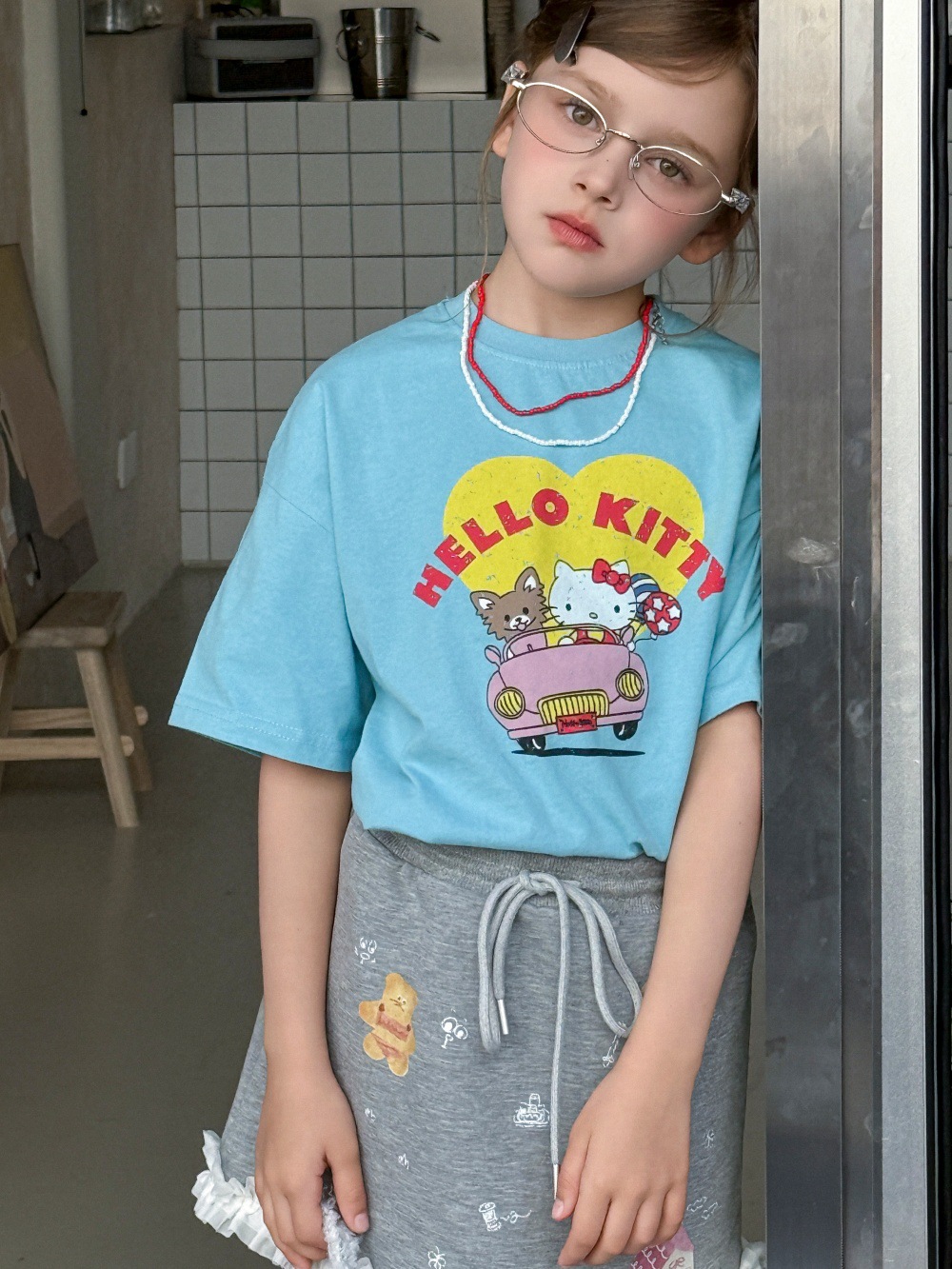 2025 여자 여름 라운드 넥 반팔 어린이 만화 프린트 티셔츠 바닥 셔츠 세련된 중형 및 대형 아동용 반팔 아동복스토어 가기