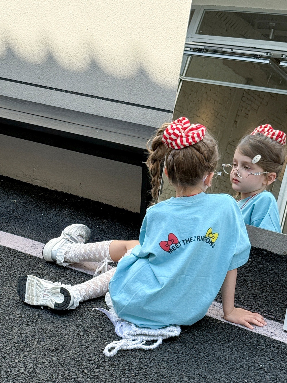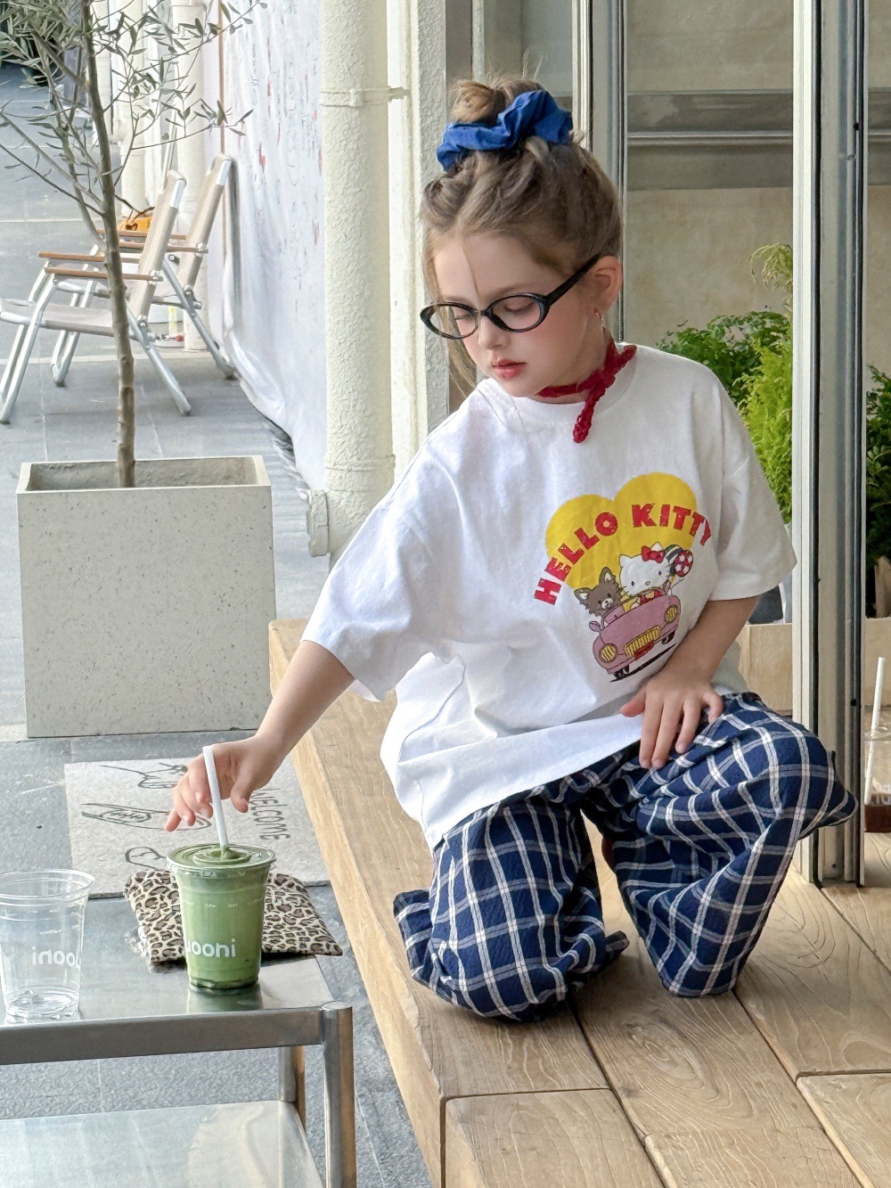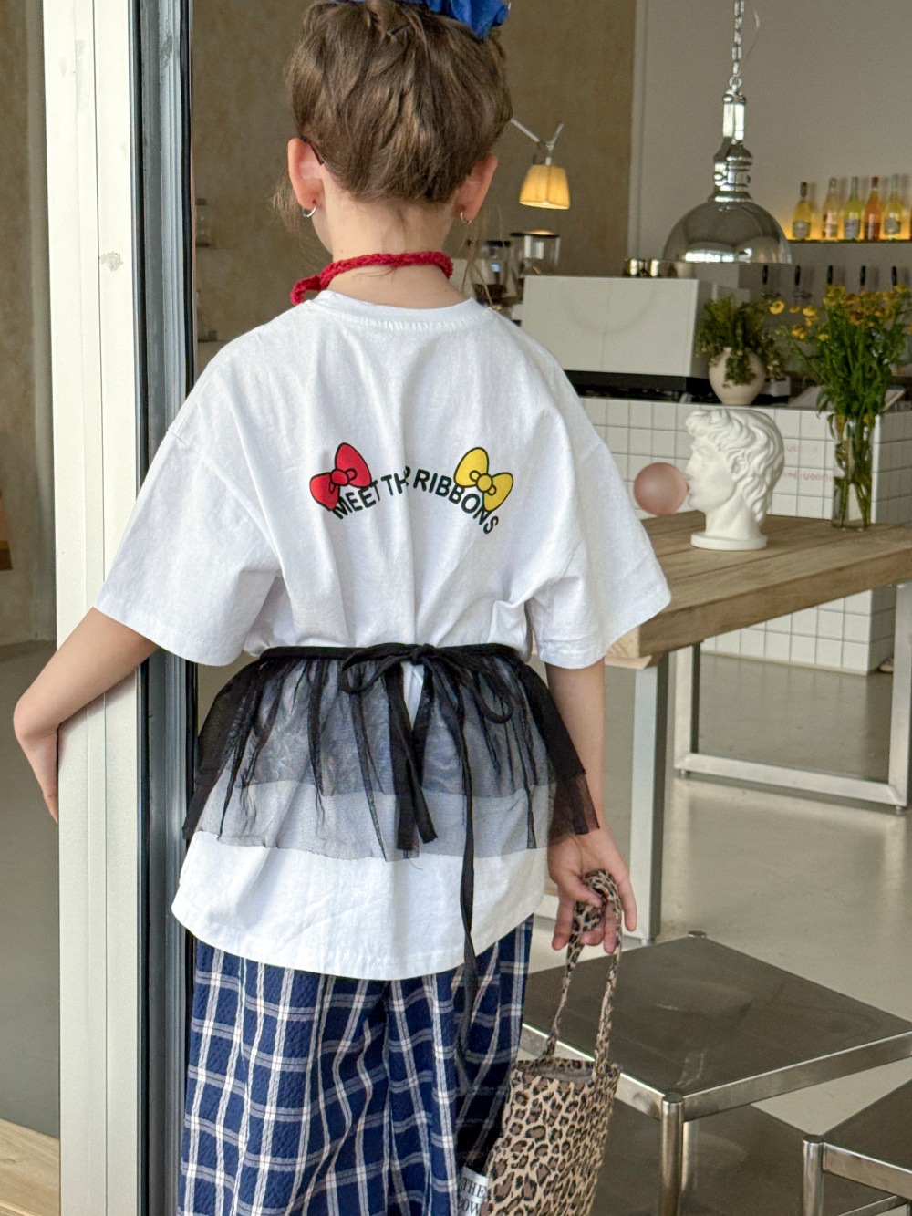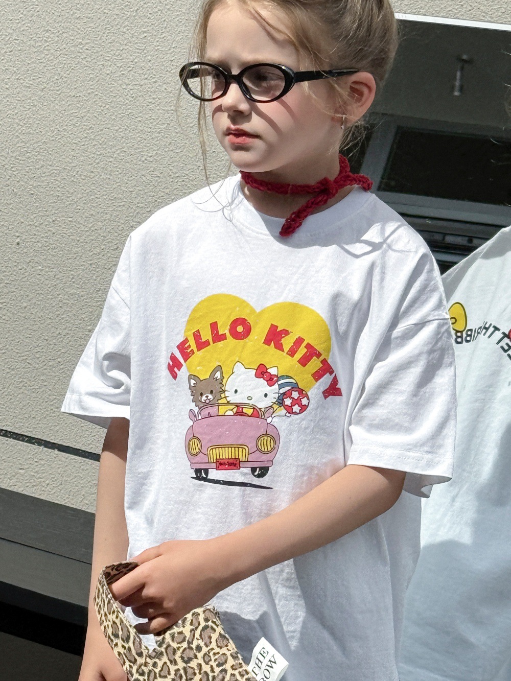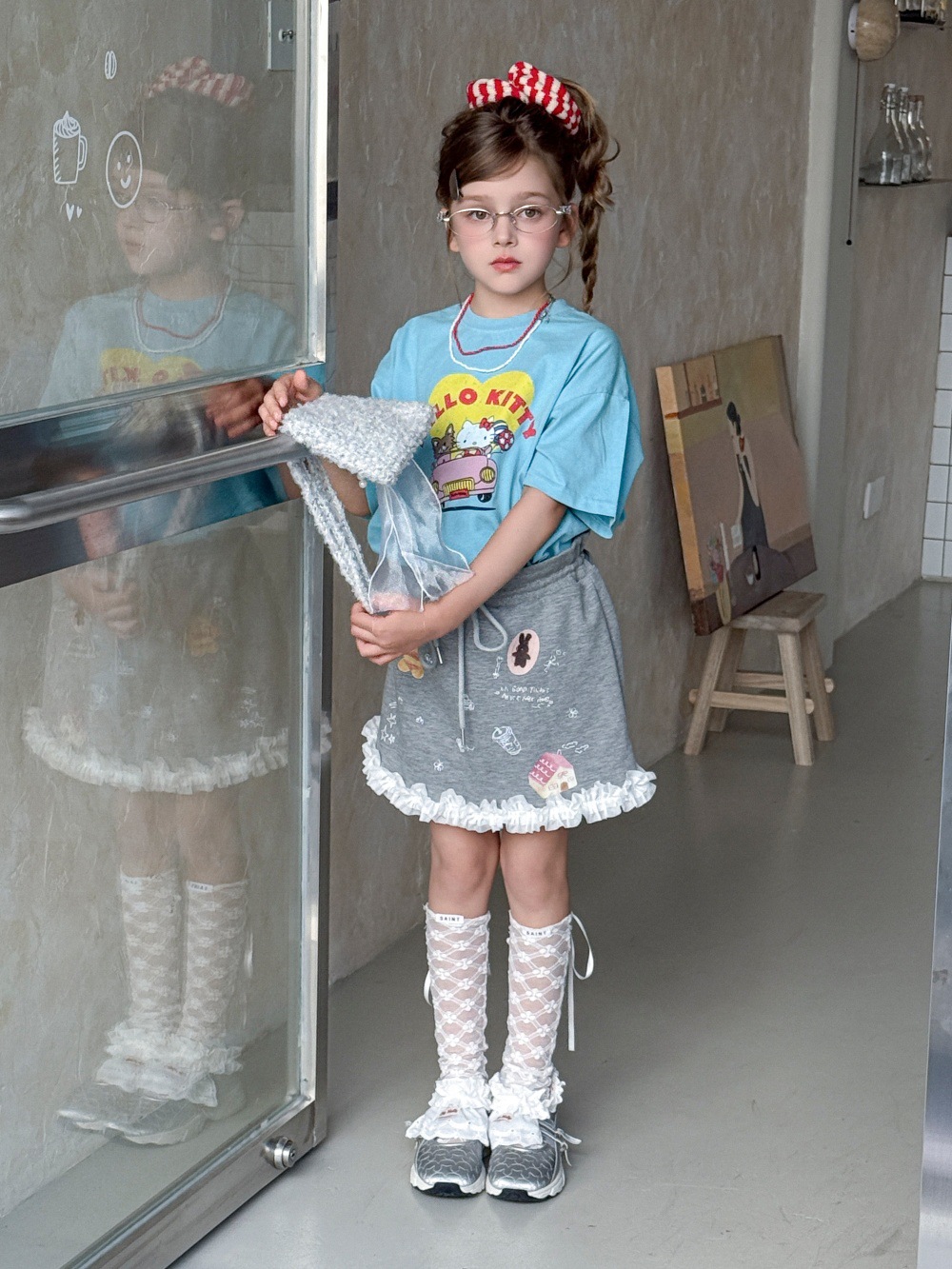 2025 여자 여름 라운드 넥 반팔 어린이 만화 프린트 티셔츠 바닥 셔츠 세련된 중형 및 대형 아동용 반팔 아동복스토어 가기